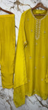 ✨ “Ariana – Mustard Yellow Premium Chinnon handwork kurta set