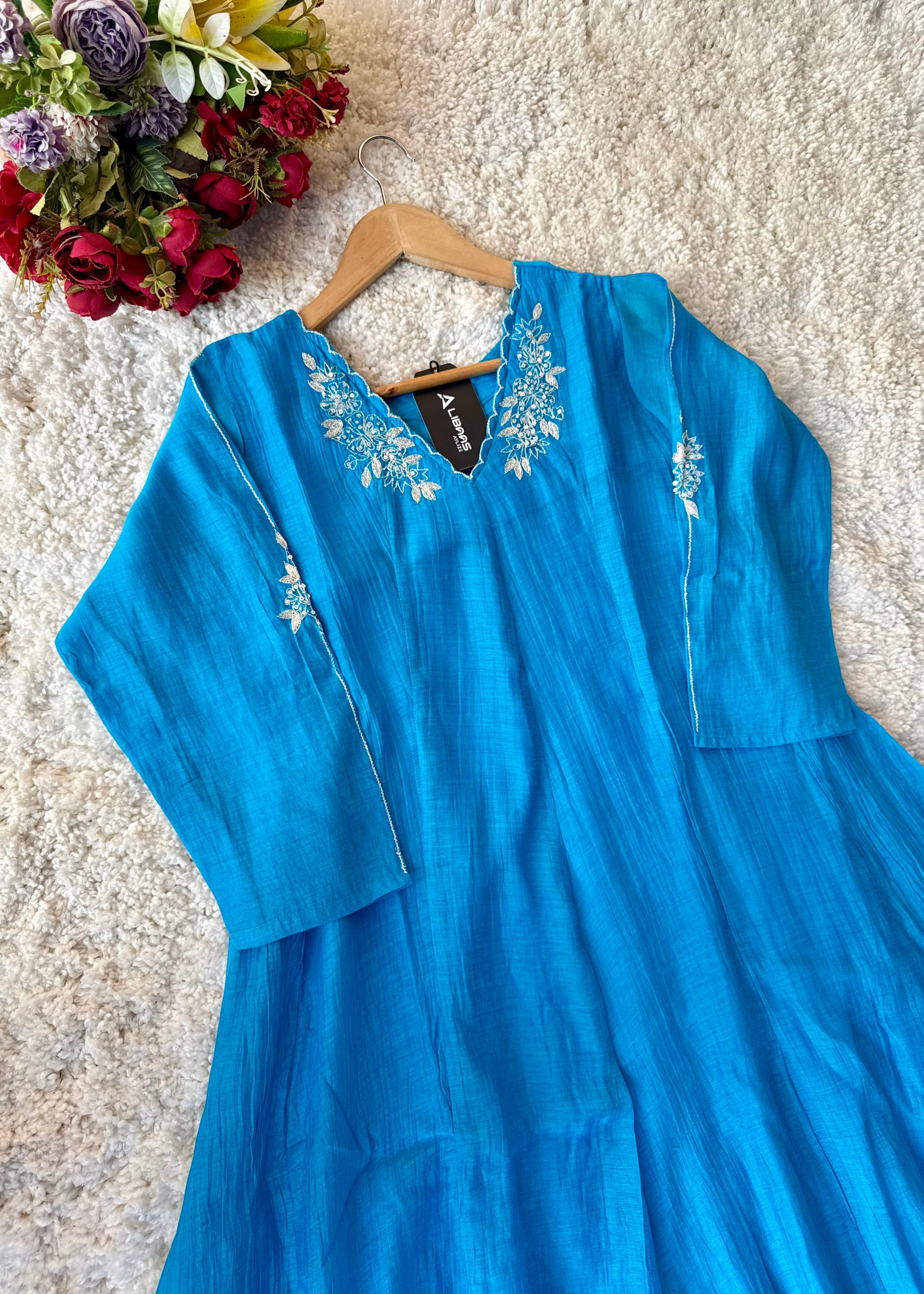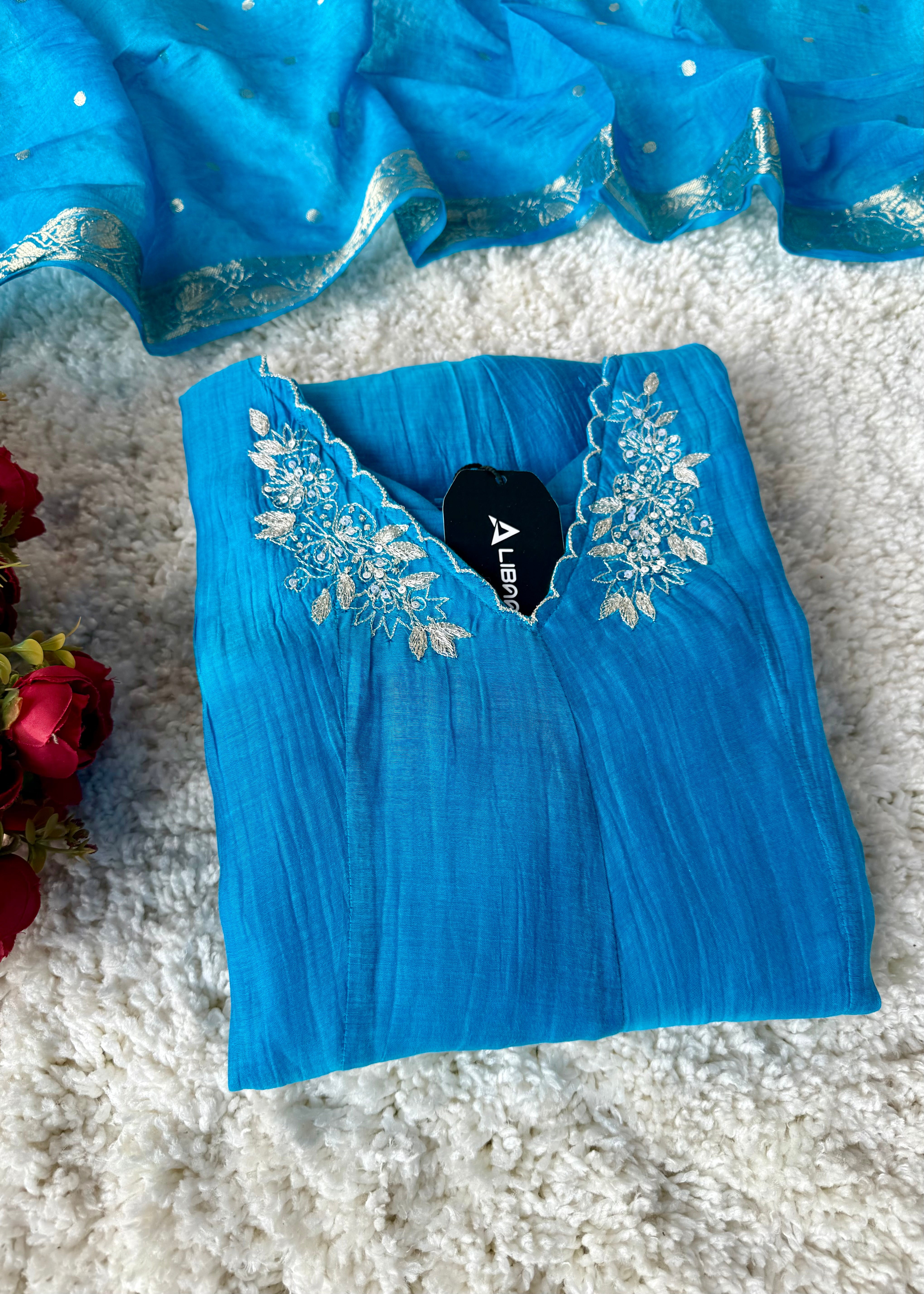 ✨ “Azure – Blue Elegance Mul Chanderi A-Line Suit