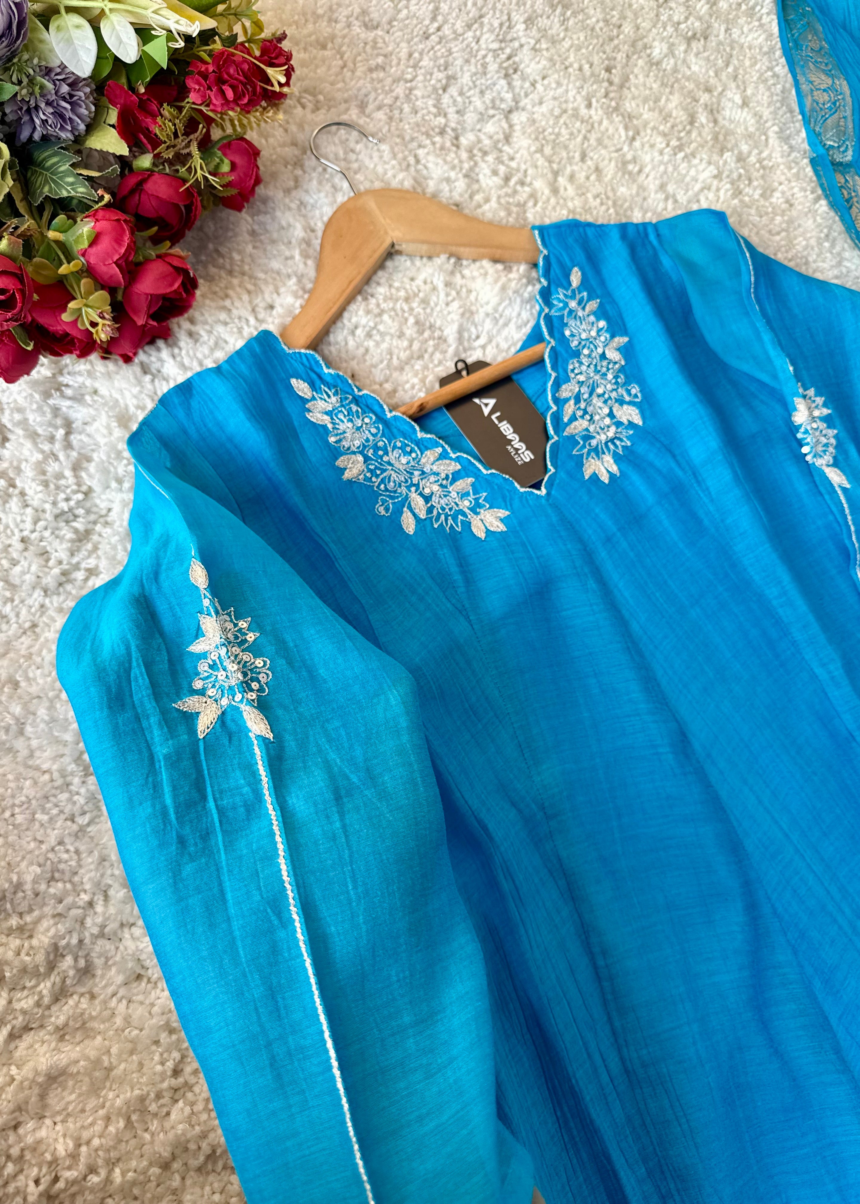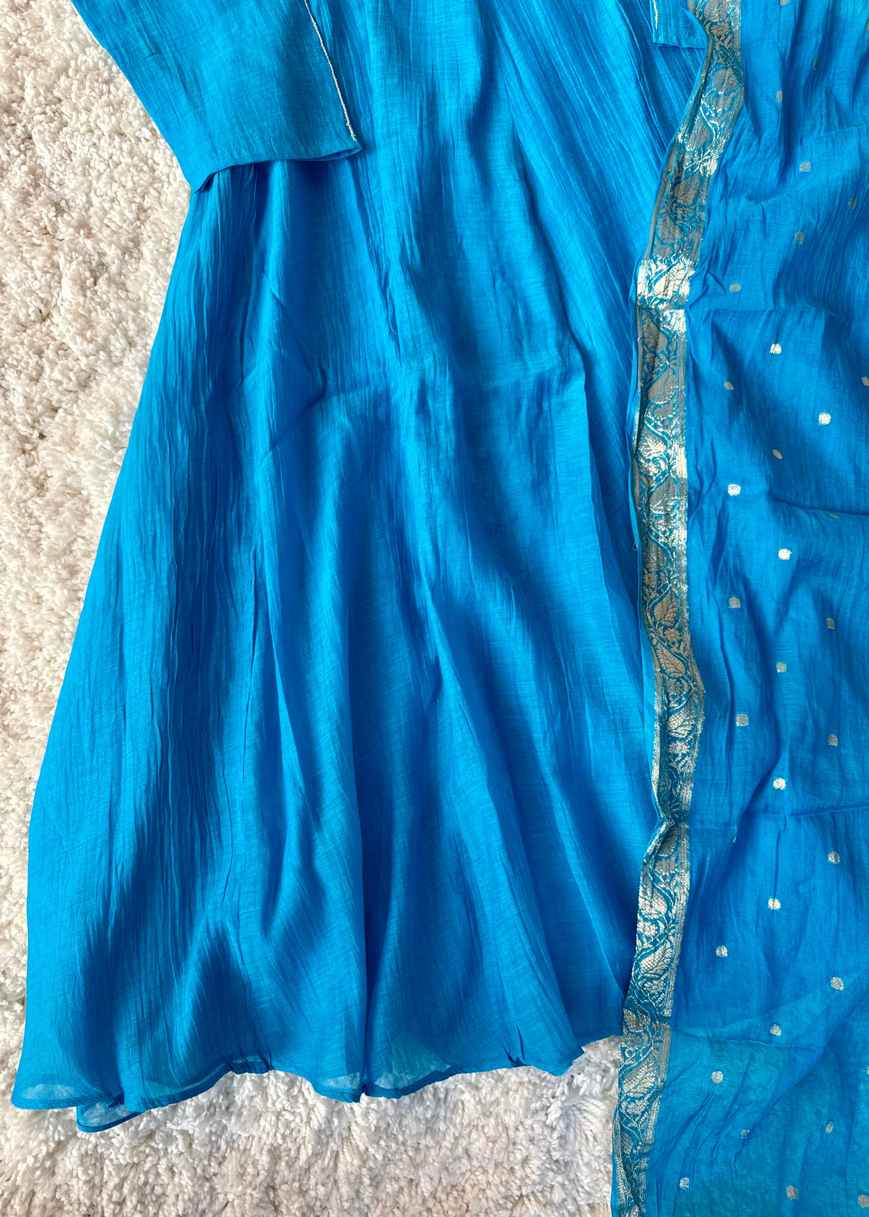 ✨ “Azure – Blue Elegance Mul Chanderi A-Line Suit - XS