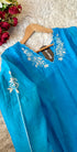 Upgrade your wardrobe with this stunning Mul Chanderi A-Line Suit featuring delicate handwork on neckline & sleeves. Soft, lightweight & festive-perfect! 💙