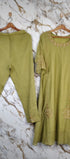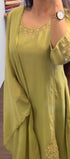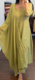 Premium Mul Chanderi A line kurta set with heavy handwork on the neck line sleeve & daman of the top with a long handwork detailed mul chanderi dupatta paired with mul chanderi bottom