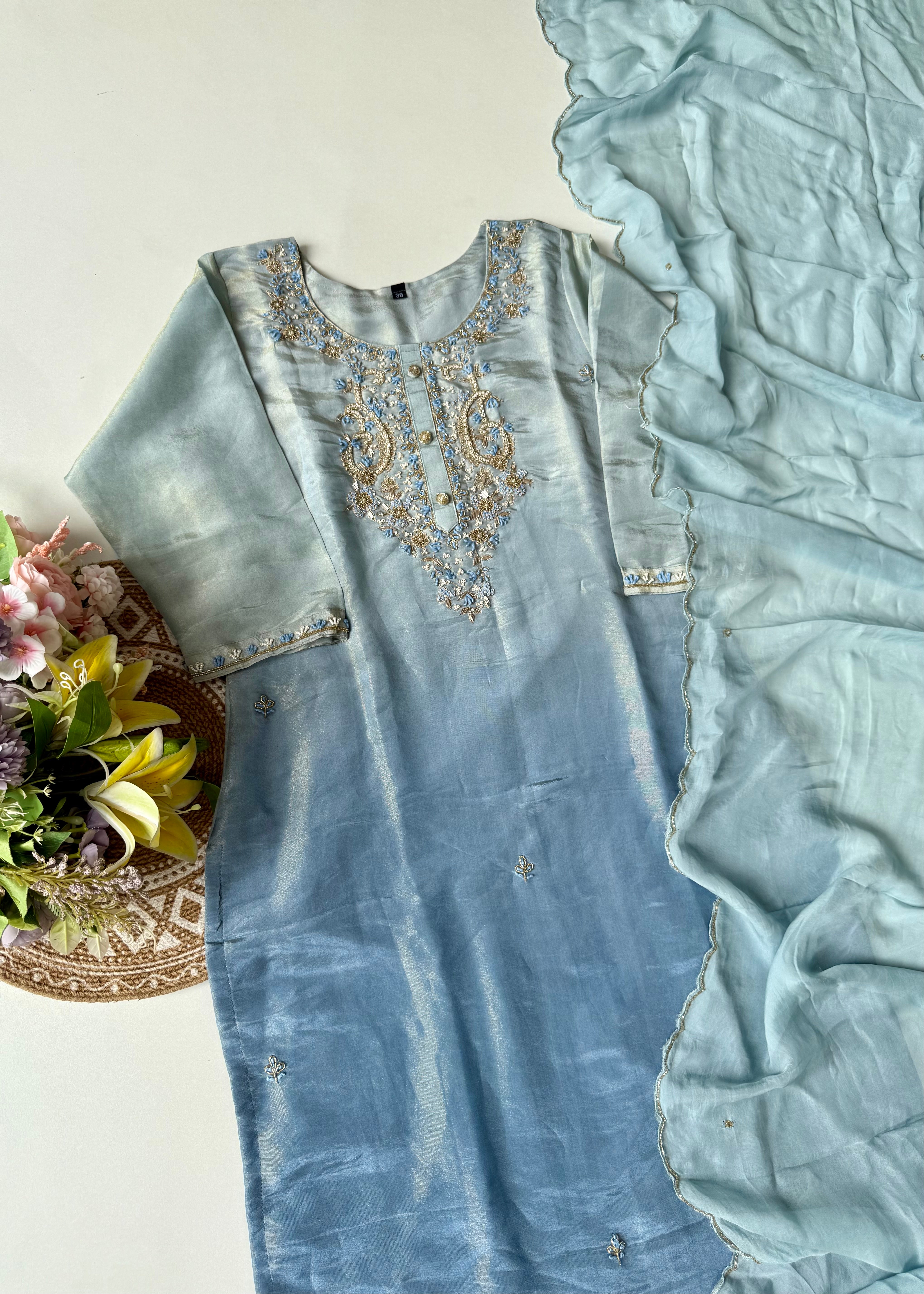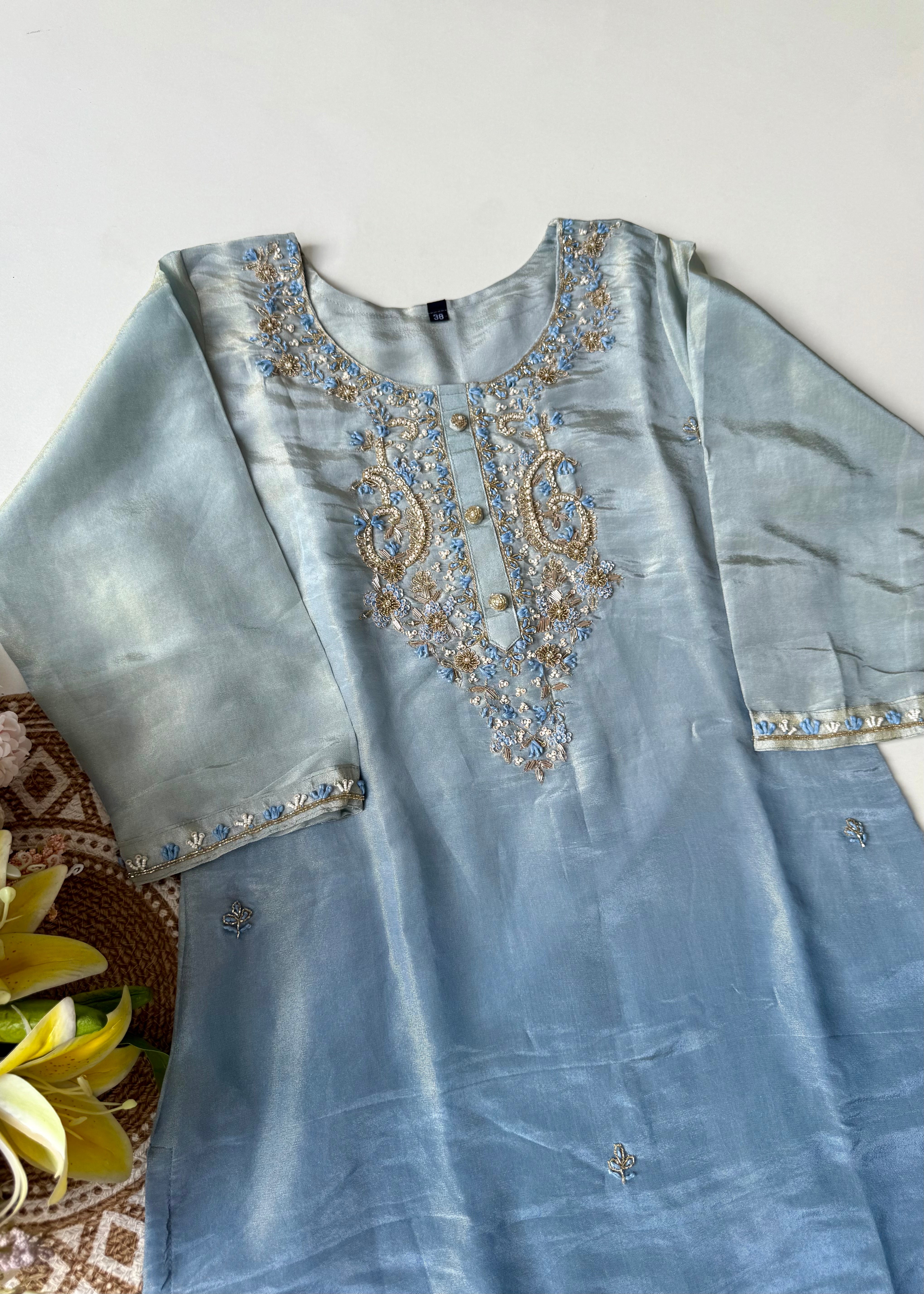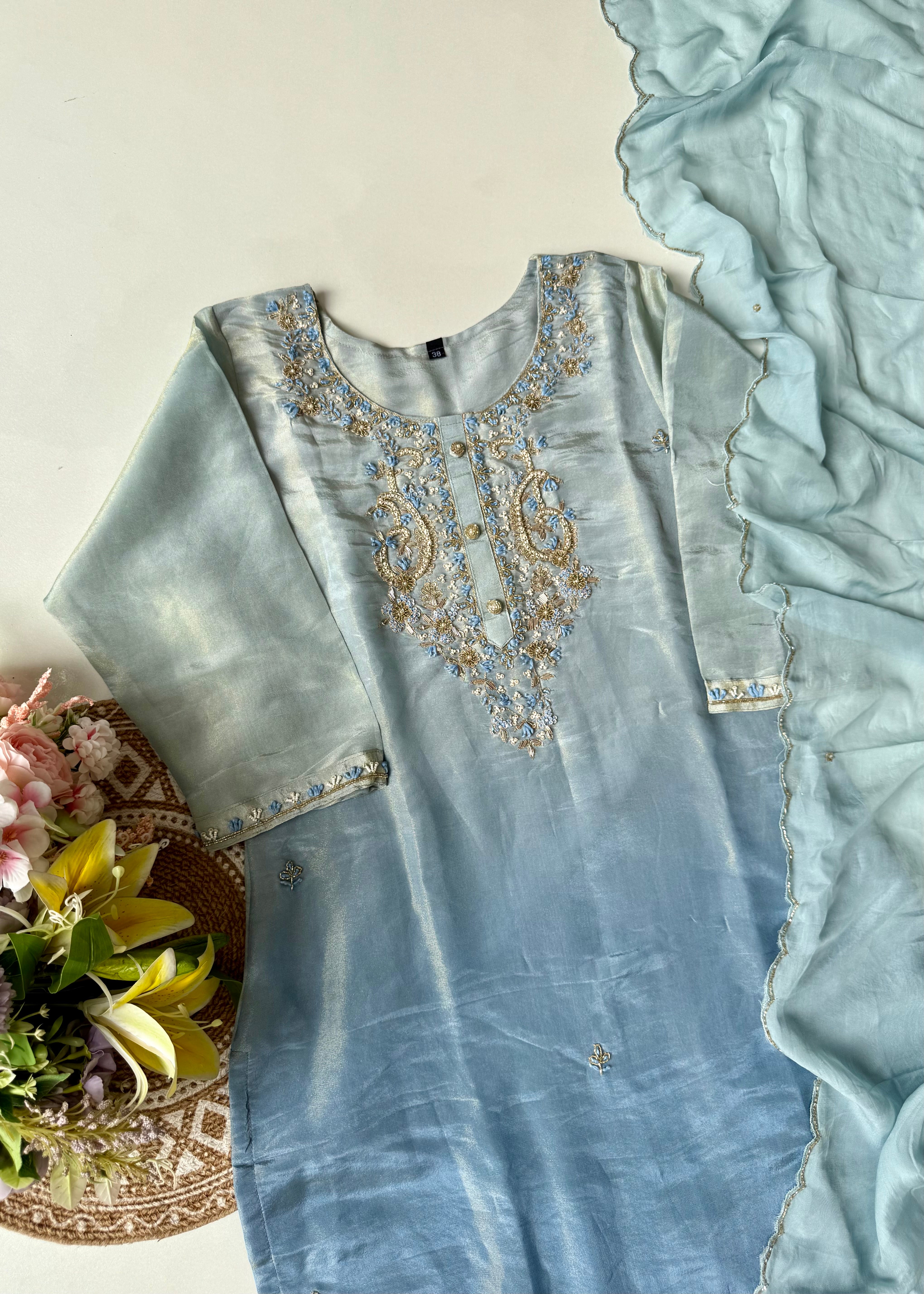 • Kurta: Premium ombre tissue silk with handwork