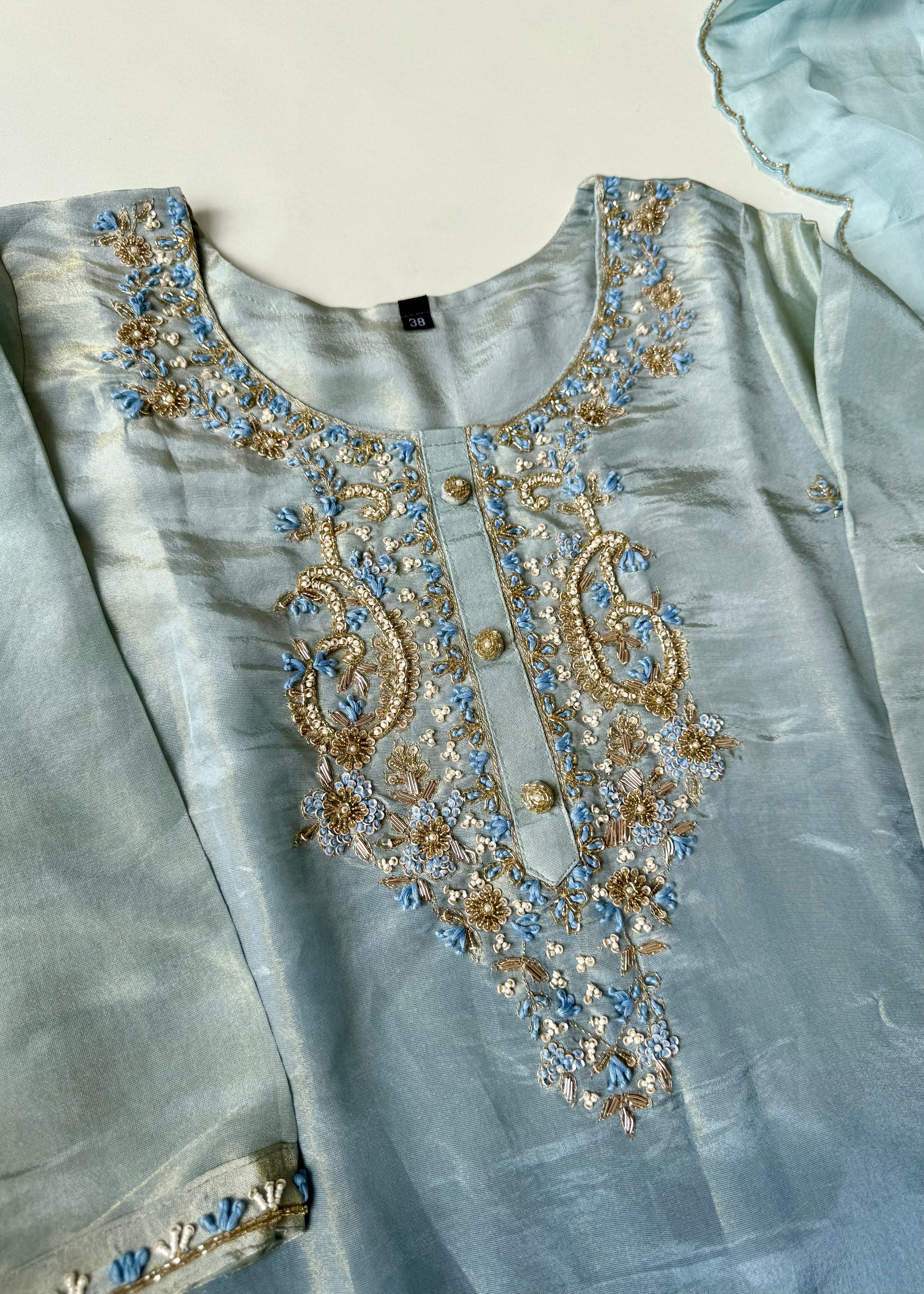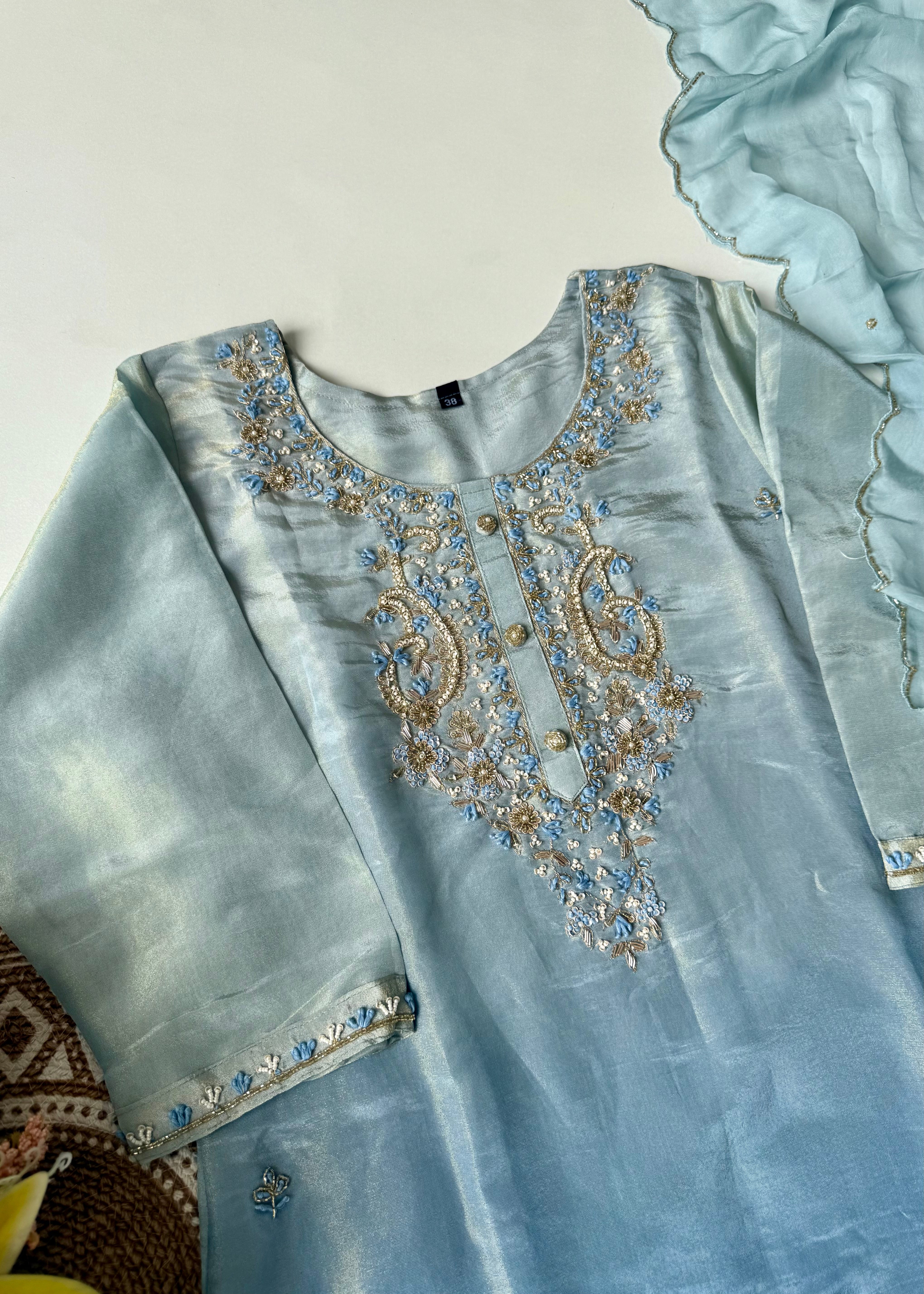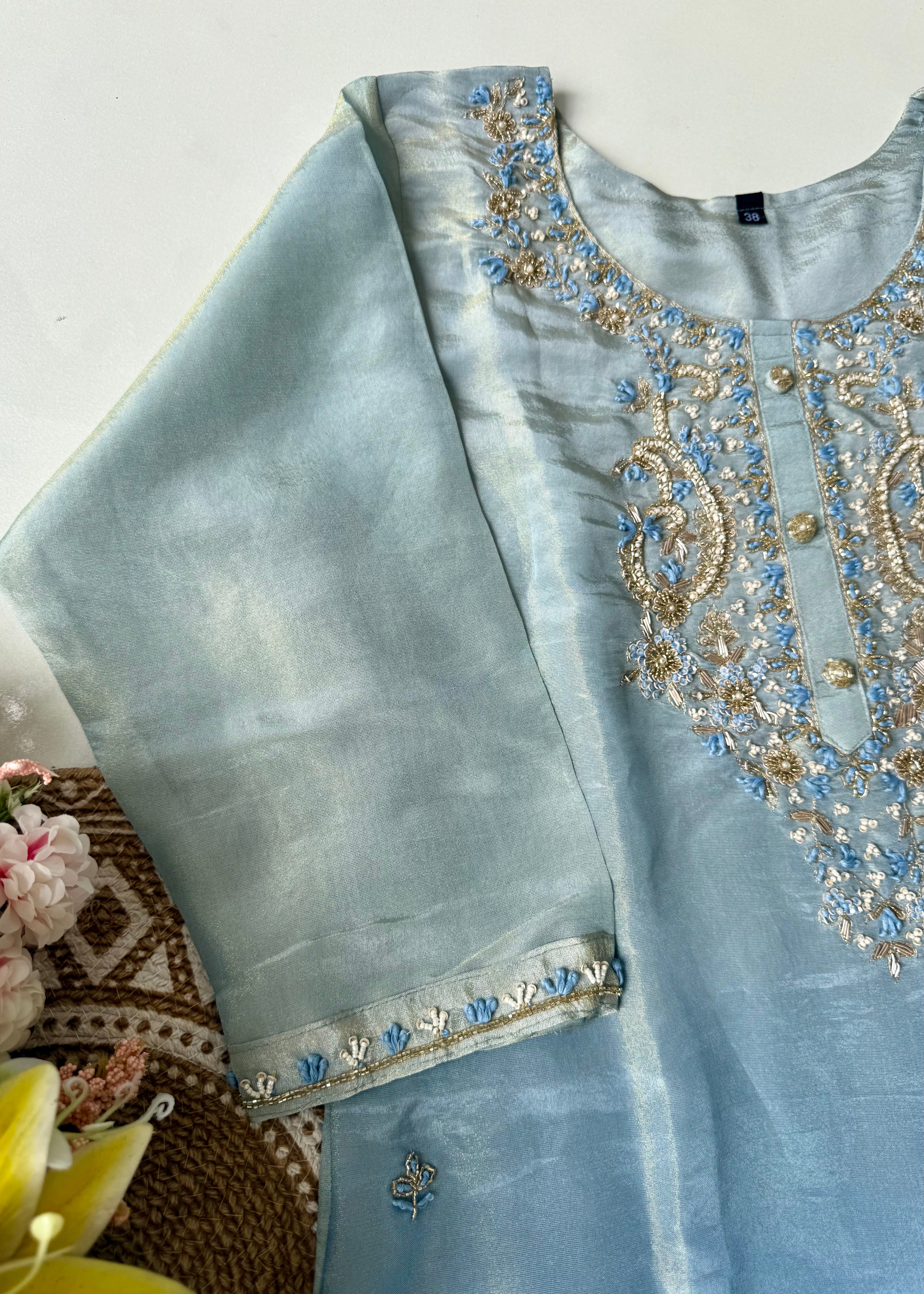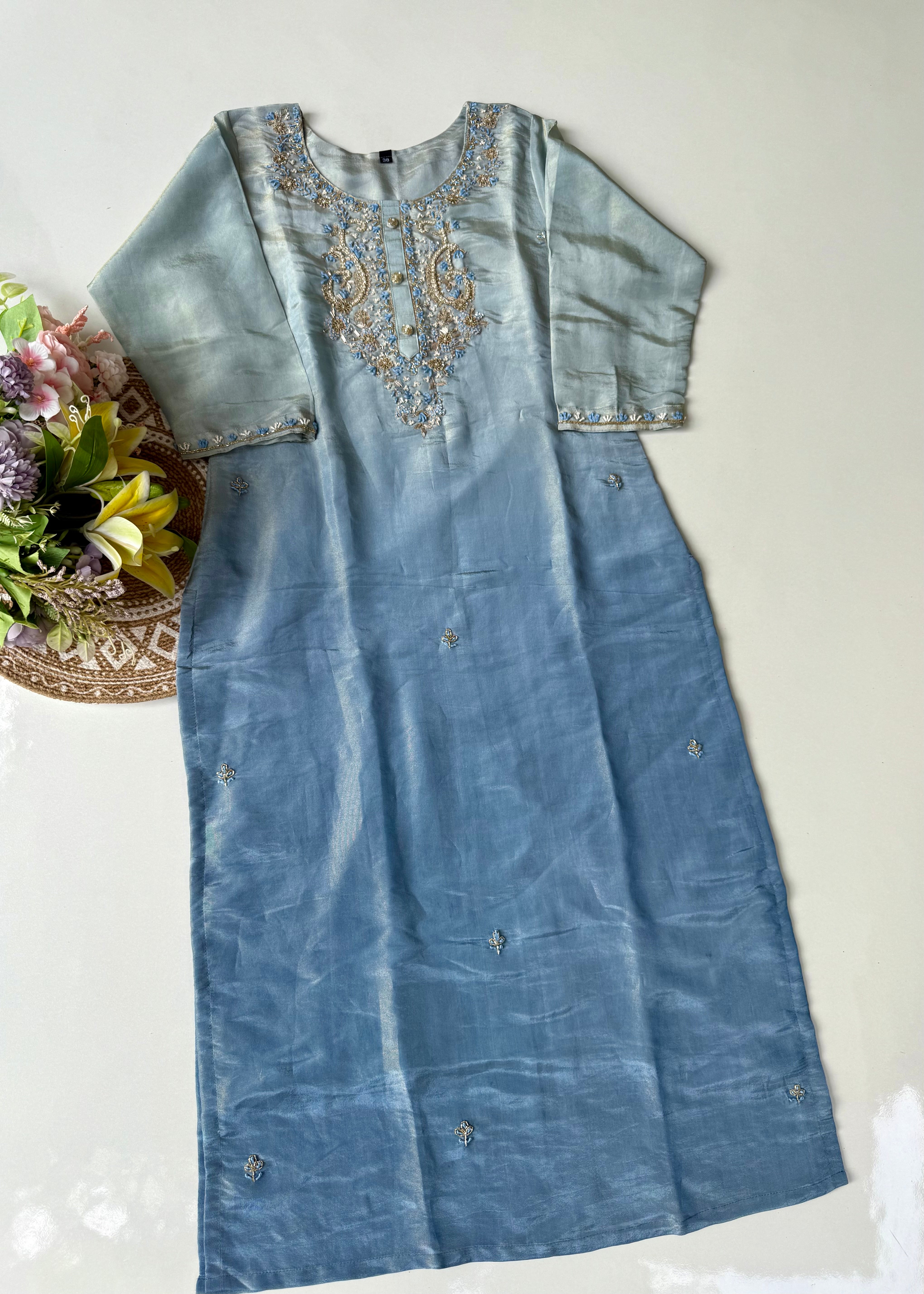• Kurta: Premium ombre tissue silk with handwork