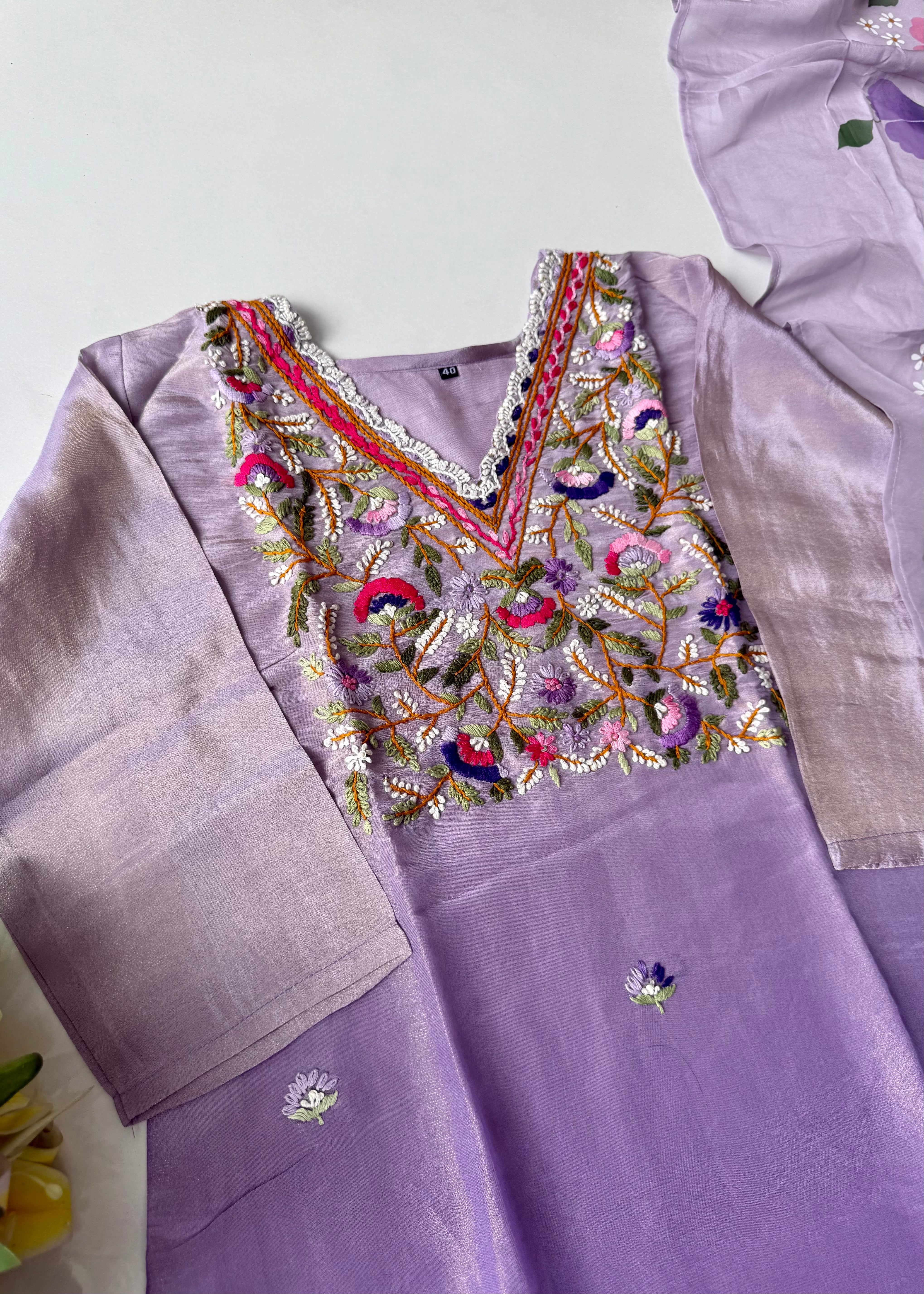 • Top: Tissue Silk with delicate thread & sequin hand embroidery