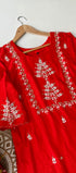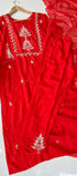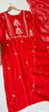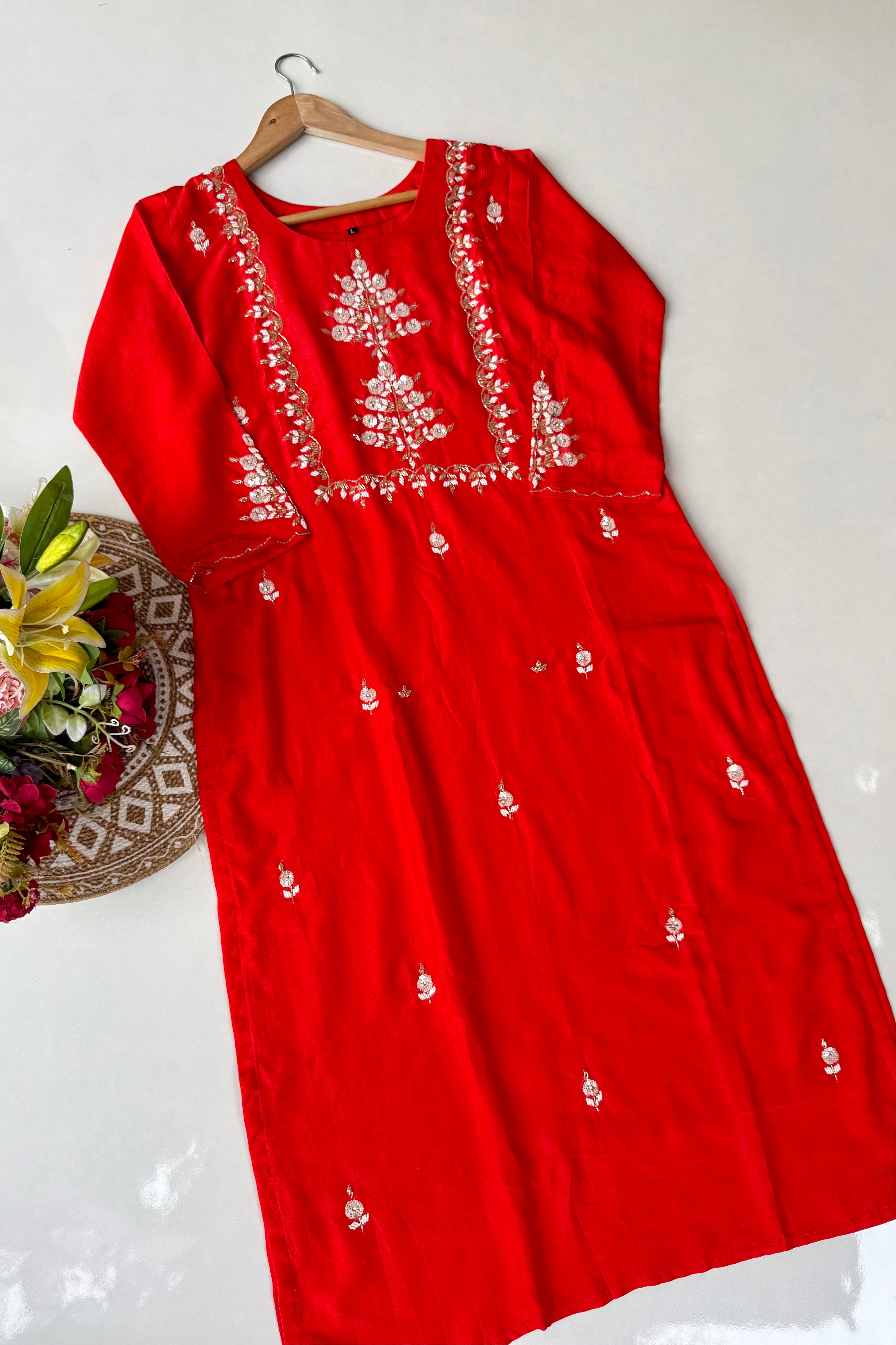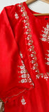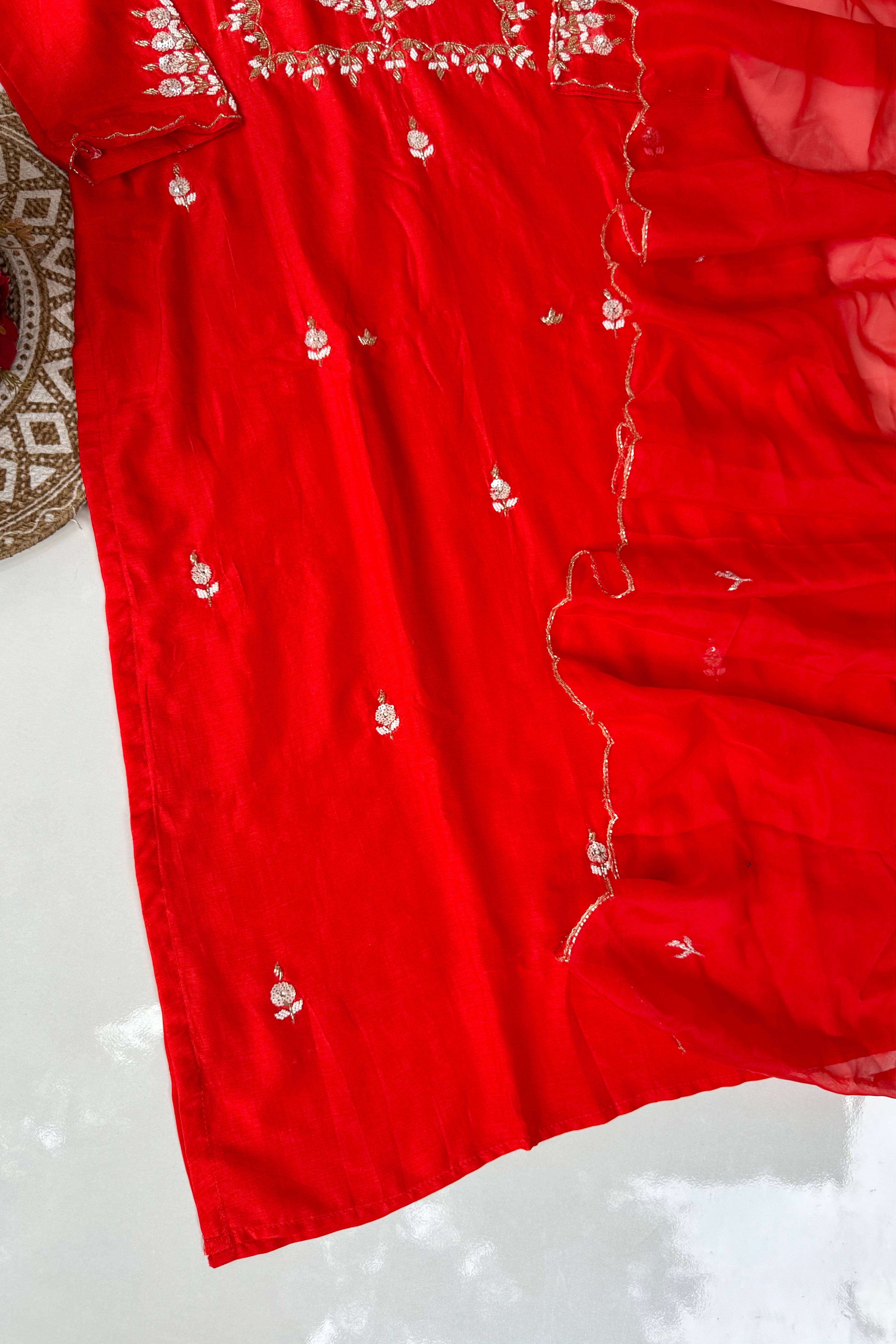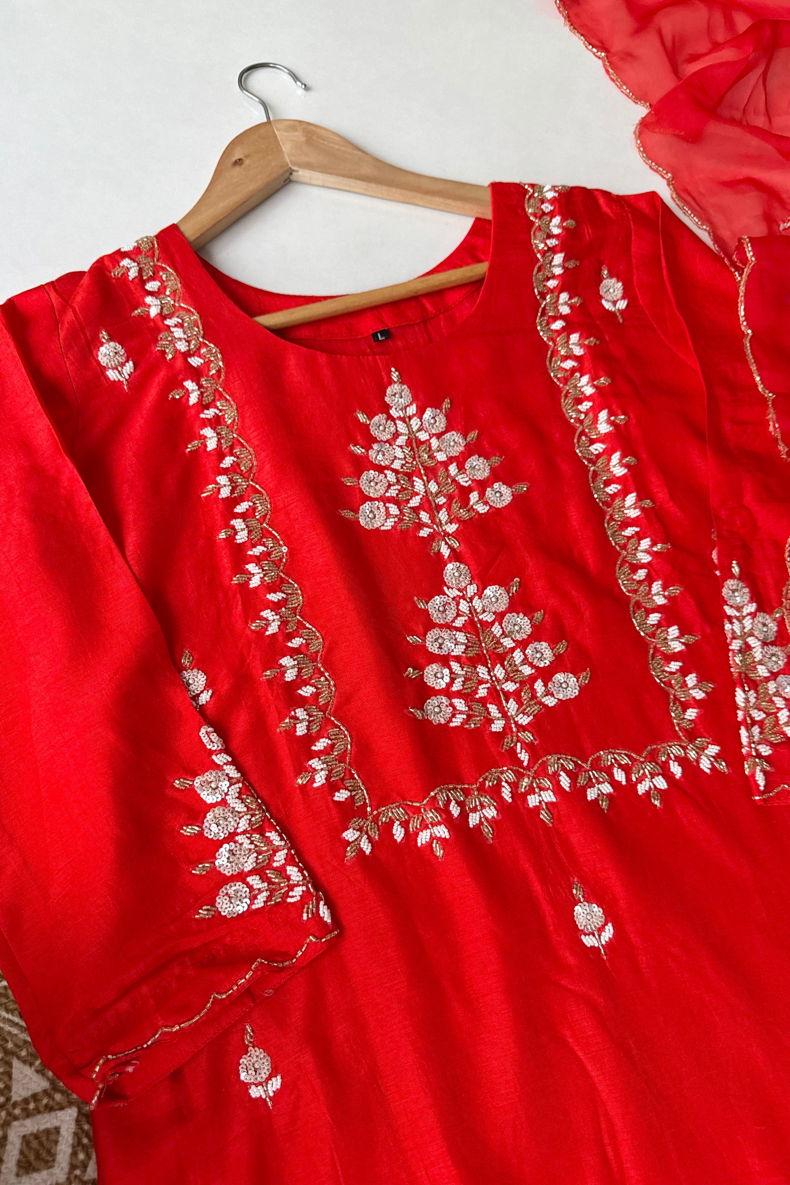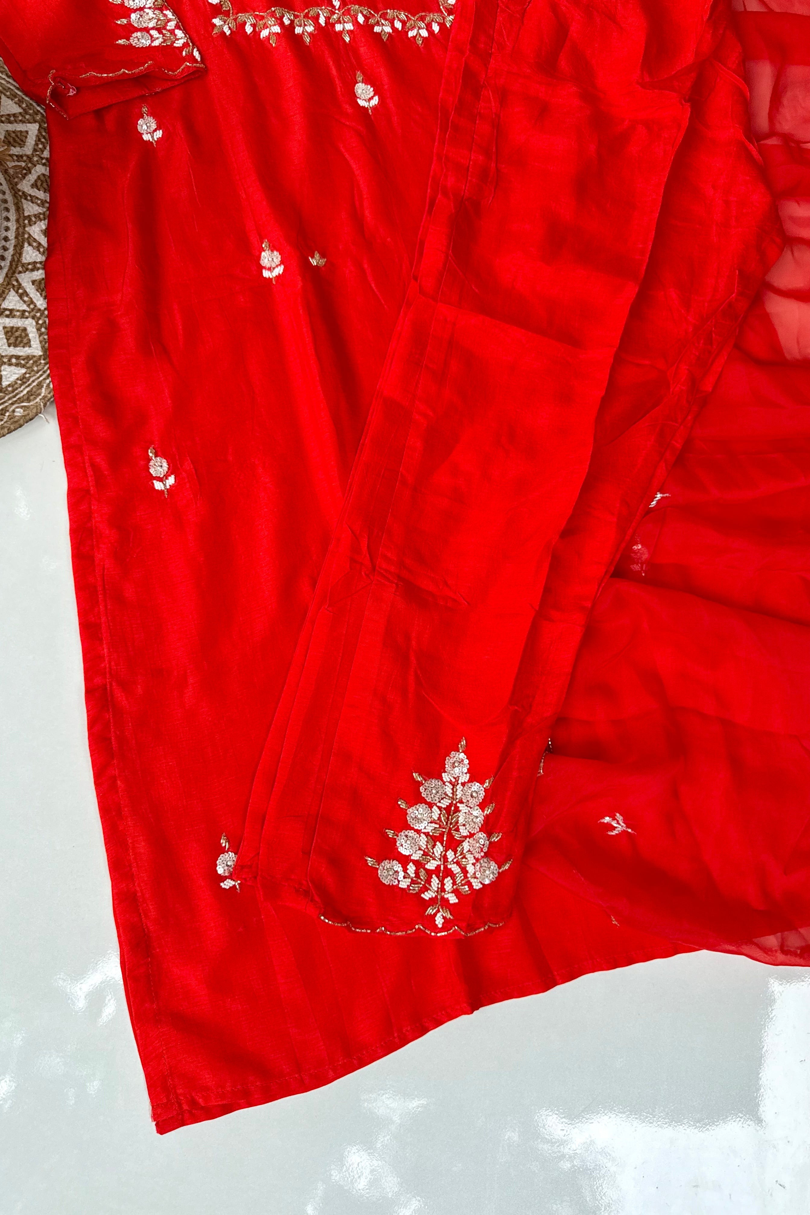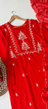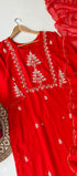 Aylize - Add a regal touch to your festive and wedding wardrobe with this stunning Dola Silk Kurta Set. The bright red base is adorned with intricate hand handwork in golden threadwork, making it a timeless piece of elegance.