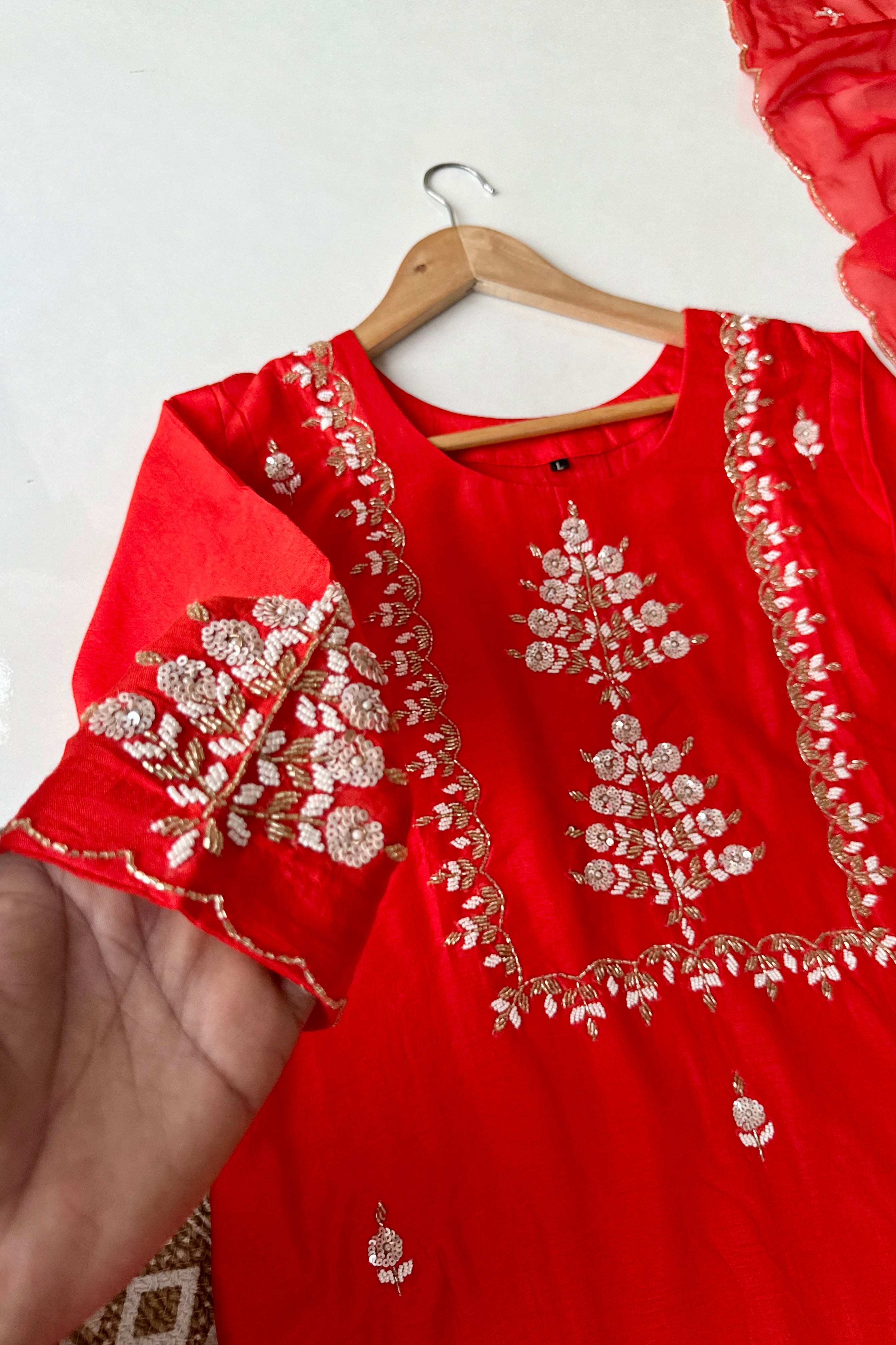 “Orange” Partywear Orange heavy handwork Dola Silk Kurta Set