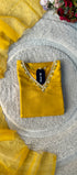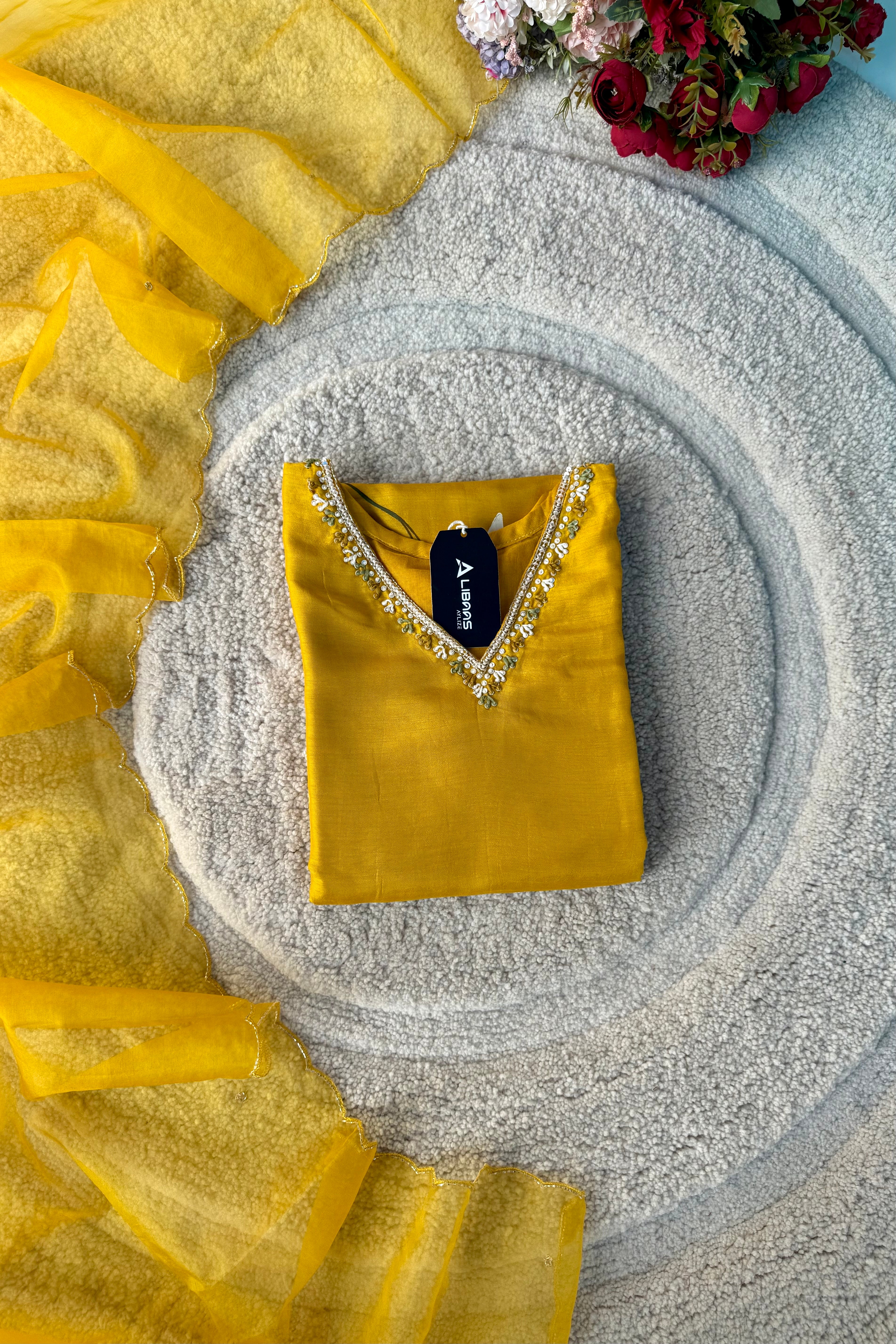 “Yeefa” Mustard Yellow dola silk hand print kurta set