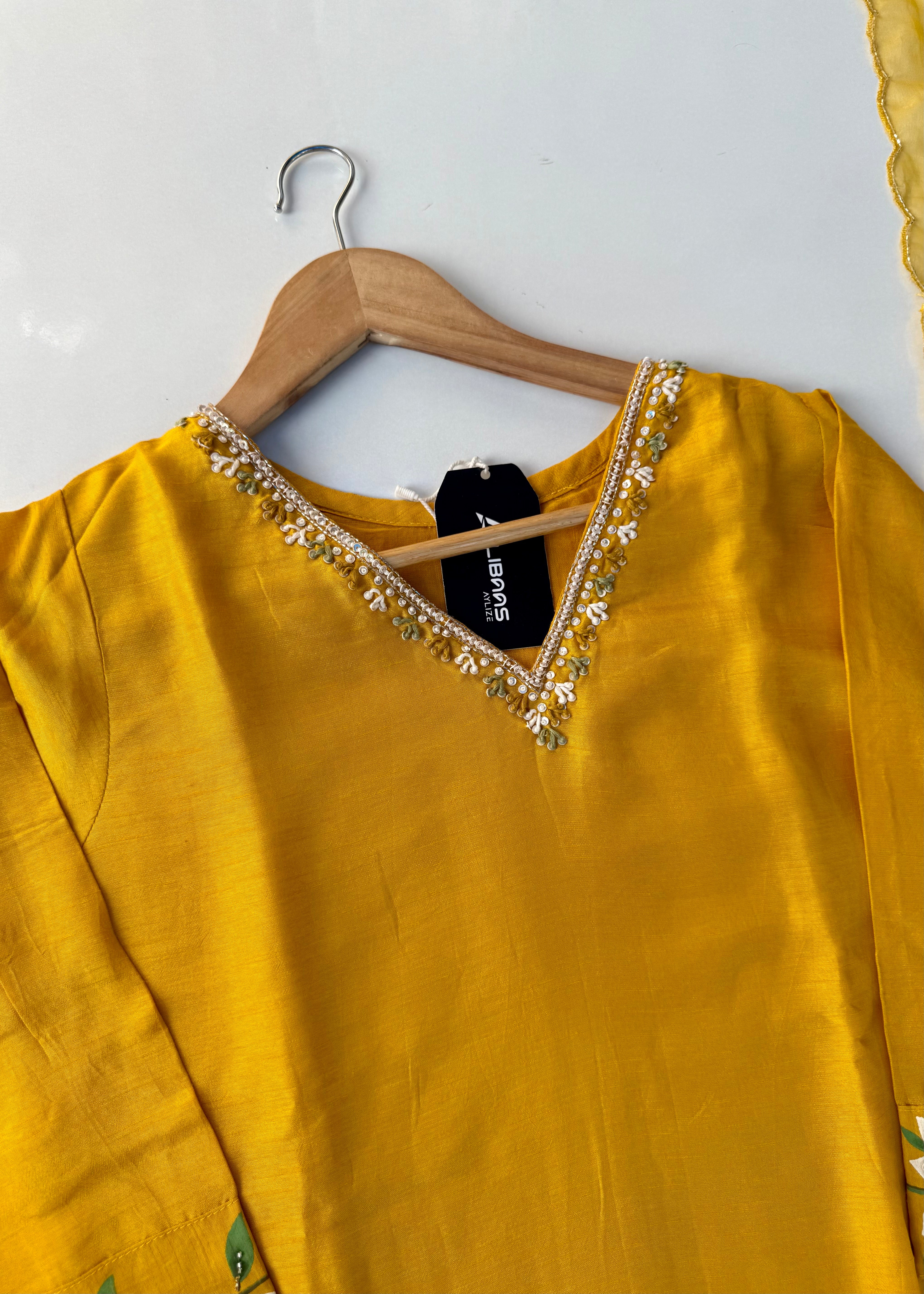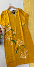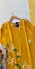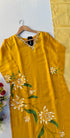 “Yeefa” Mustard Yellow dola silk hand print kurta set - XS