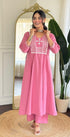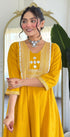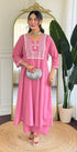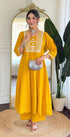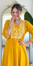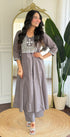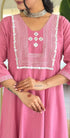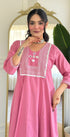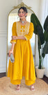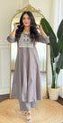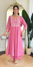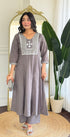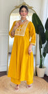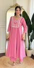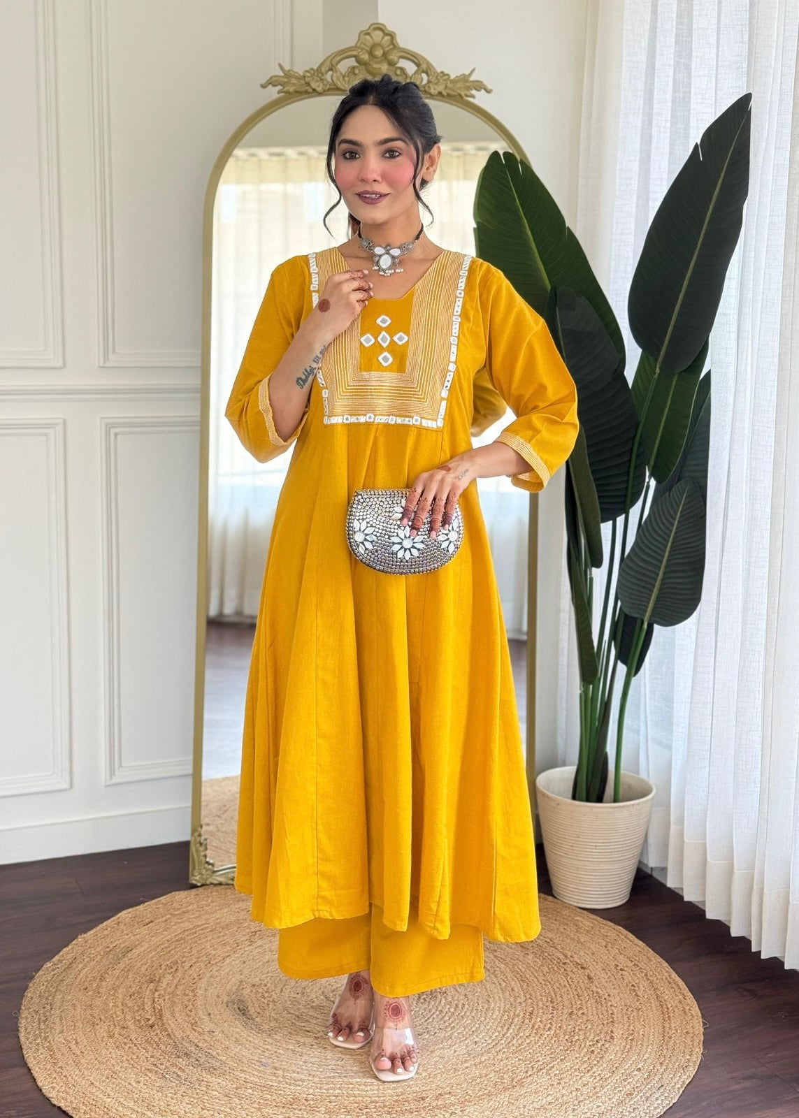 Premium cotton a line 2 pc kurta set with mirror work on the yoke of the top with a cotton bottom with pokets