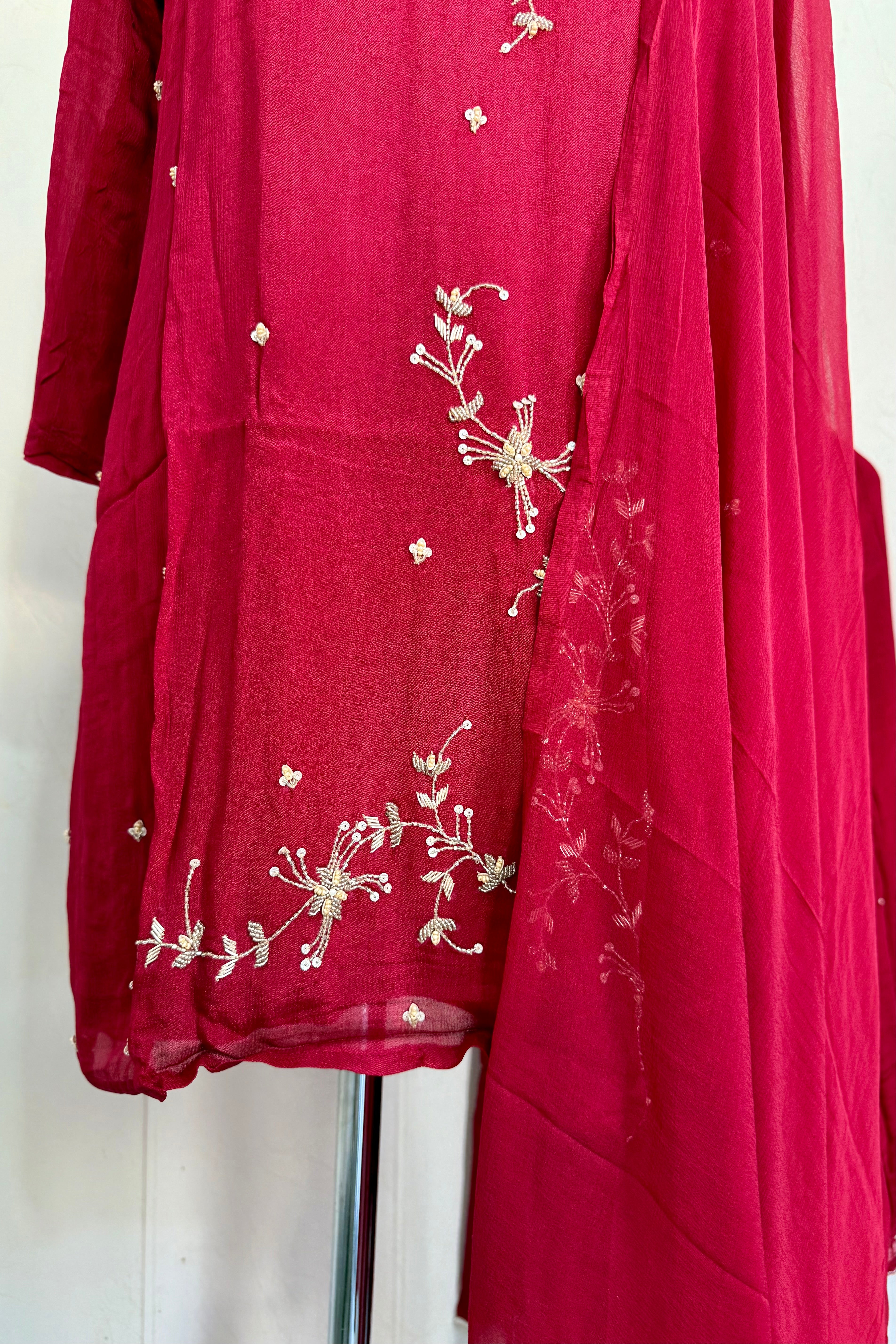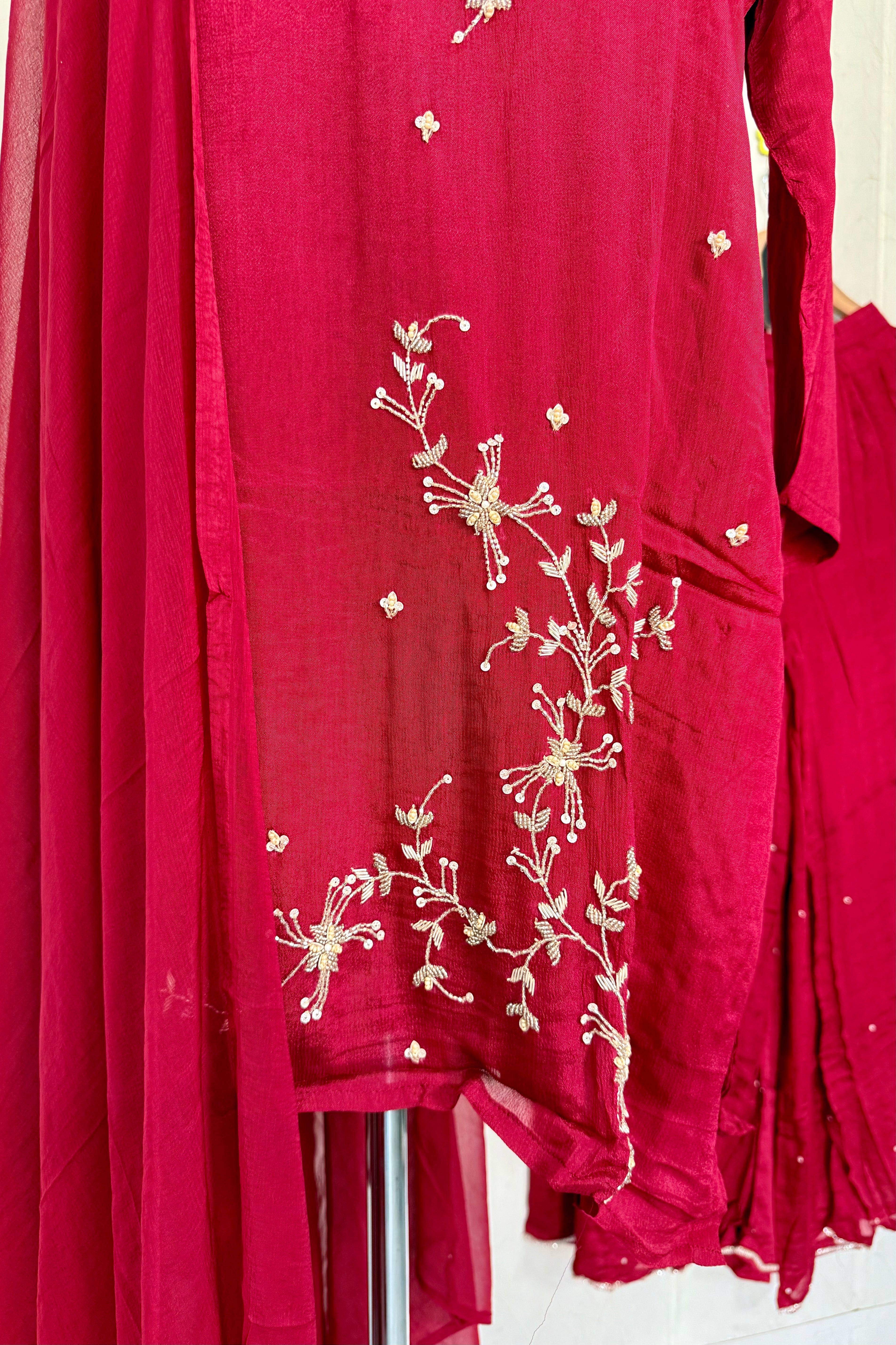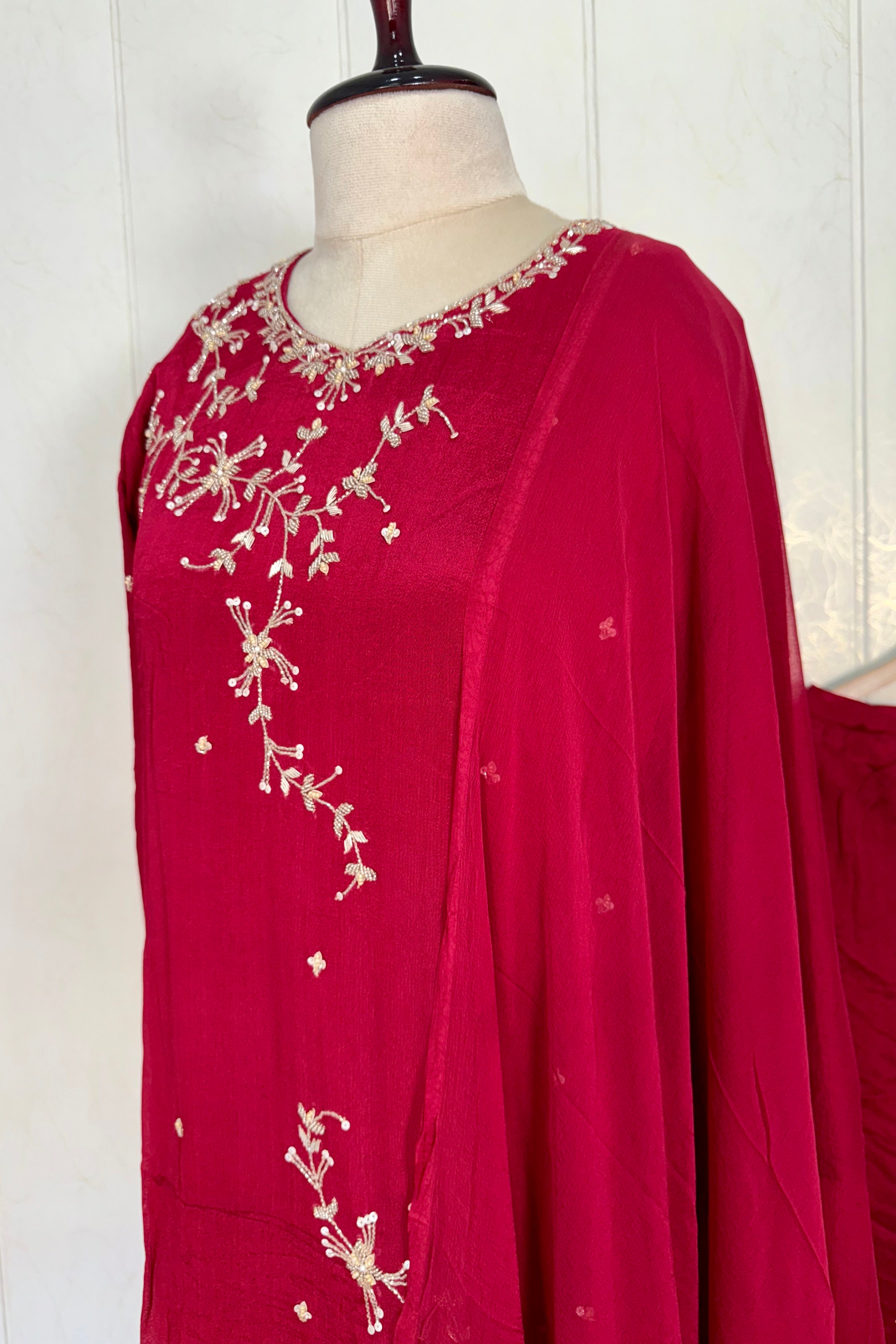 “Alya” Chinnon Silk Heavy Handwork Kurta Palazzo Set with Dupatta - XS
