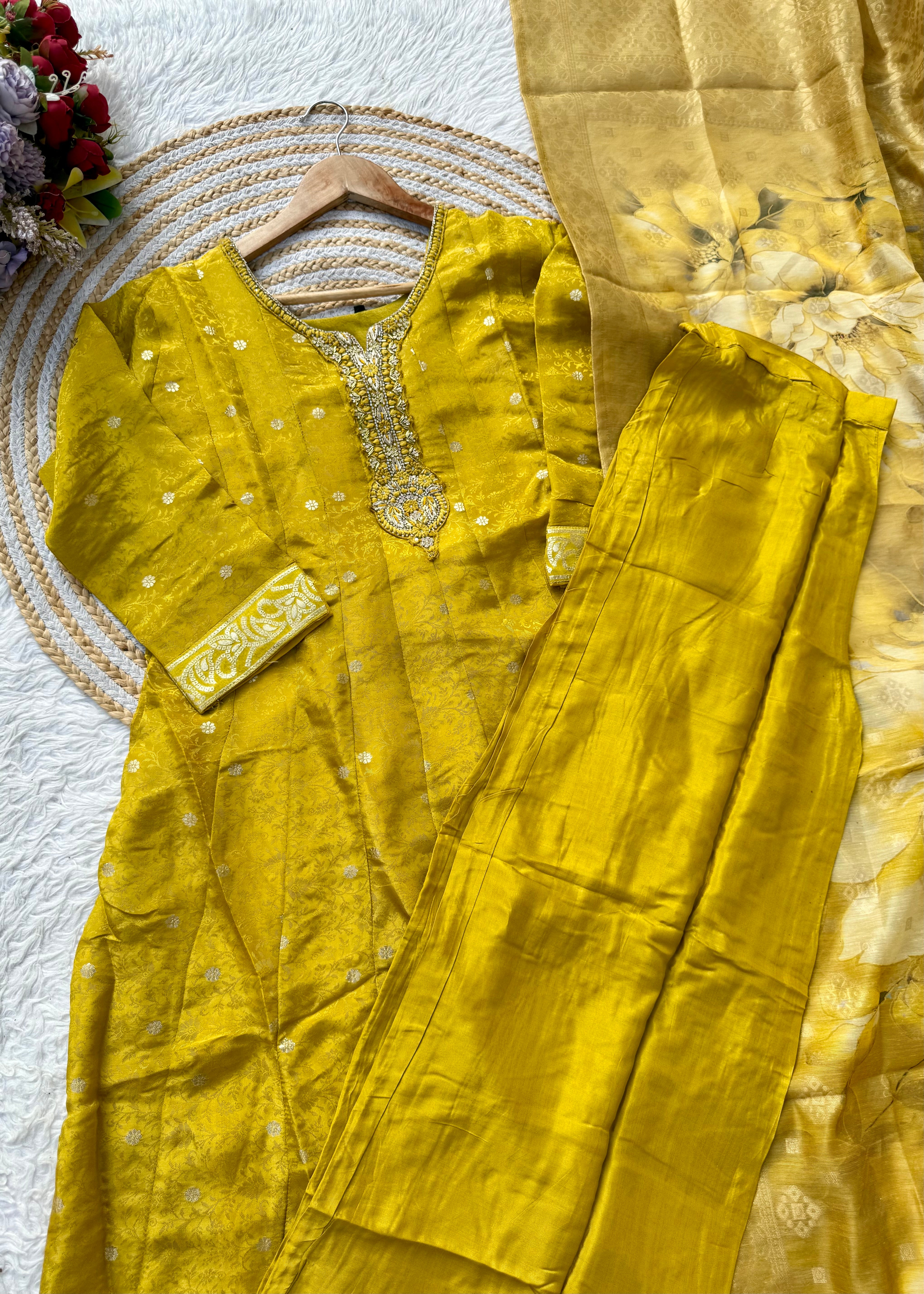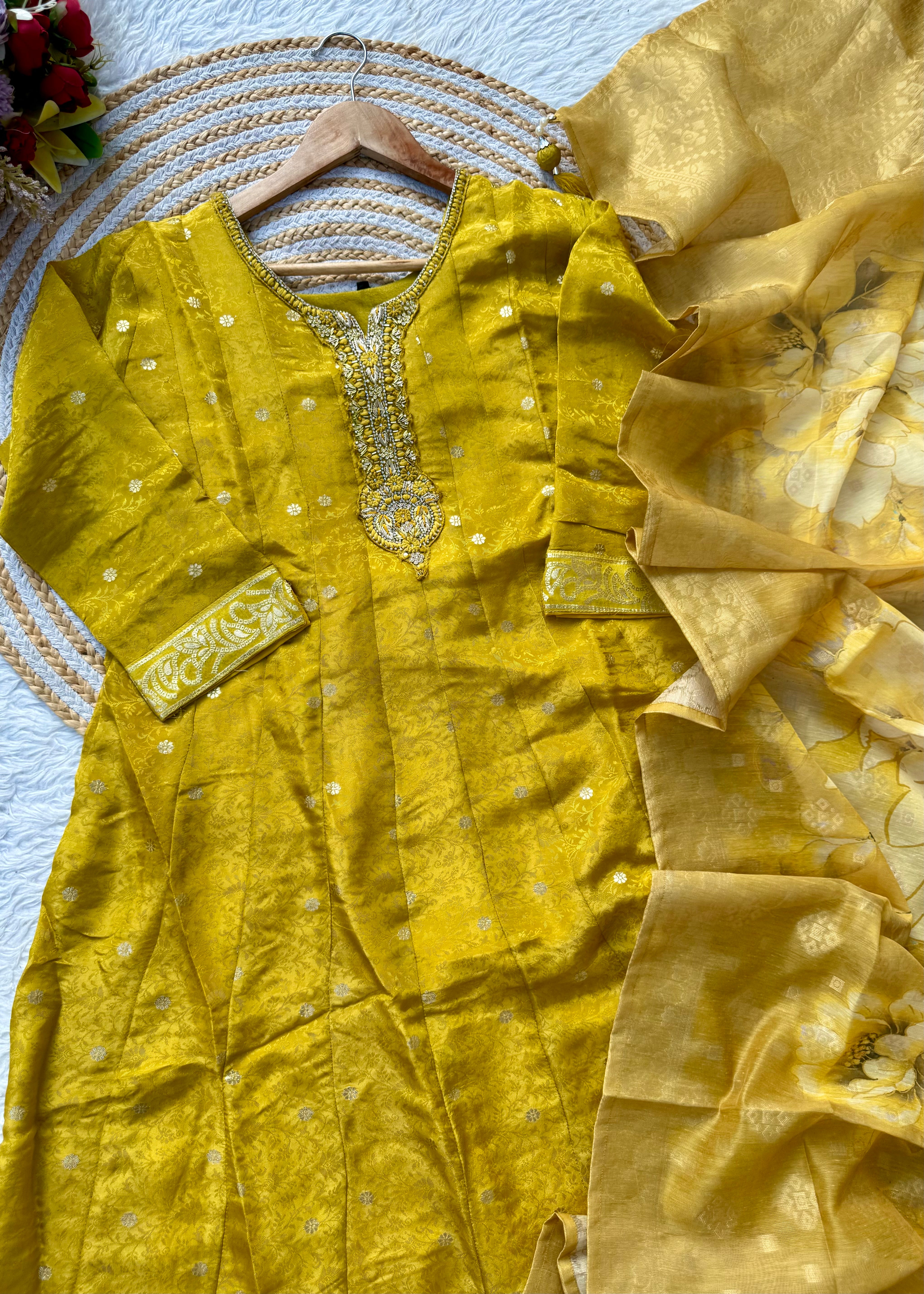 “AMBER” Festive wear handcrafted tissue silk anarkali set