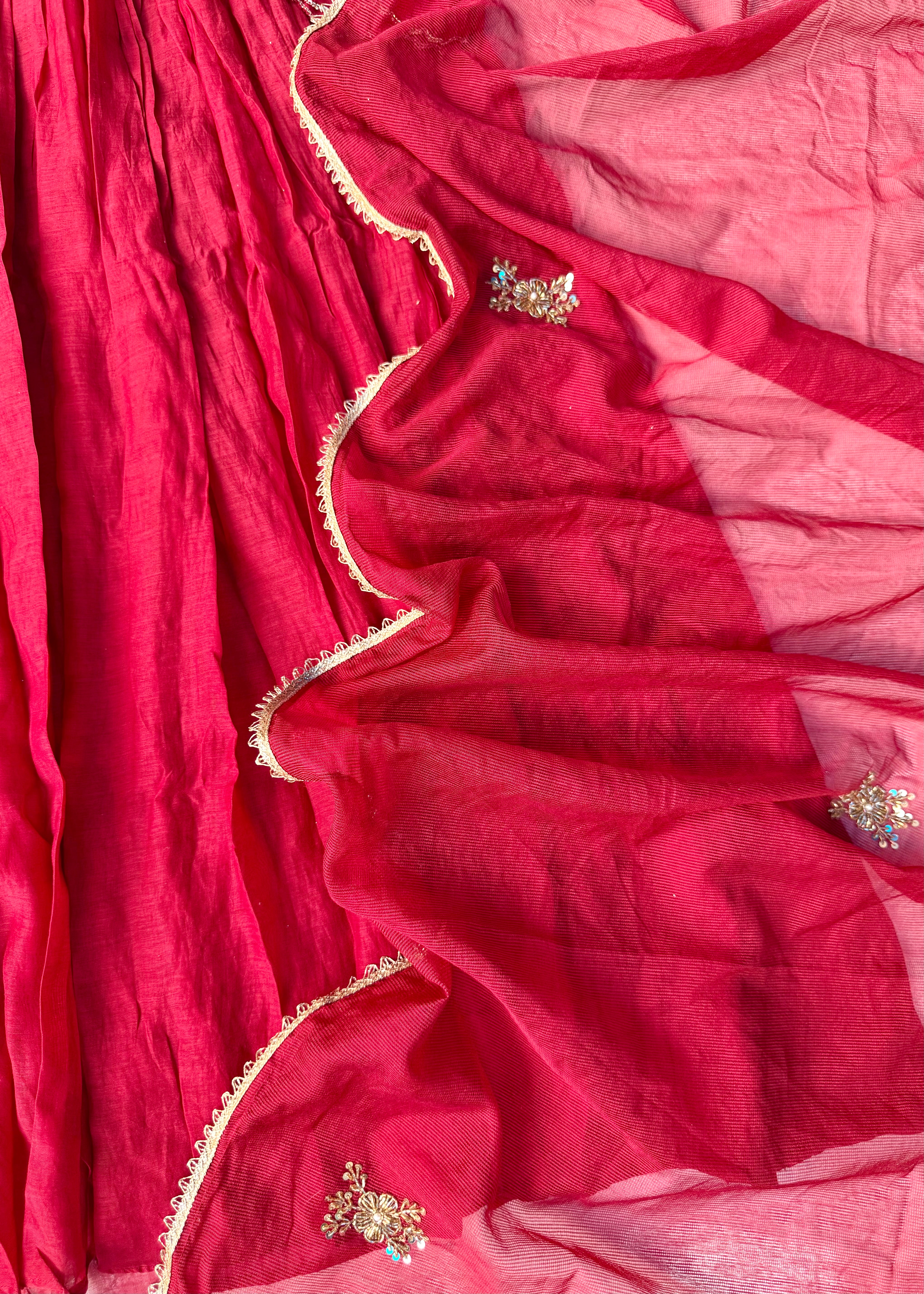- Dupatta: Mul Chanderi with zari lace border & buti motifs