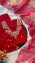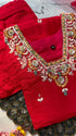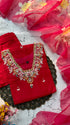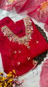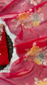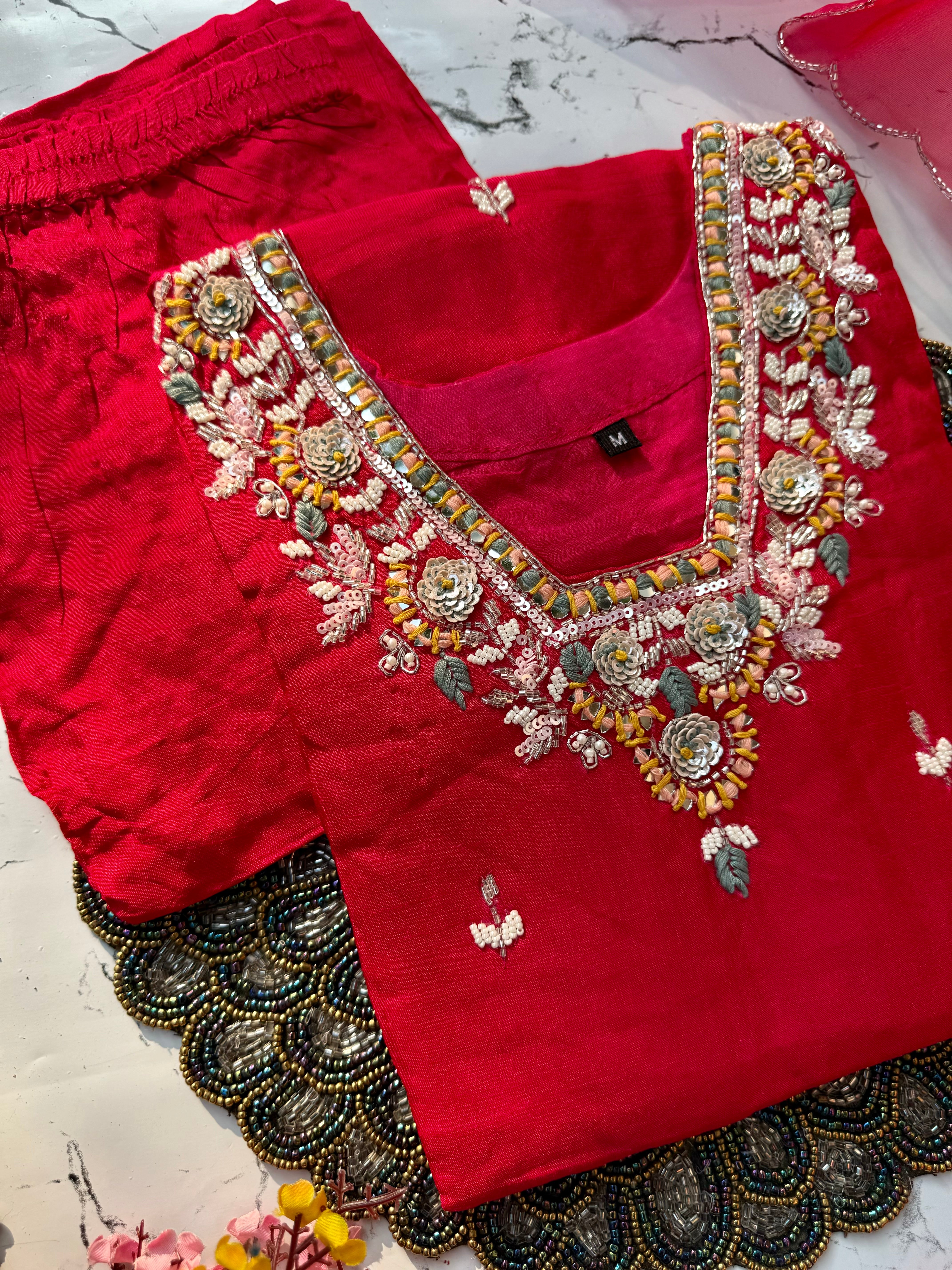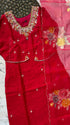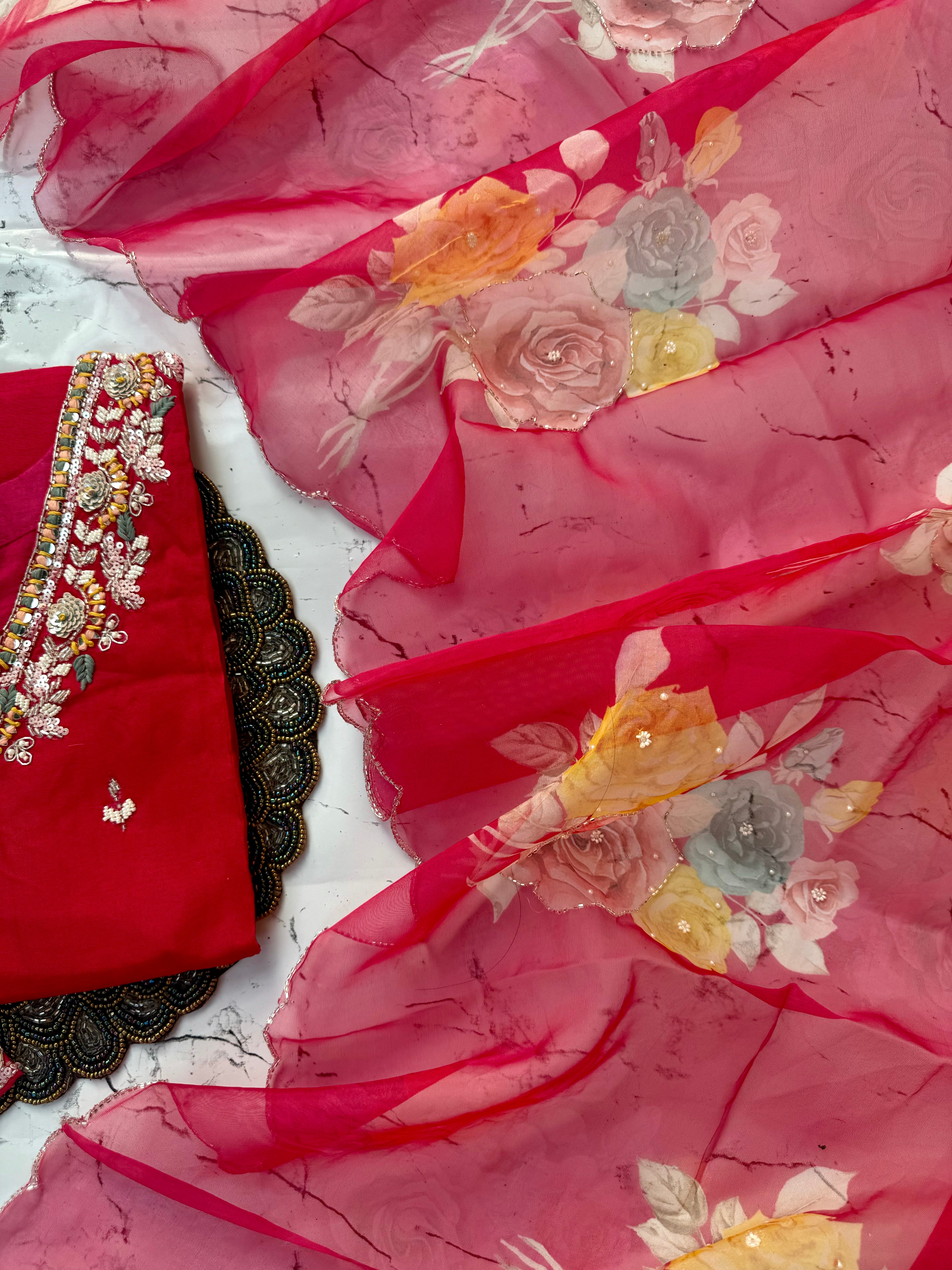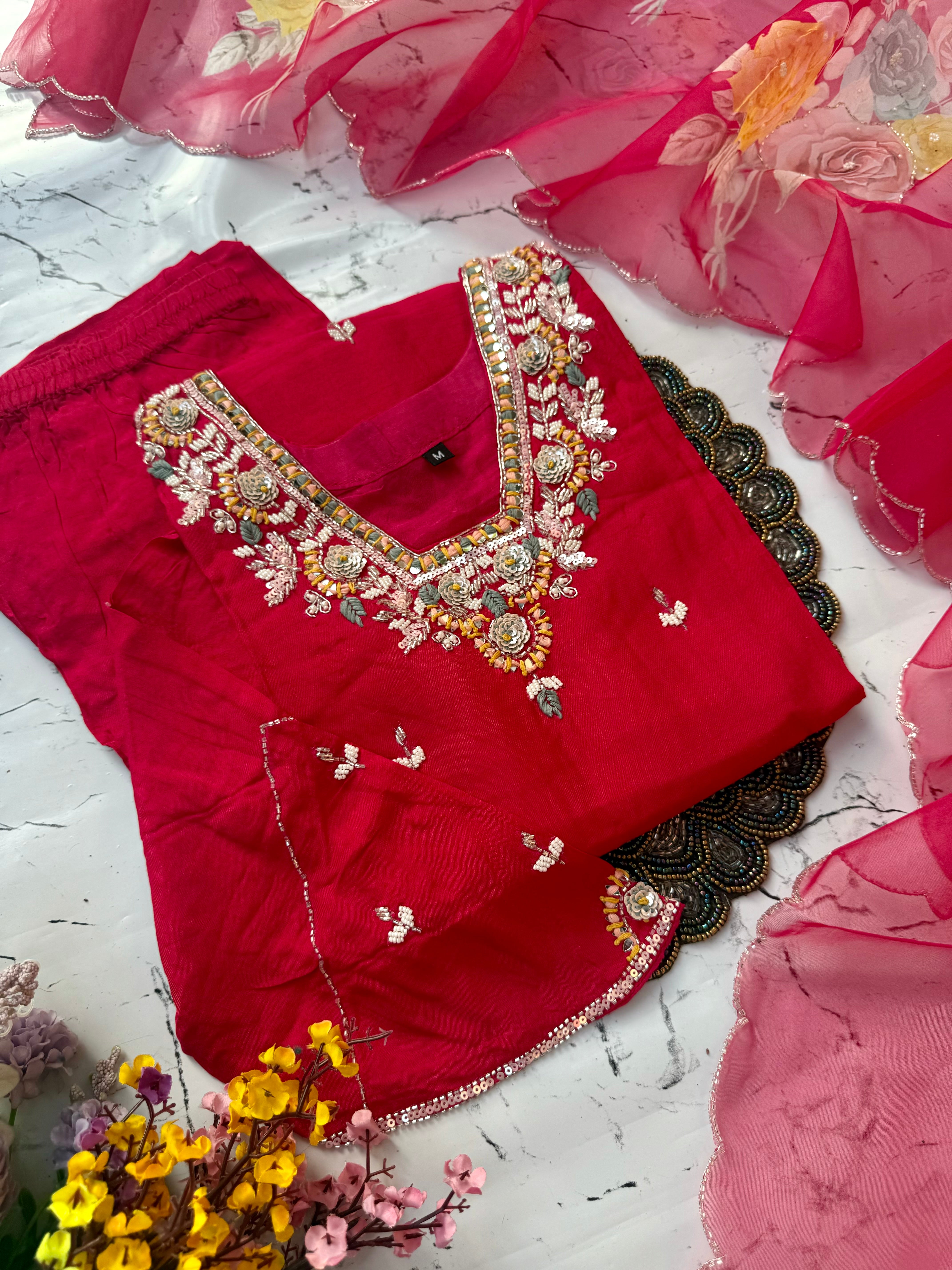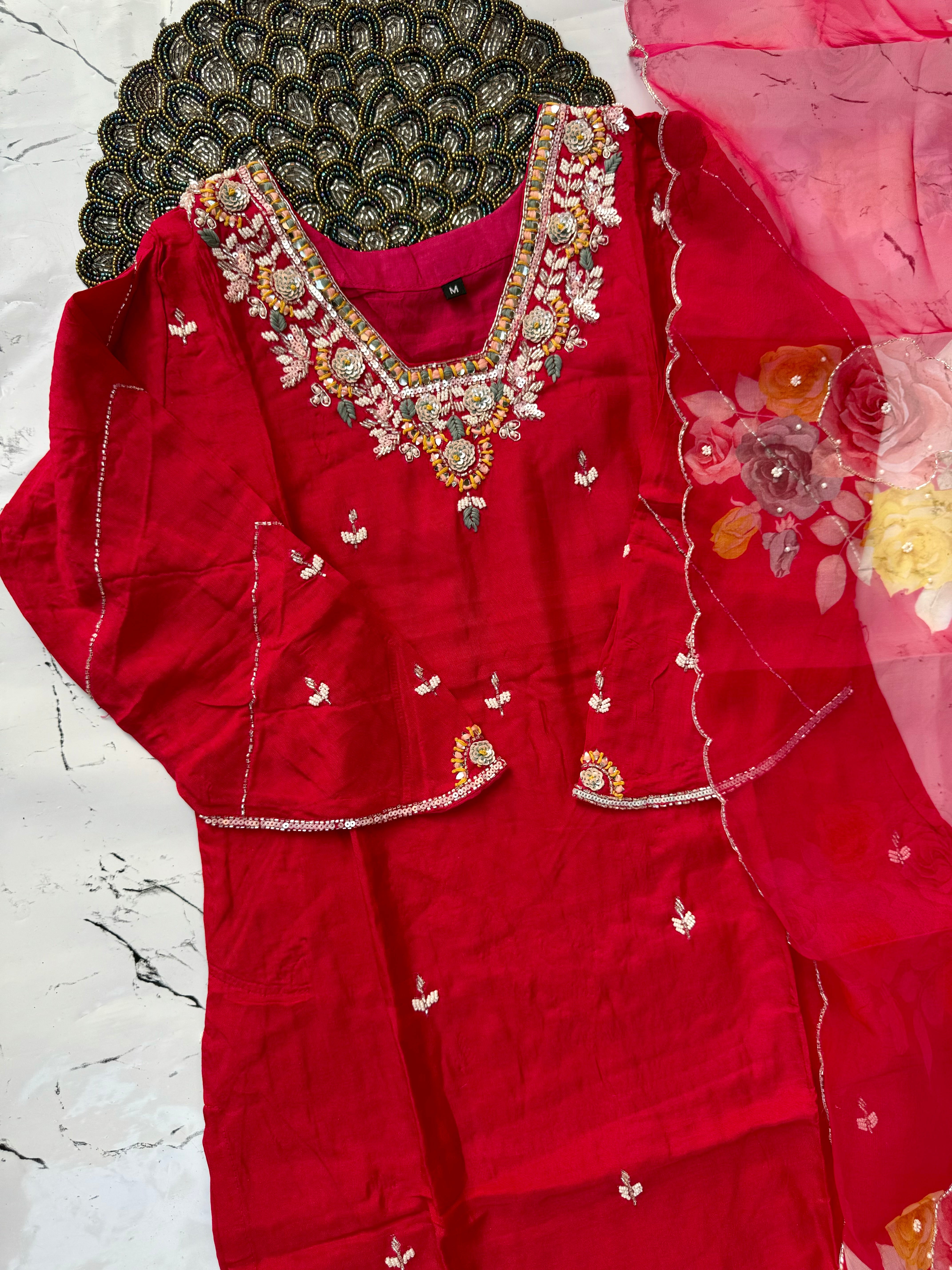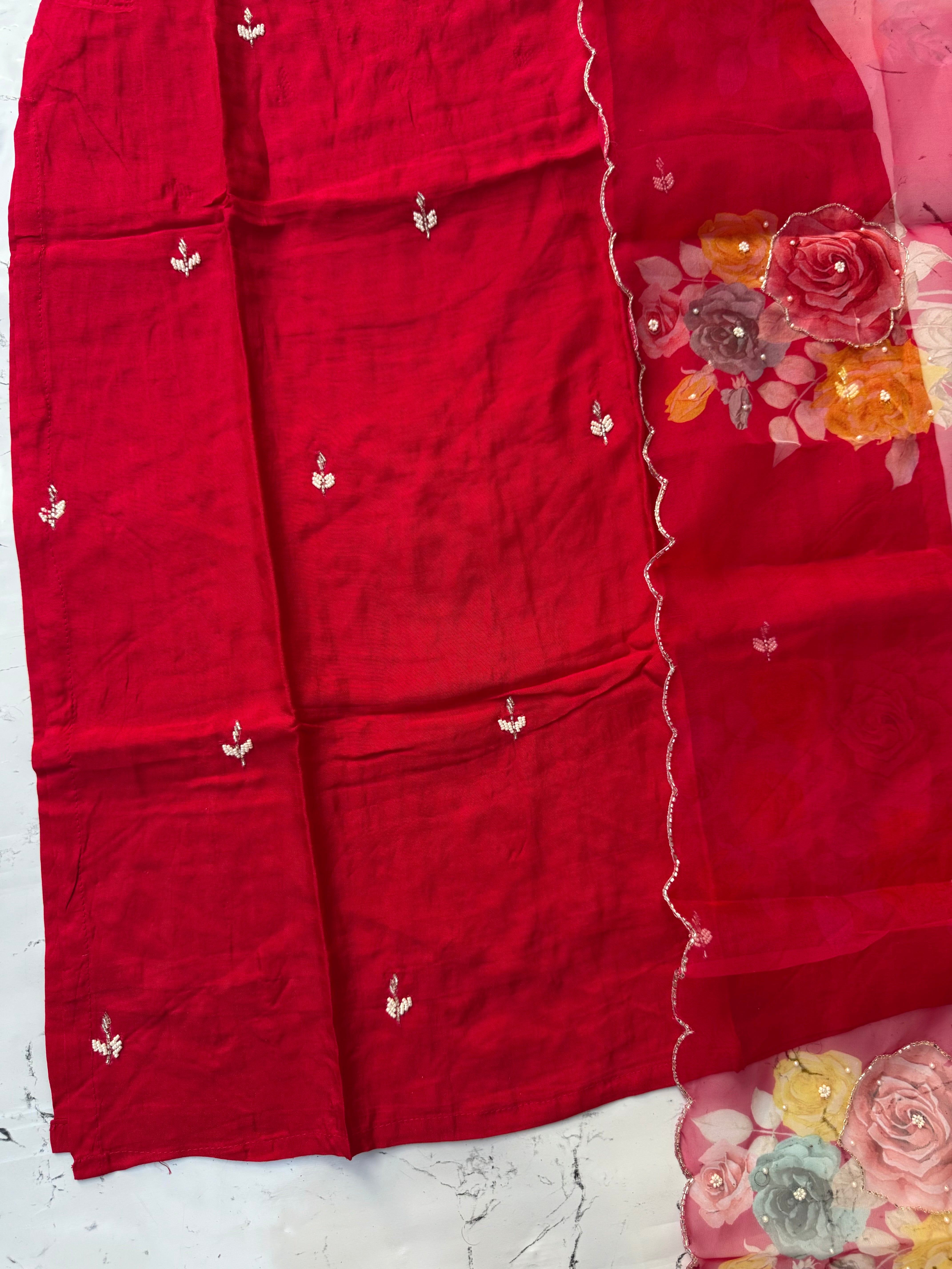 Dola silk kurti dupatta bottom set with handwork on the yoke and sleeves of the kurta with a beautiful Printed & handwork organza dupatta with a silk bottom with work