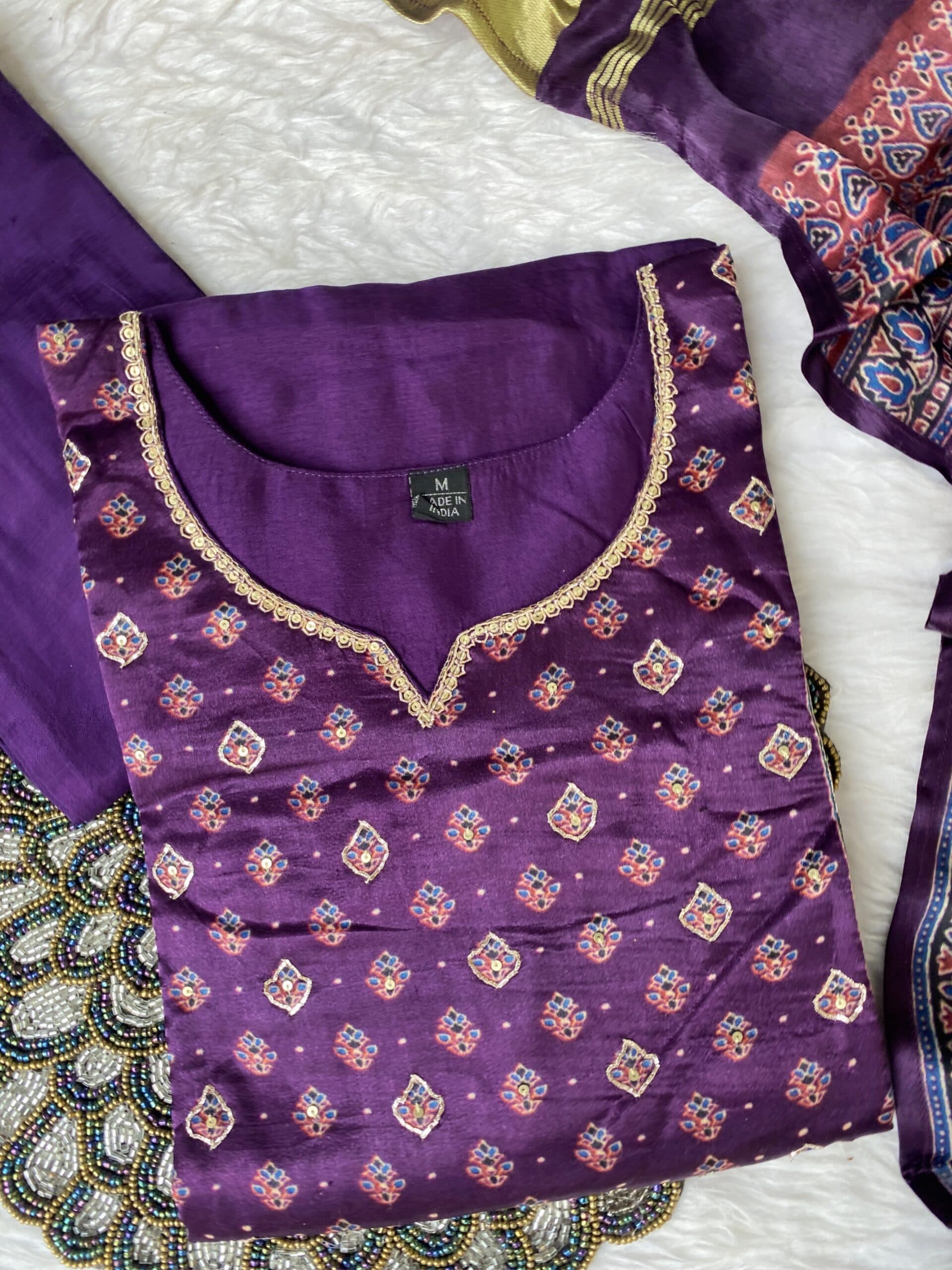 “Arya” Russian silk kurti bottom with gajji silk dupatta set