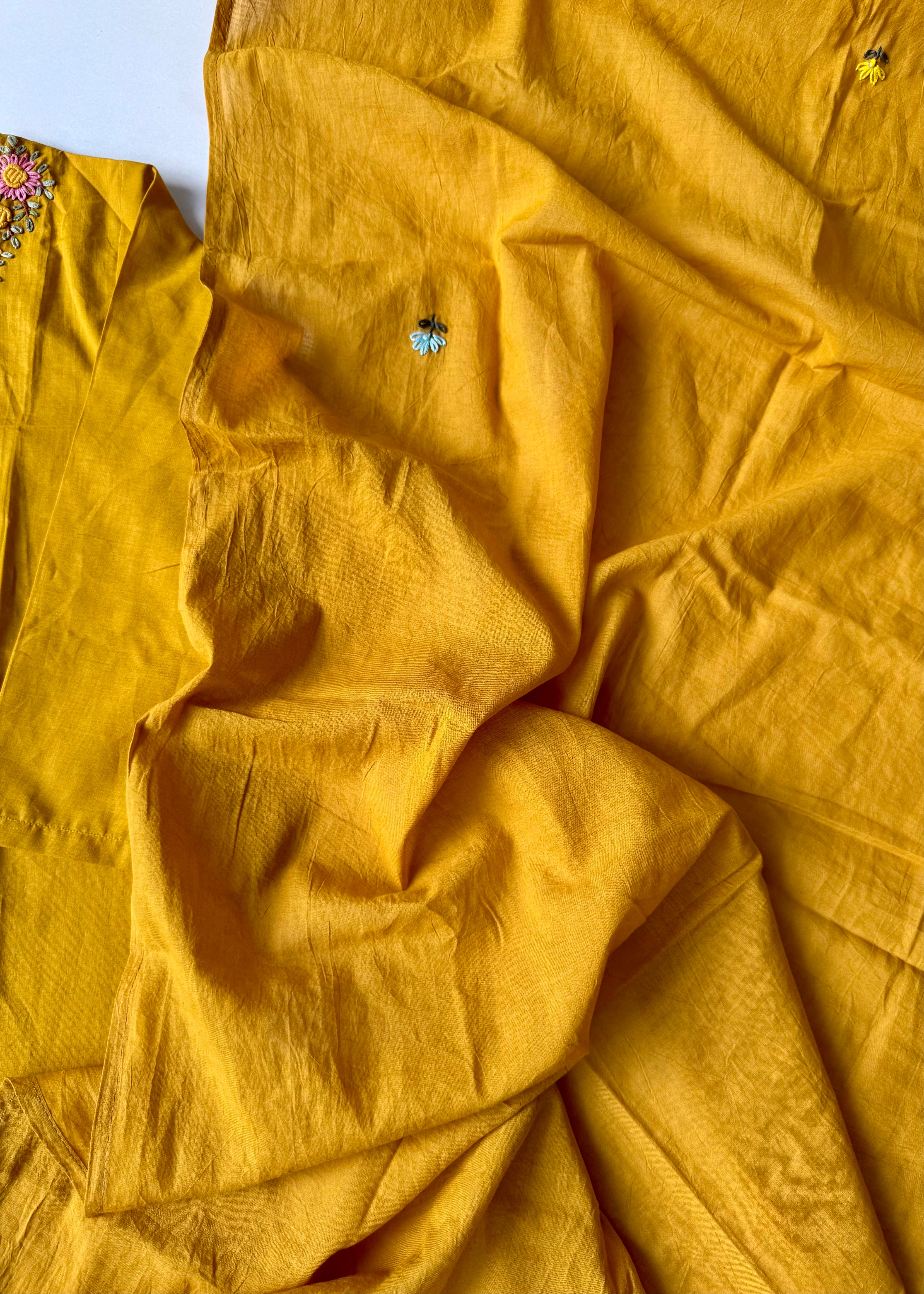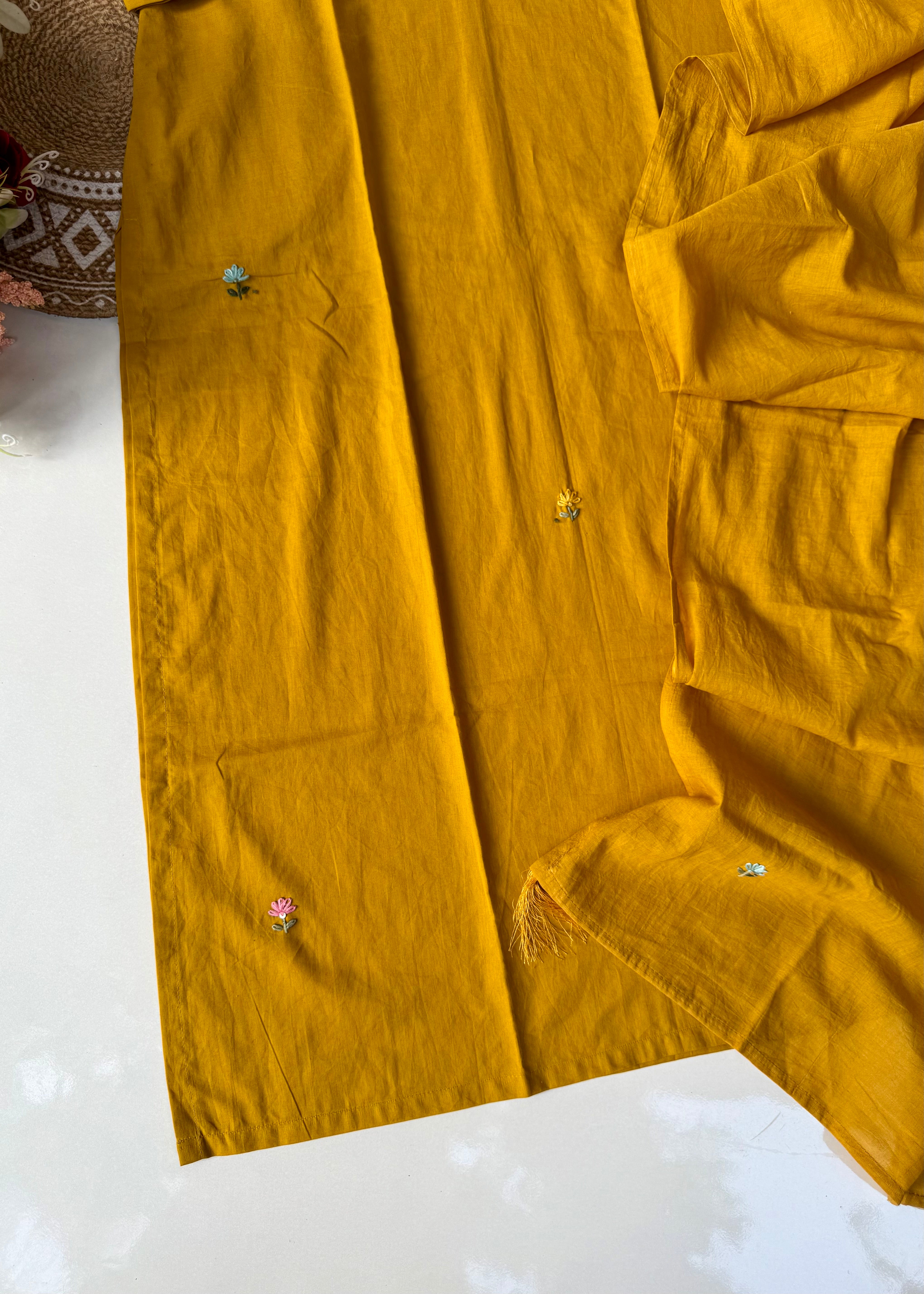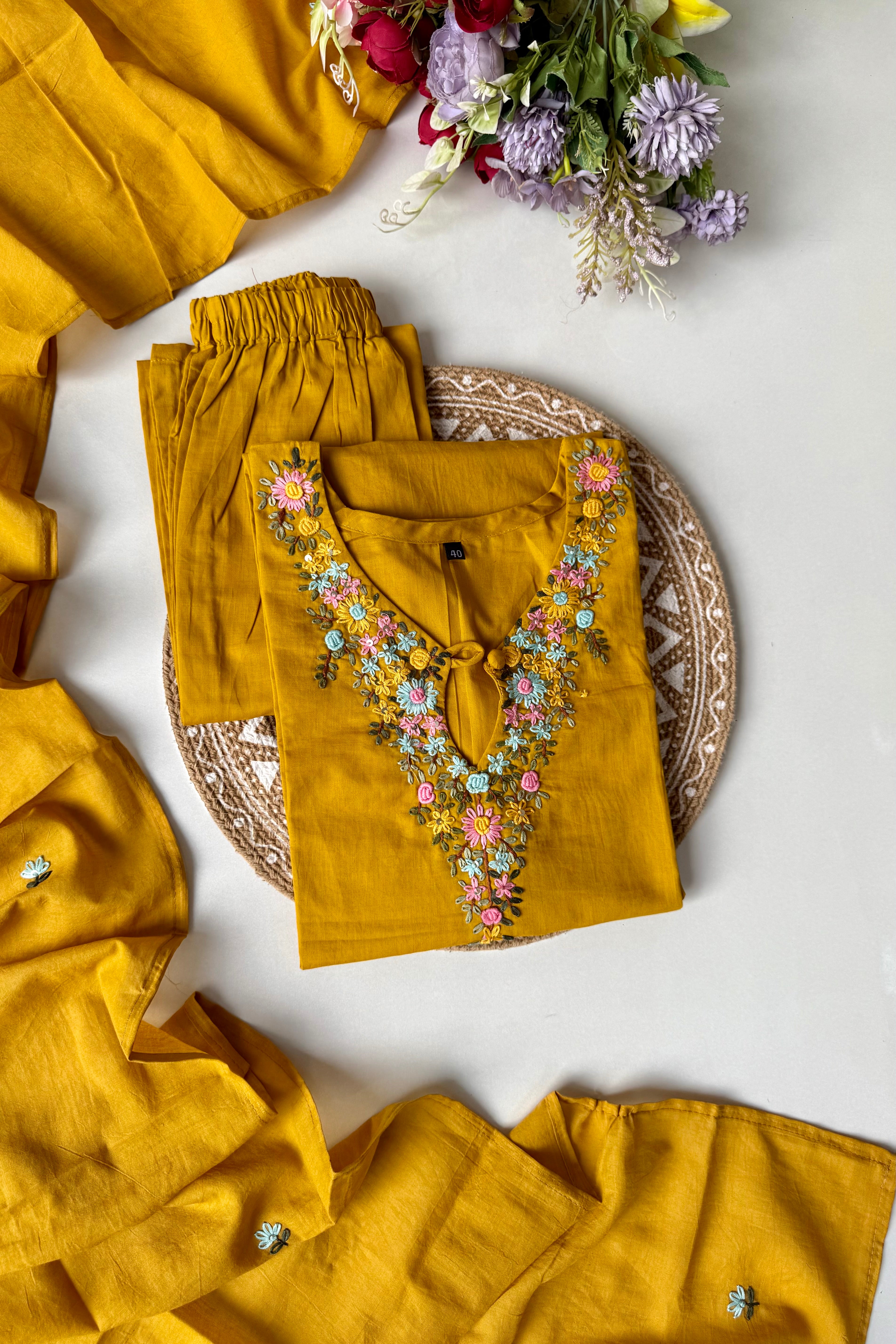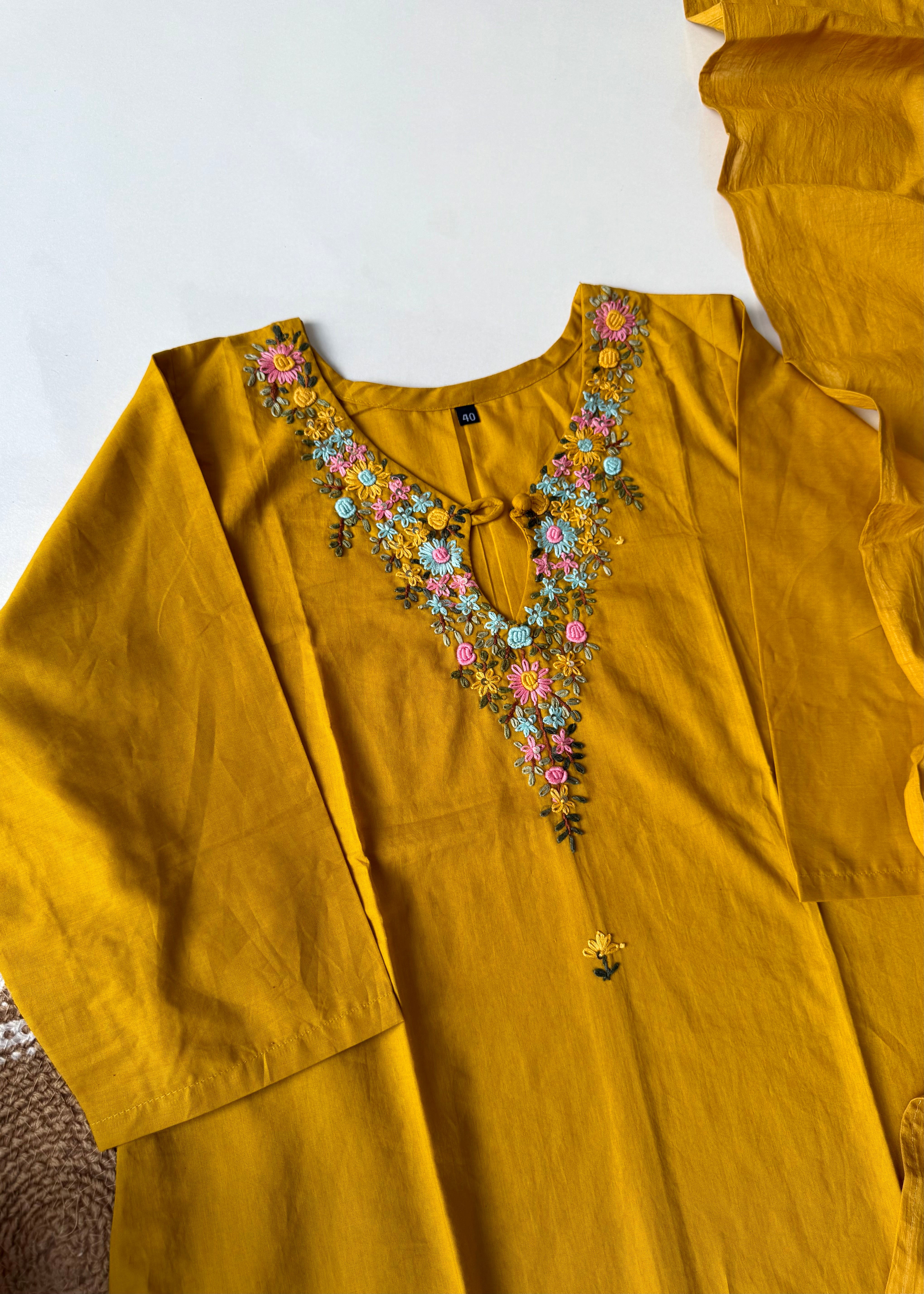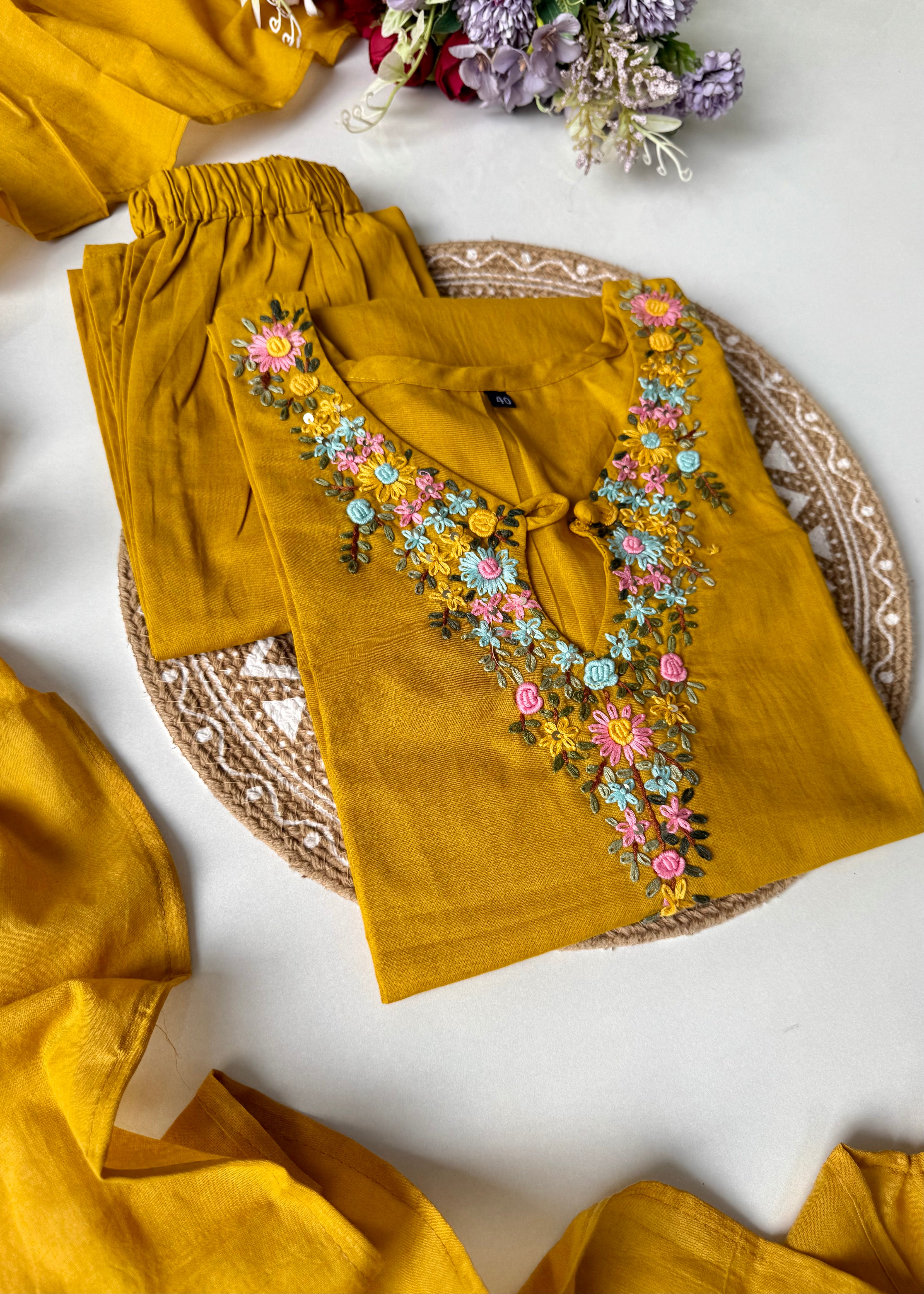 Premium cotton kurta set with thread work all over the top with a cotton dupatta and a cotton pant