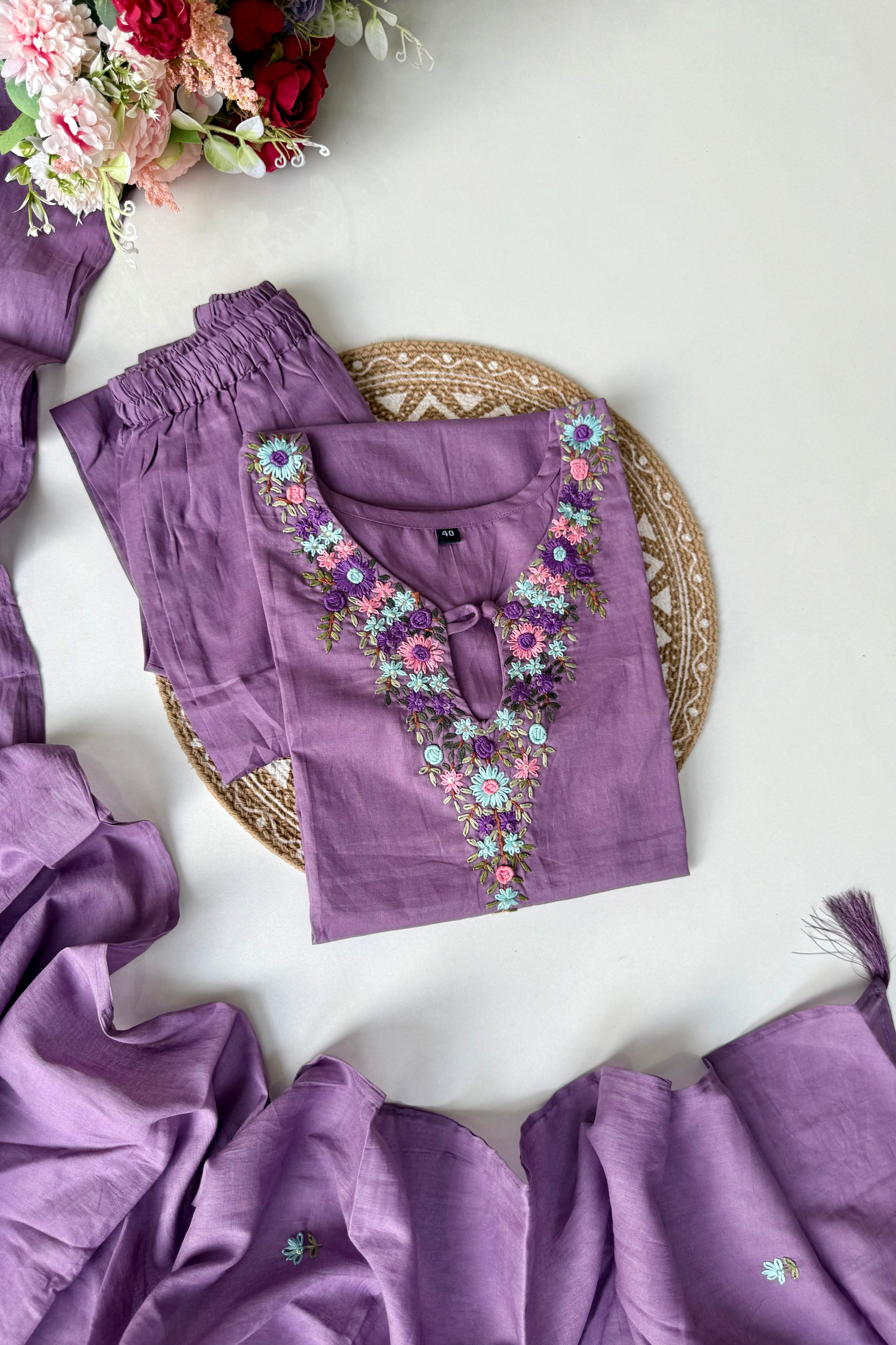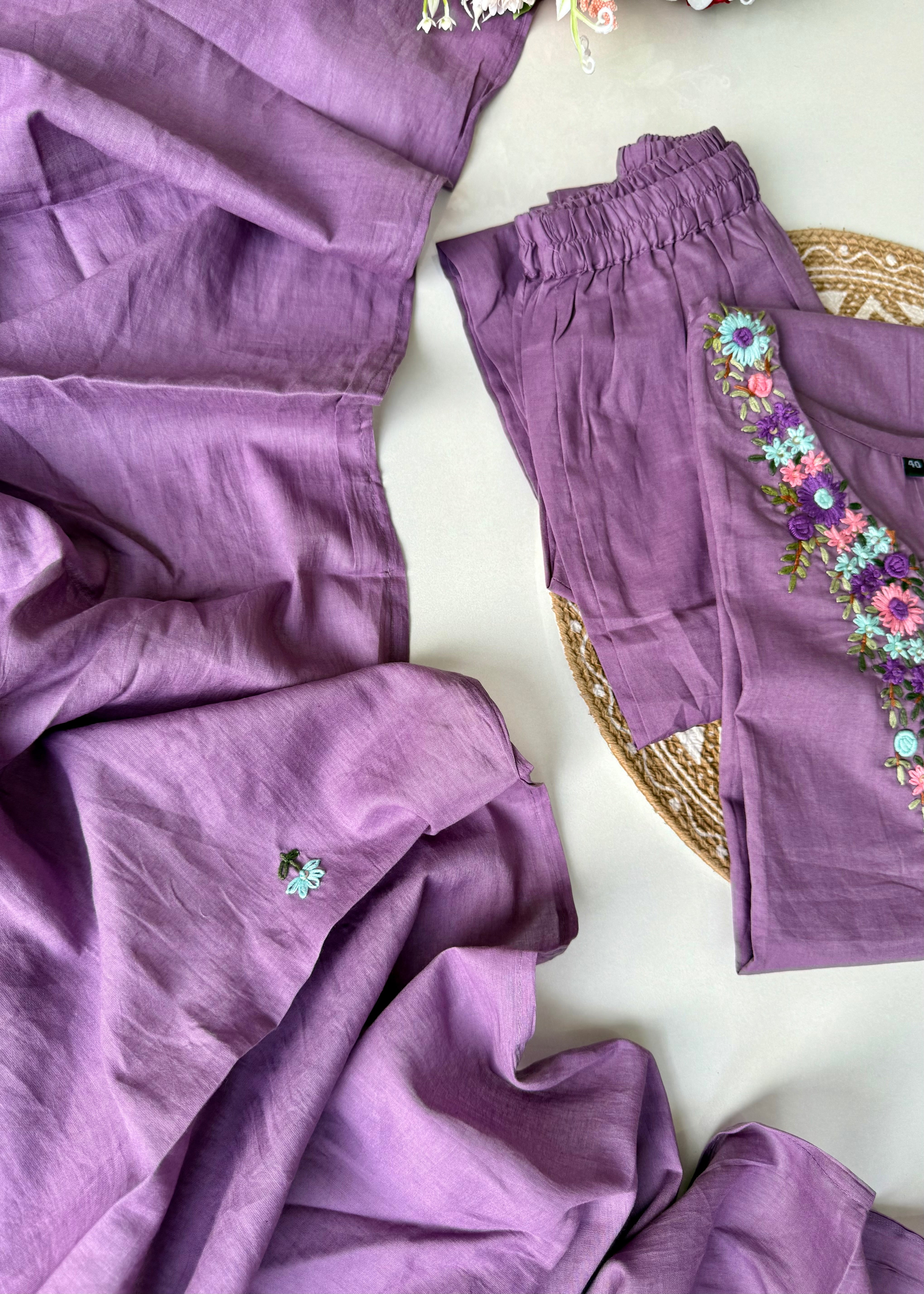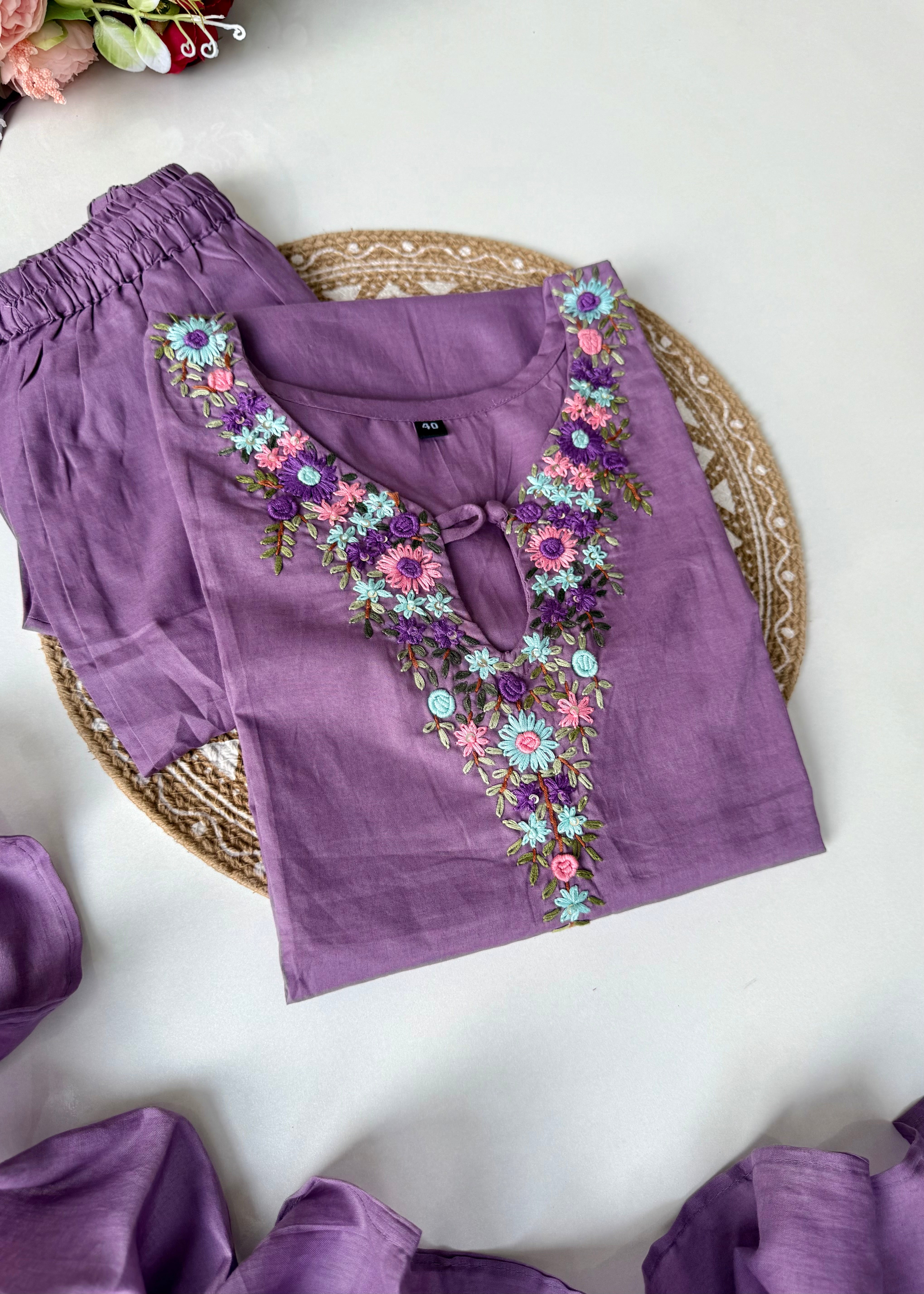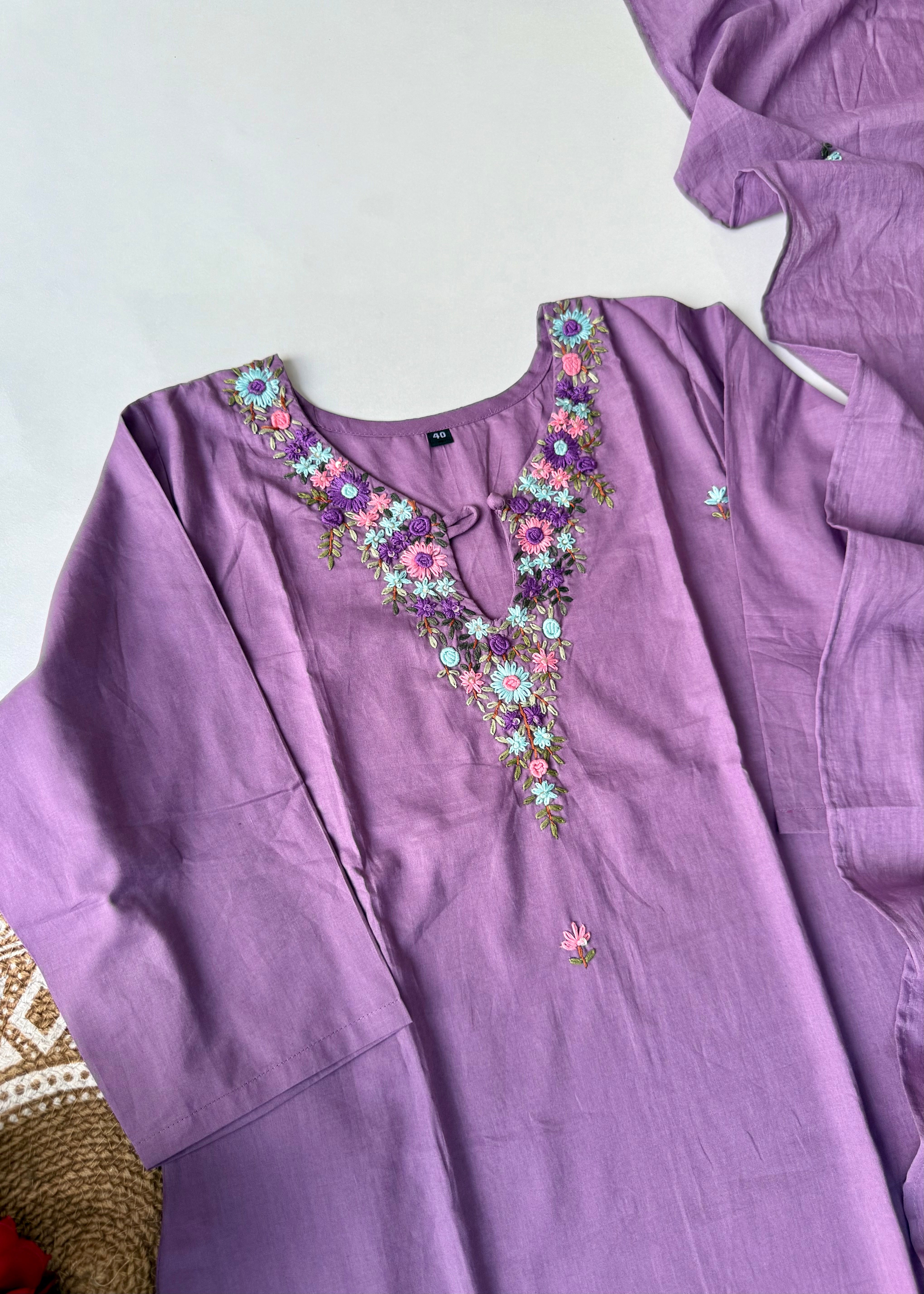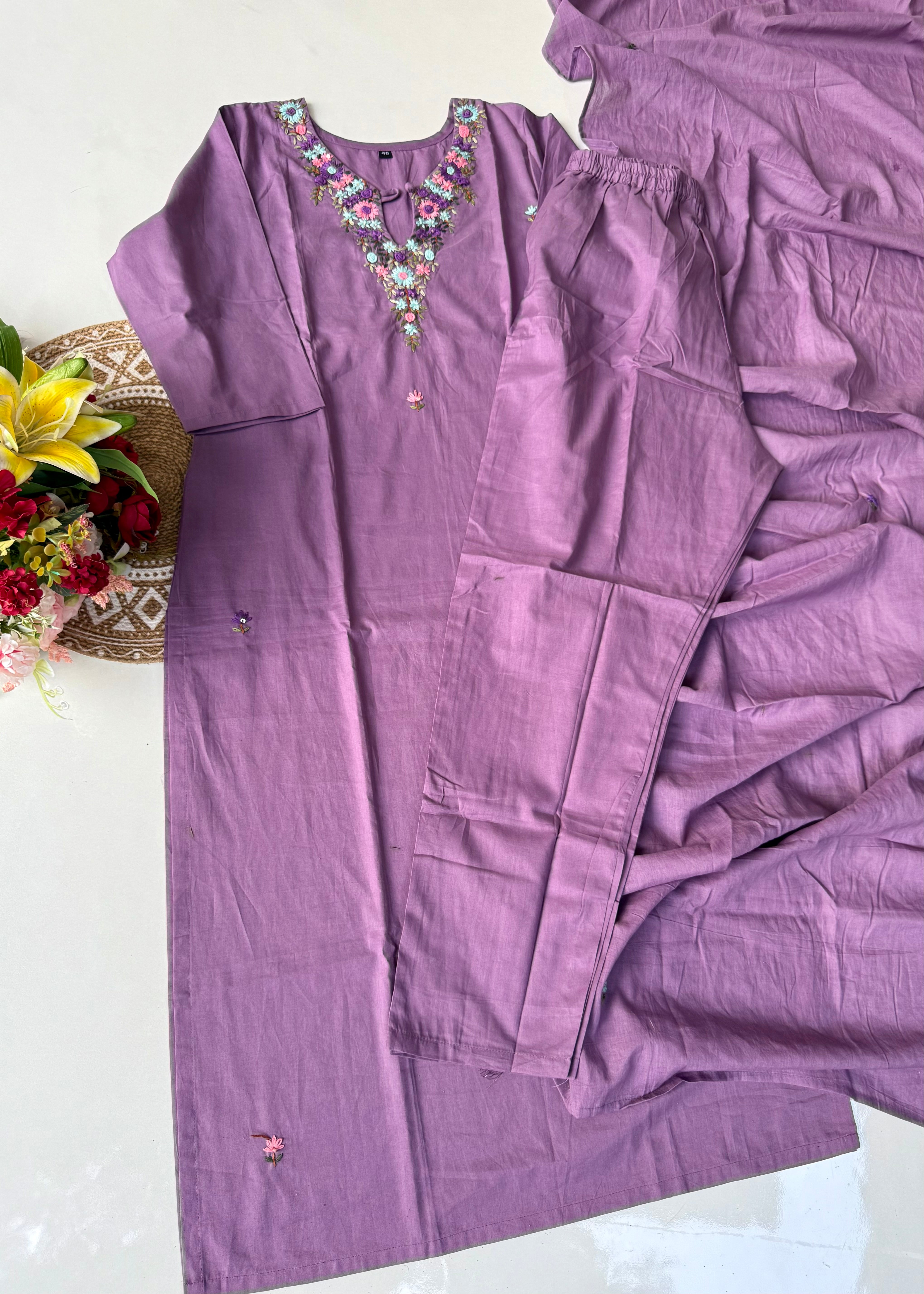 Premium cotton kurta set with thread work all over the top with a cotton dupatta and a cotton pant
