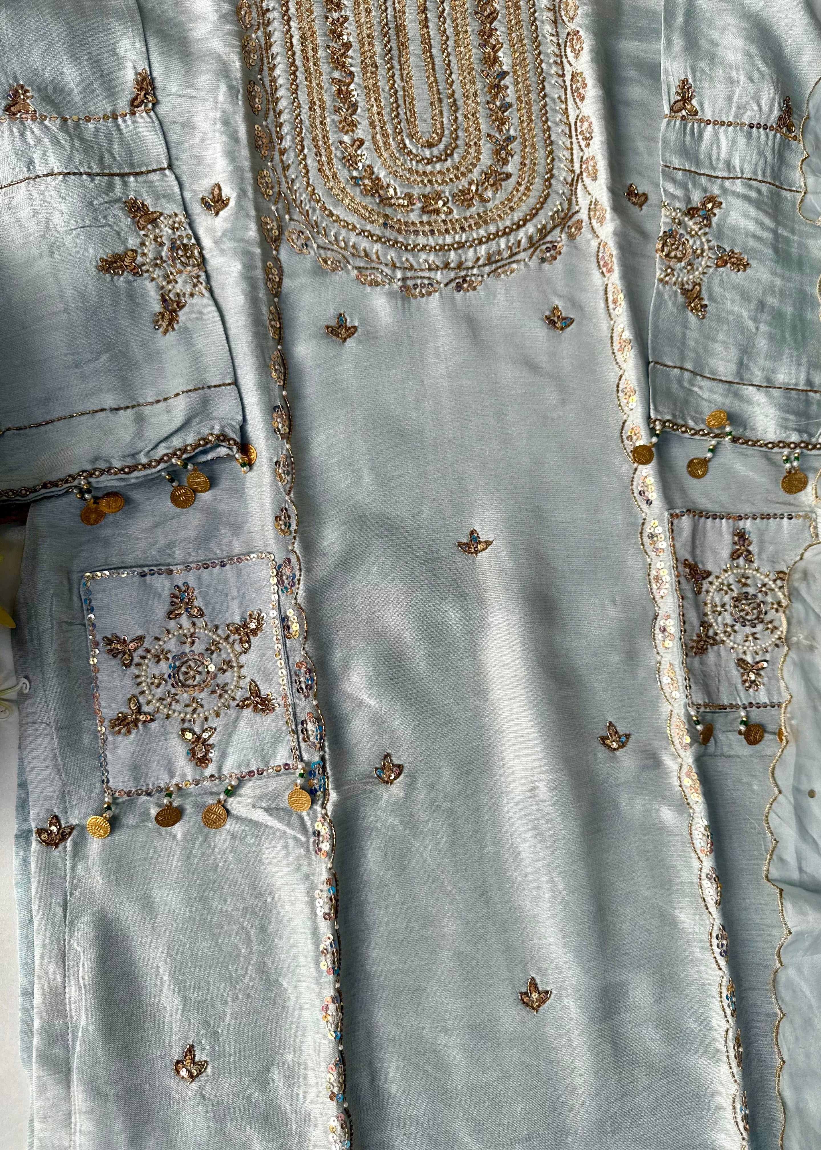 - Dupatta: Soft Organza with scalloped edging & light embroidery
