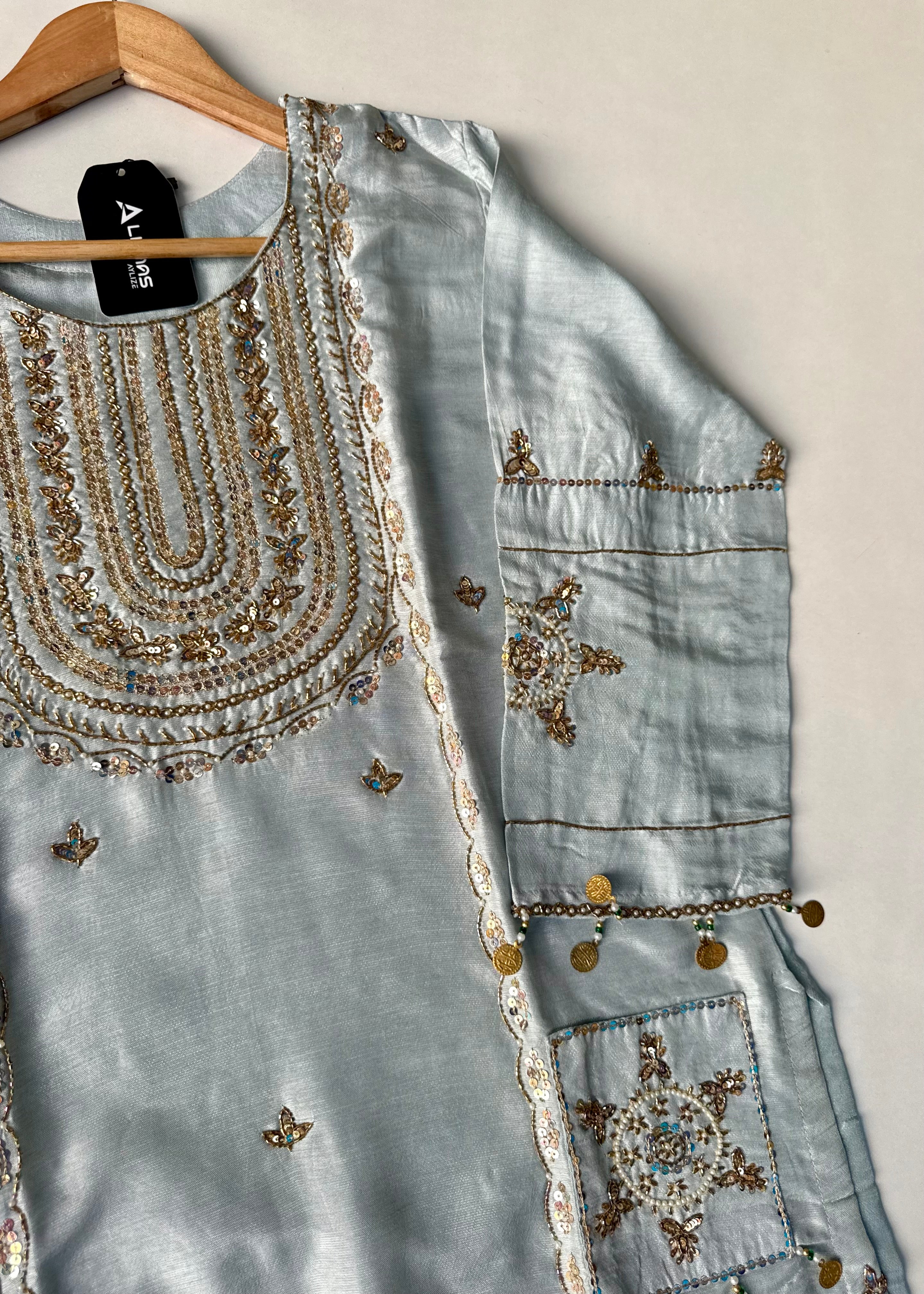 “Aylize” Elegant Dola Silk heavy handwork Kurta Set with Dupatta