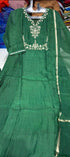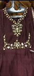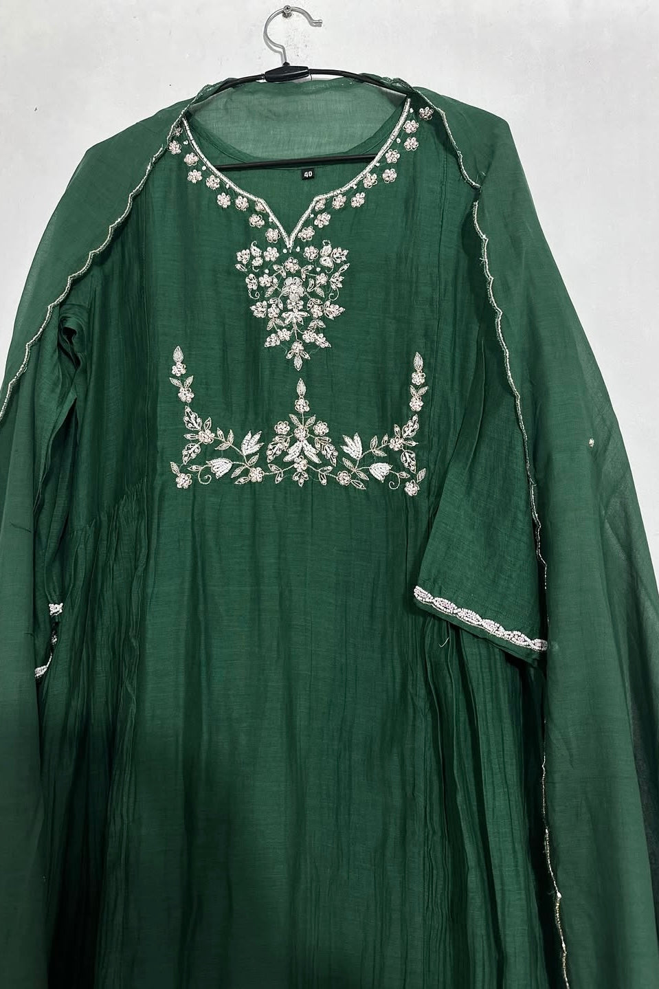 Premium Mul Chanderi Aline kurta set with heavy handwork on the neck line sleeve & daman of the top with a long 4side scaling organza viscose dupatta paired with mul chanderi bottom