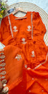 Handcrafted Chinnon Set With heavy Handwork all over the kurta with beautiful handwork detailed viscose dupatta nd a