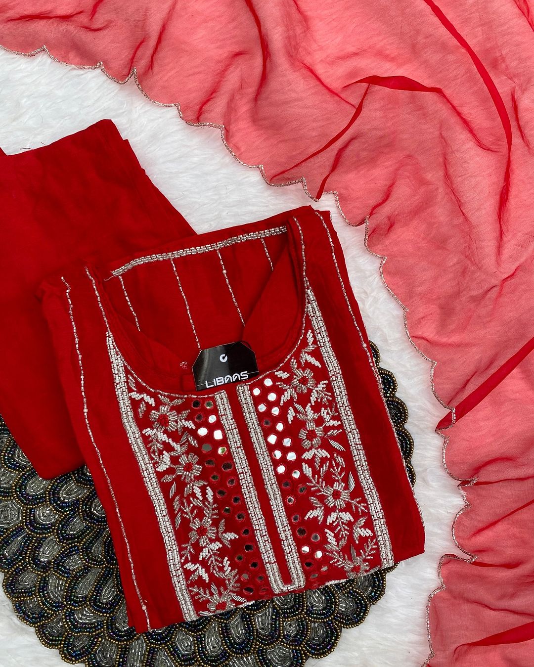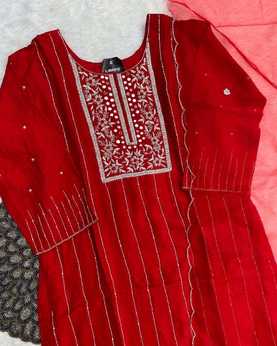 “Chahat” Beautifully cutdana and pearl work dola silk set 🛍️