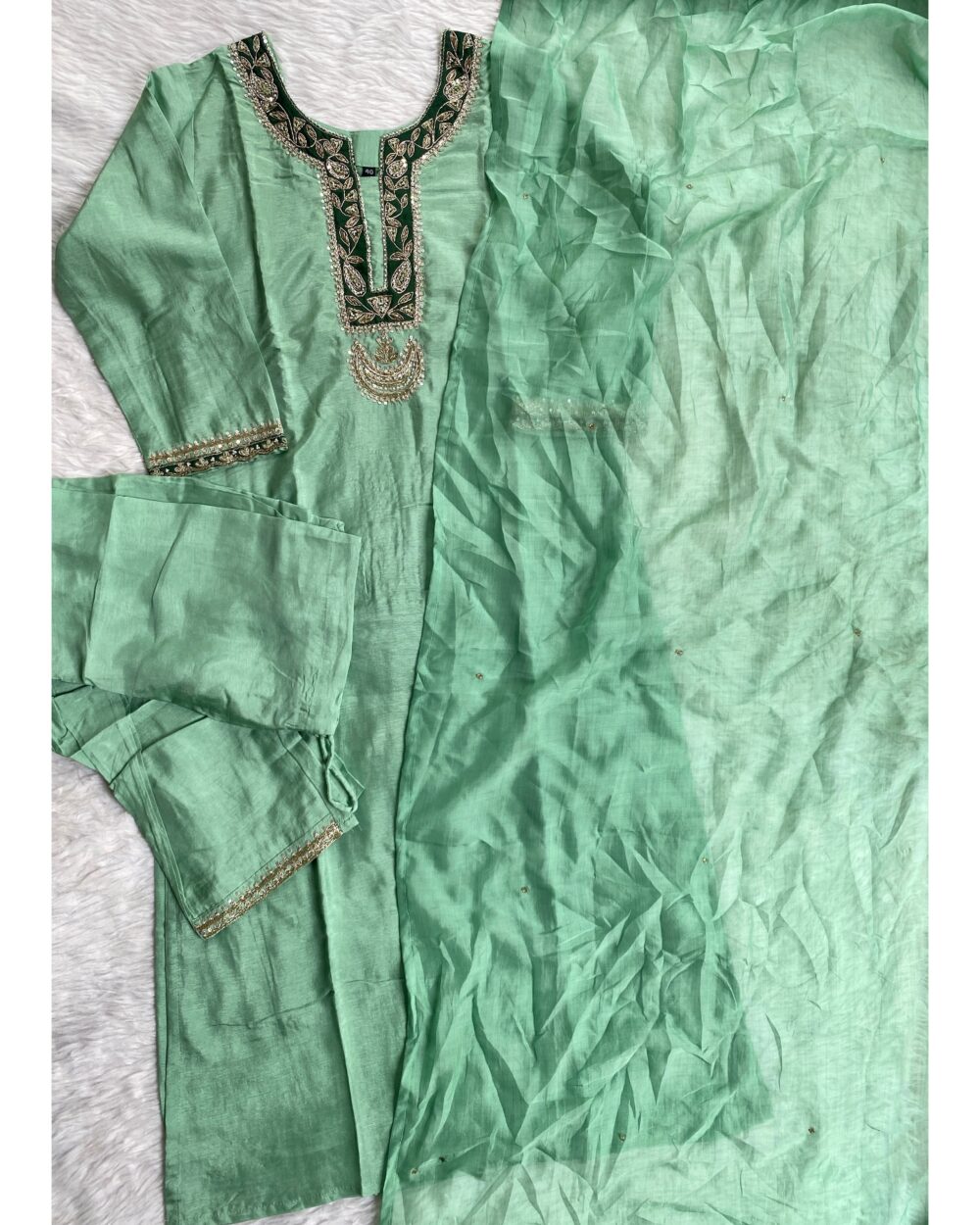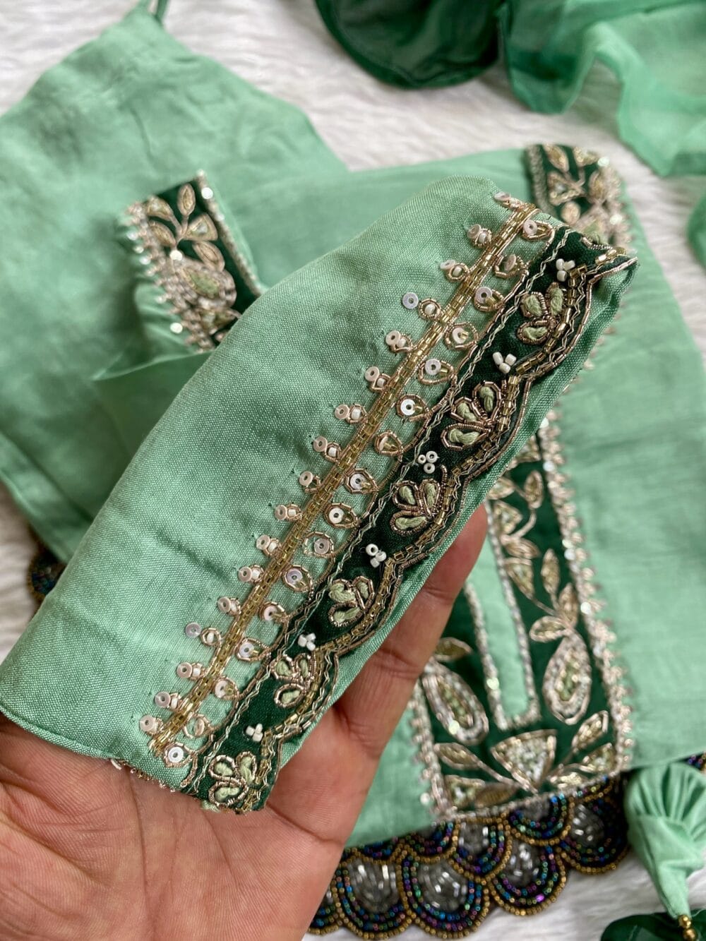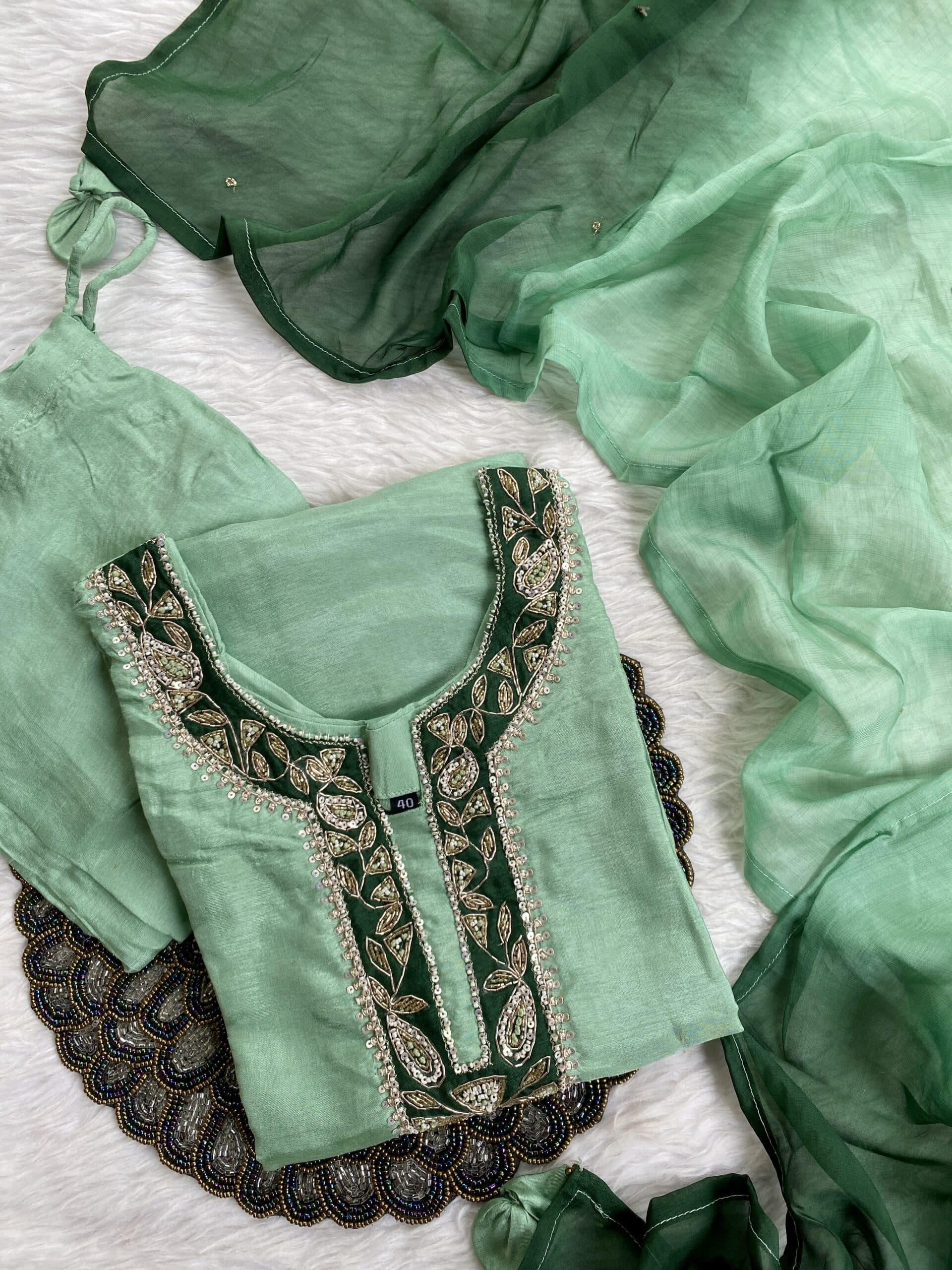 “Chanda” Beautiful Sea green shade Handwork kurta set