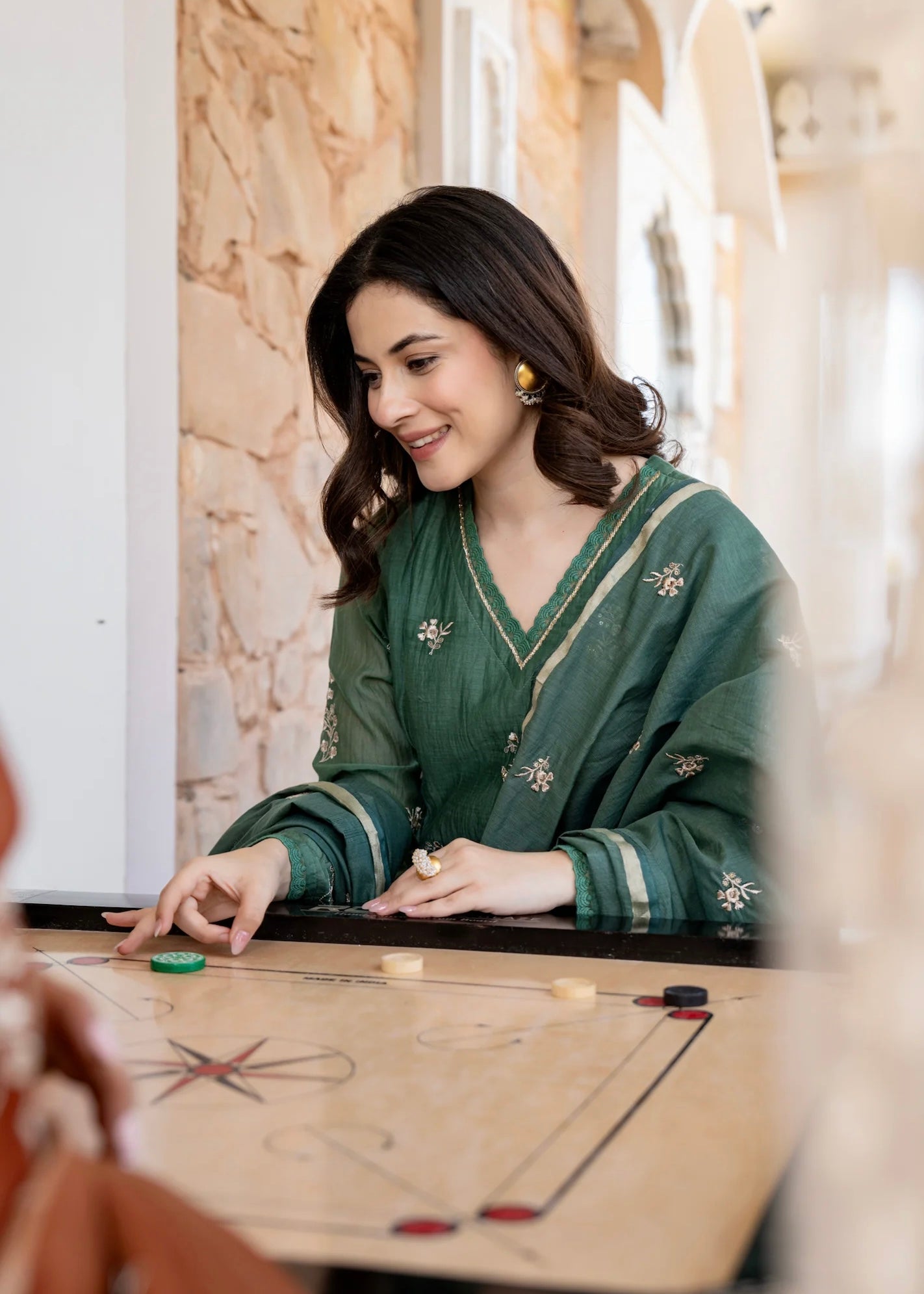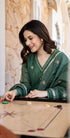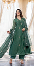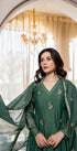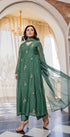 “CHHAVI” Olive Luxe Mul chanderi anarkali suit set