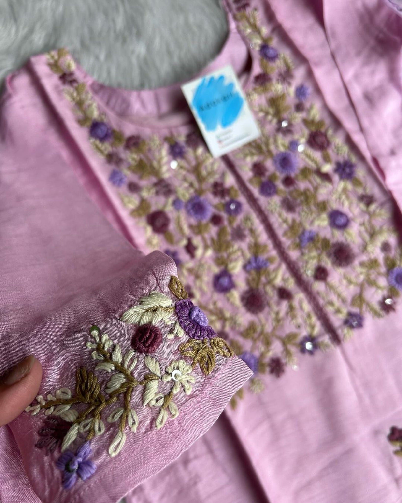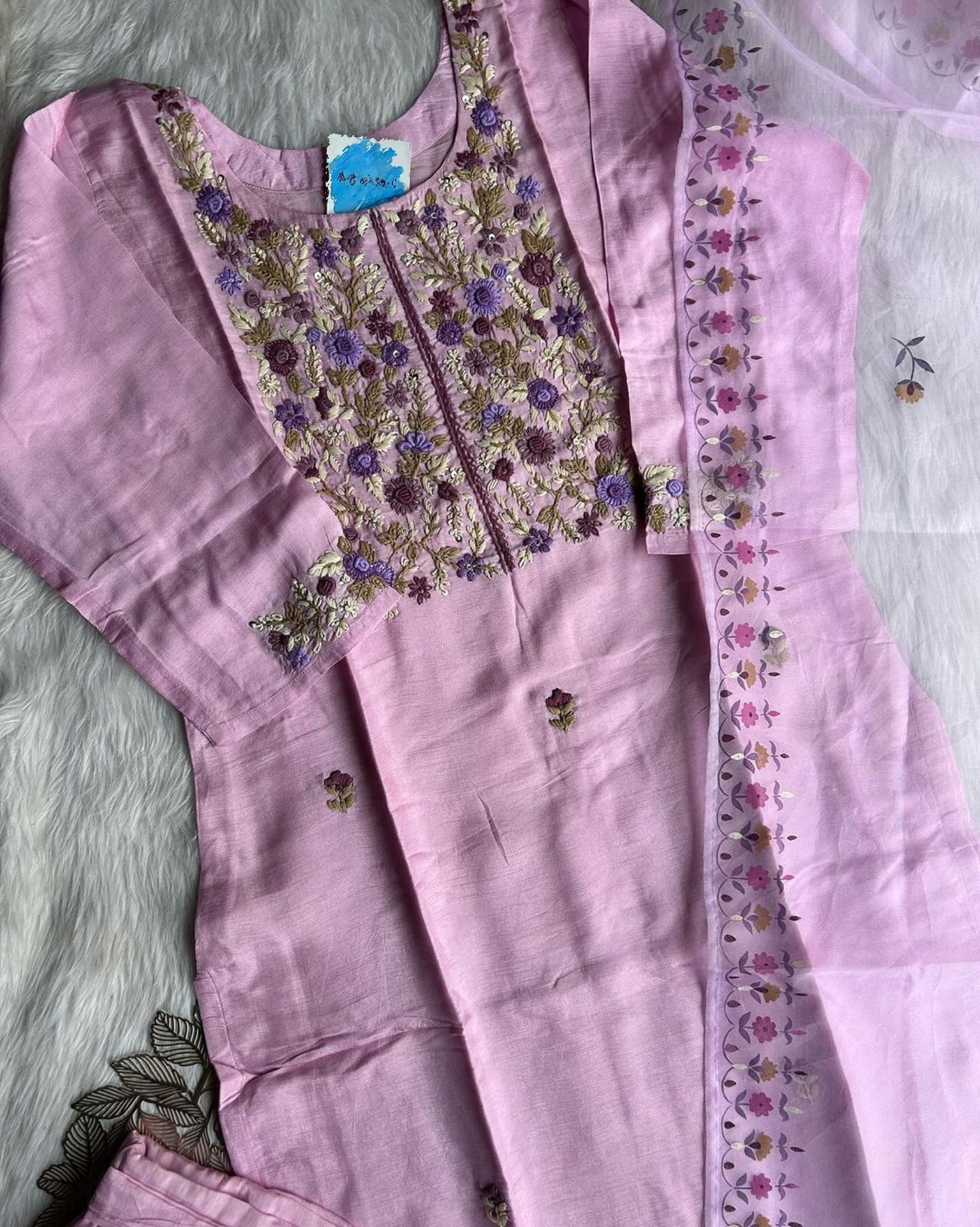 “Meera” Beautifully handcrafted dola silk kurta bottom dupatta set