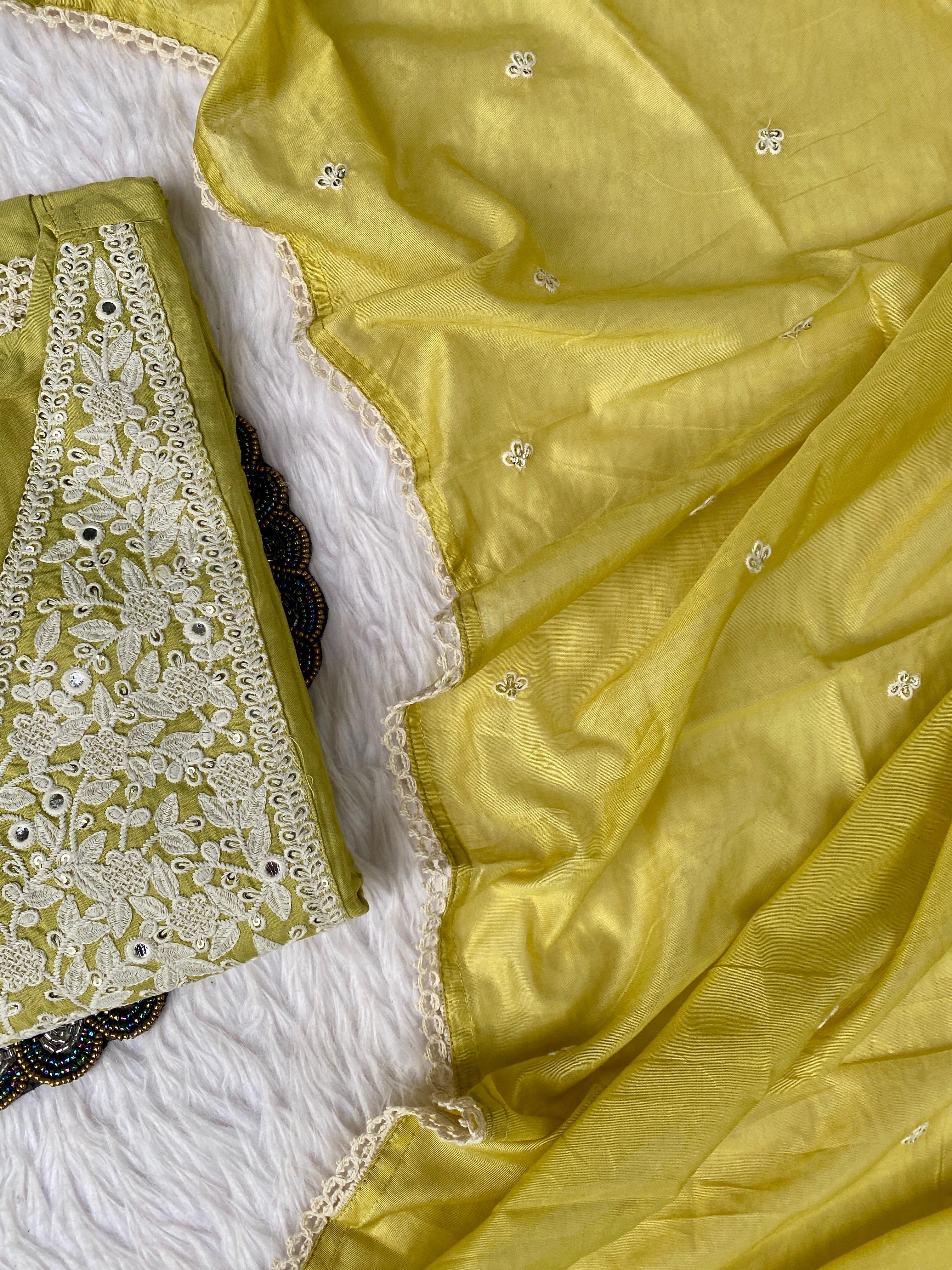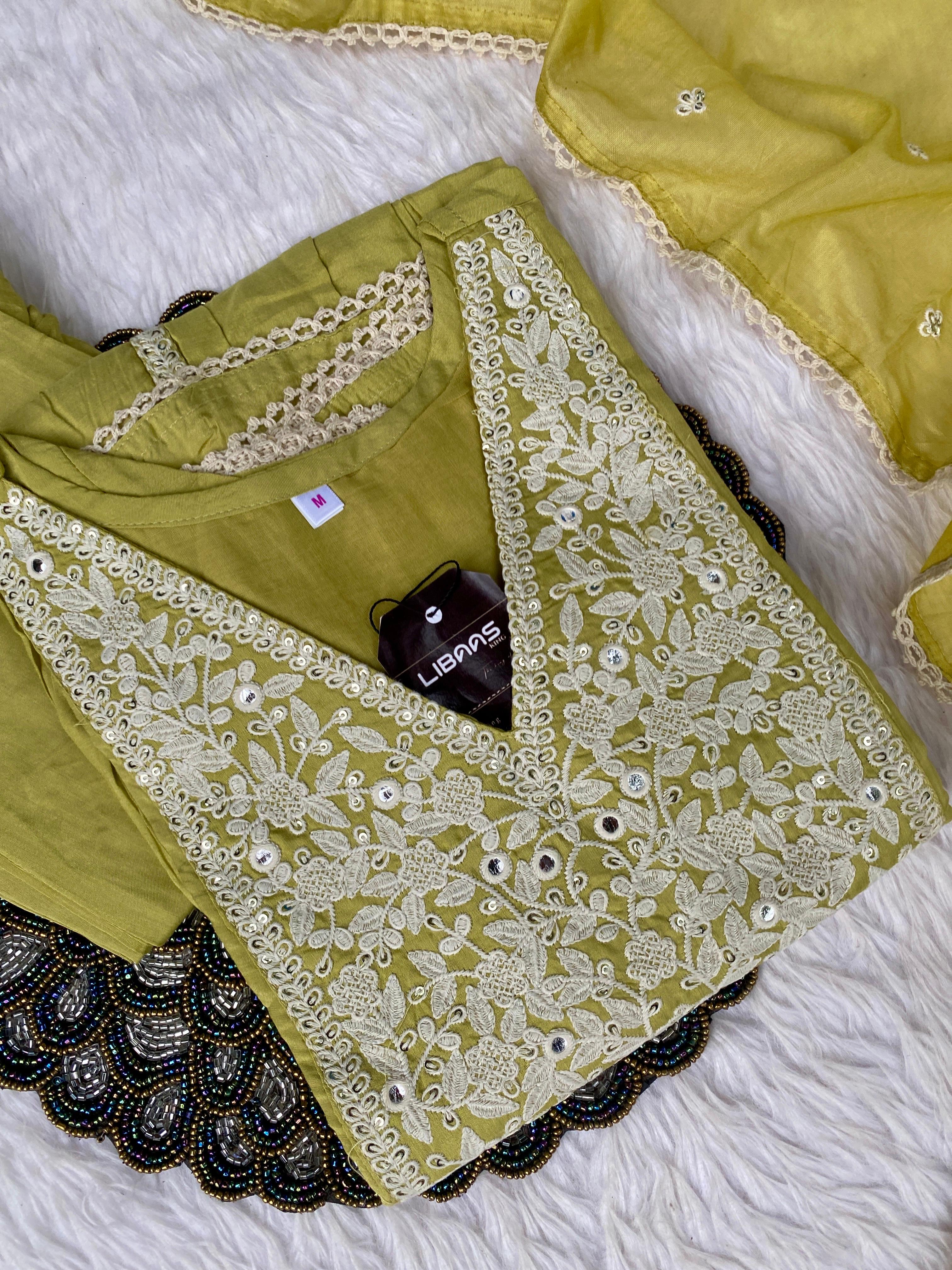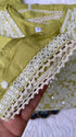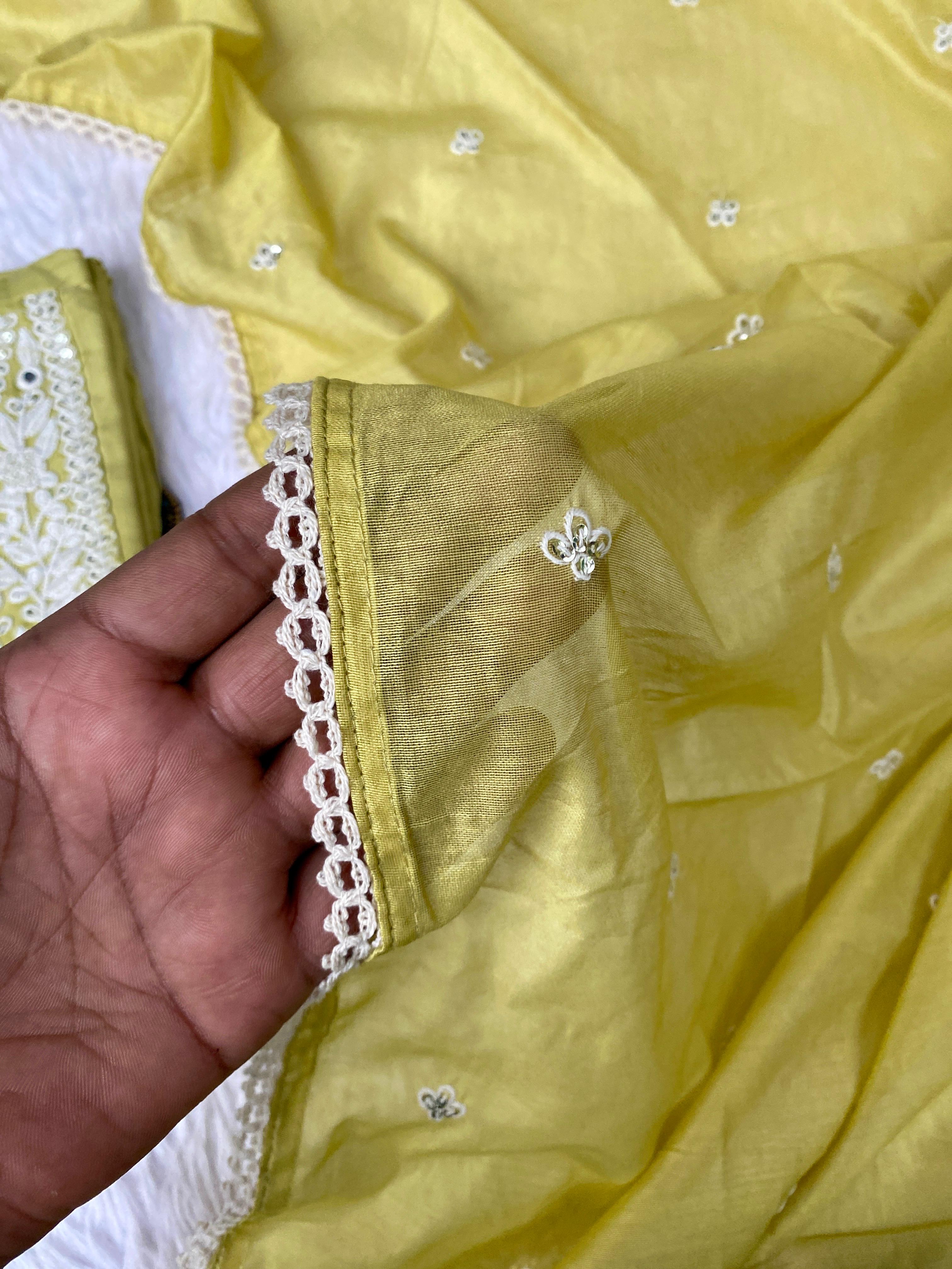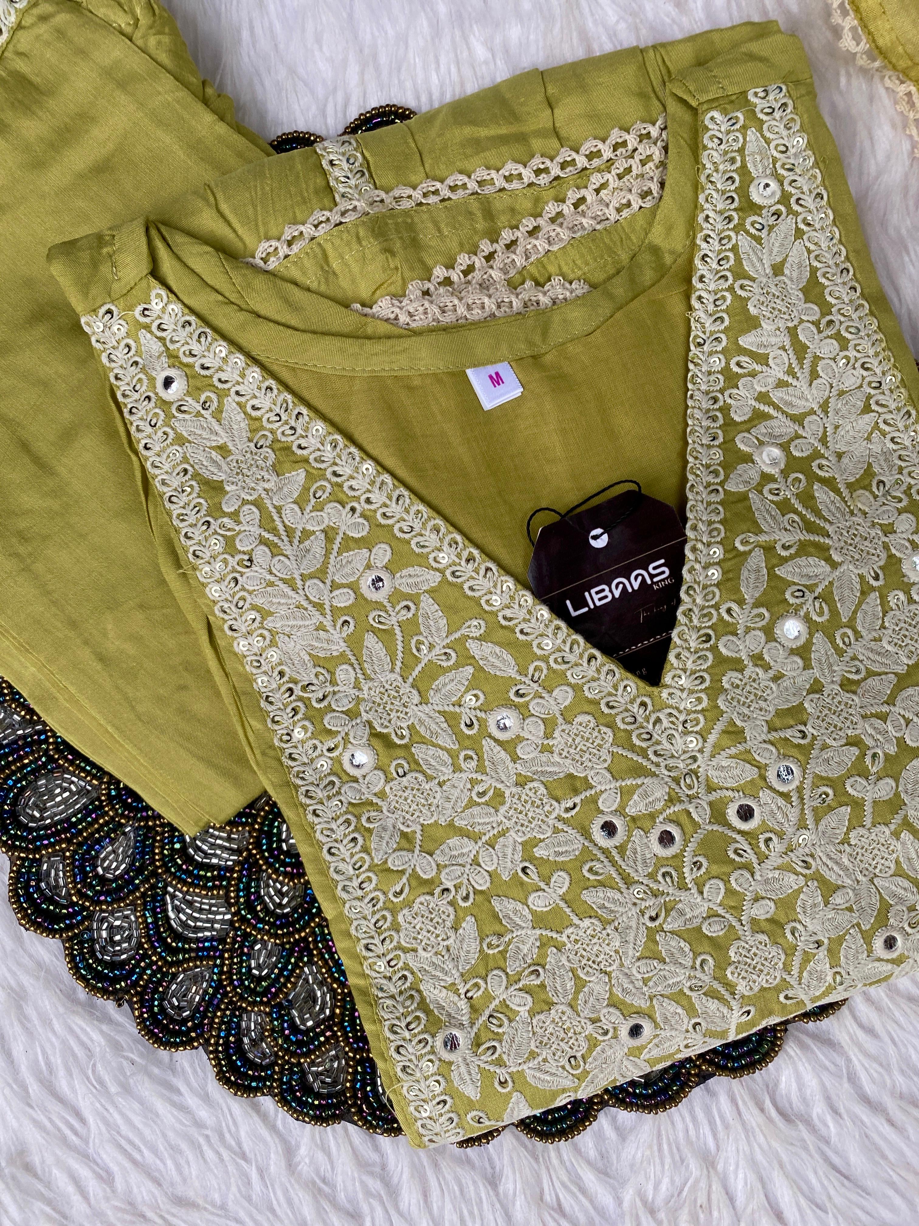 Muslin silk anarkali kurti with embroidery and lace work detailing on the neck line, sleevs and Daman with a lace & embroidery detailing shiffon dupatta with silk bottom