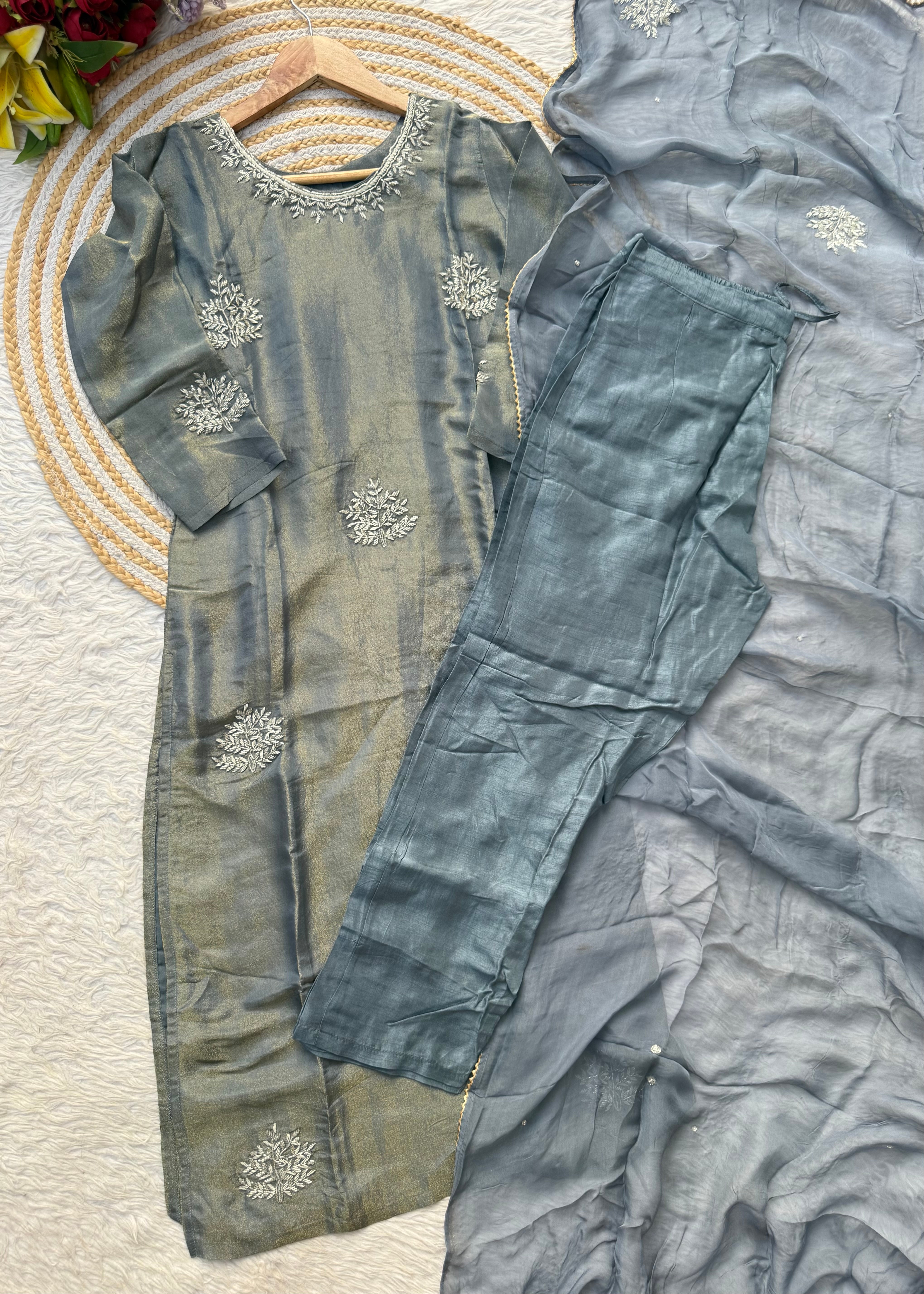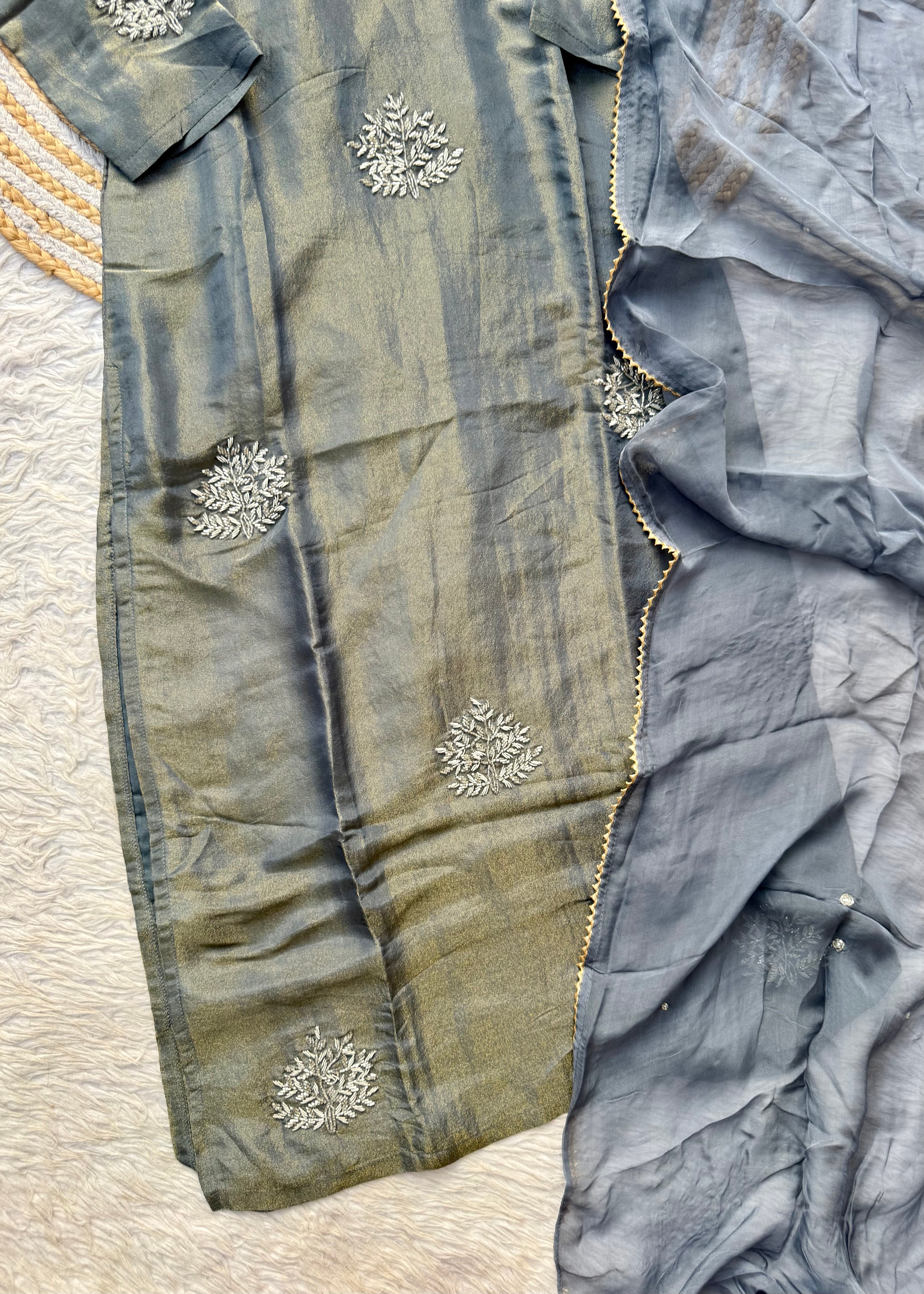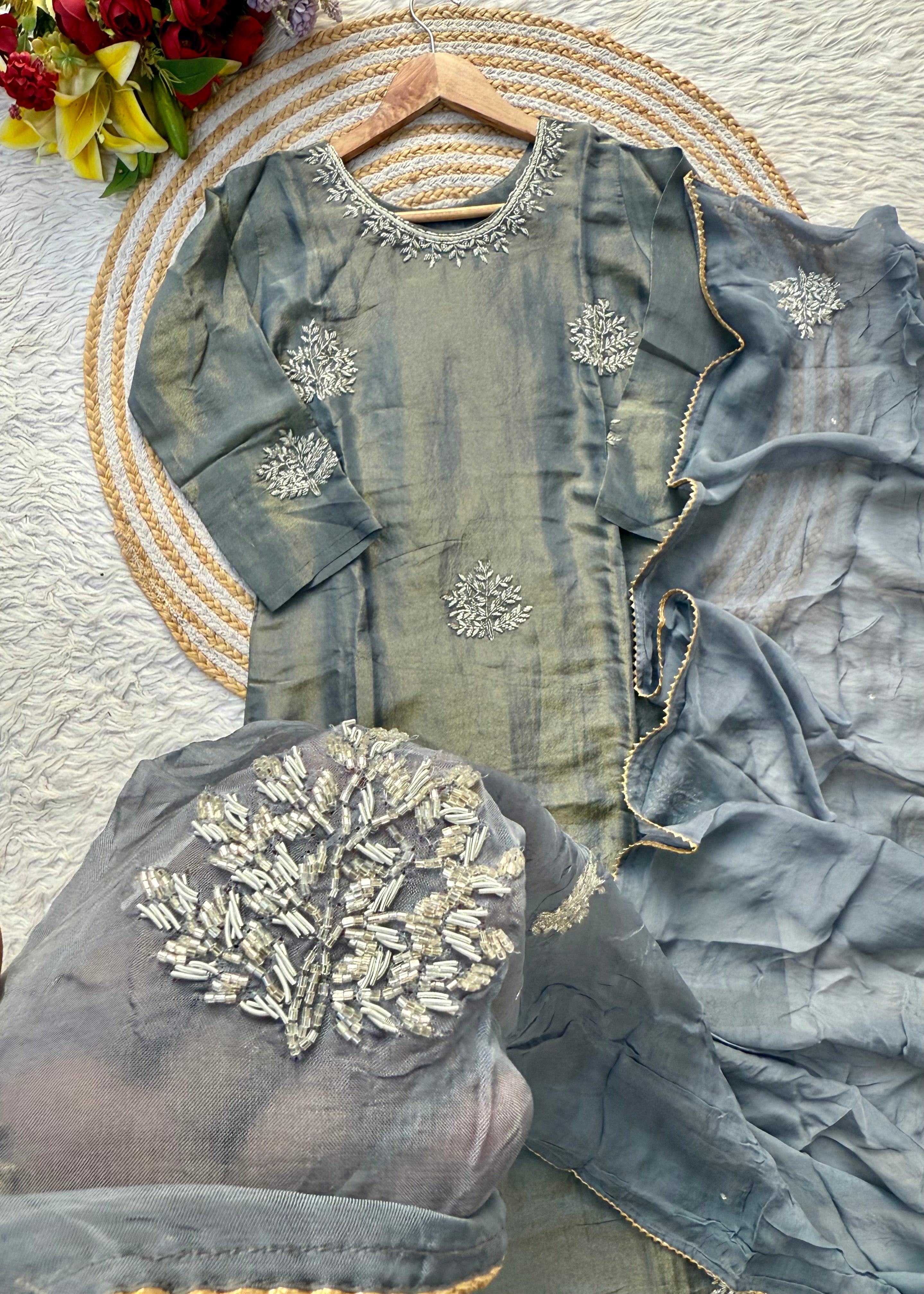 “DEEPALI” Best seller premium Silver Zardozi tissue silk kurti set