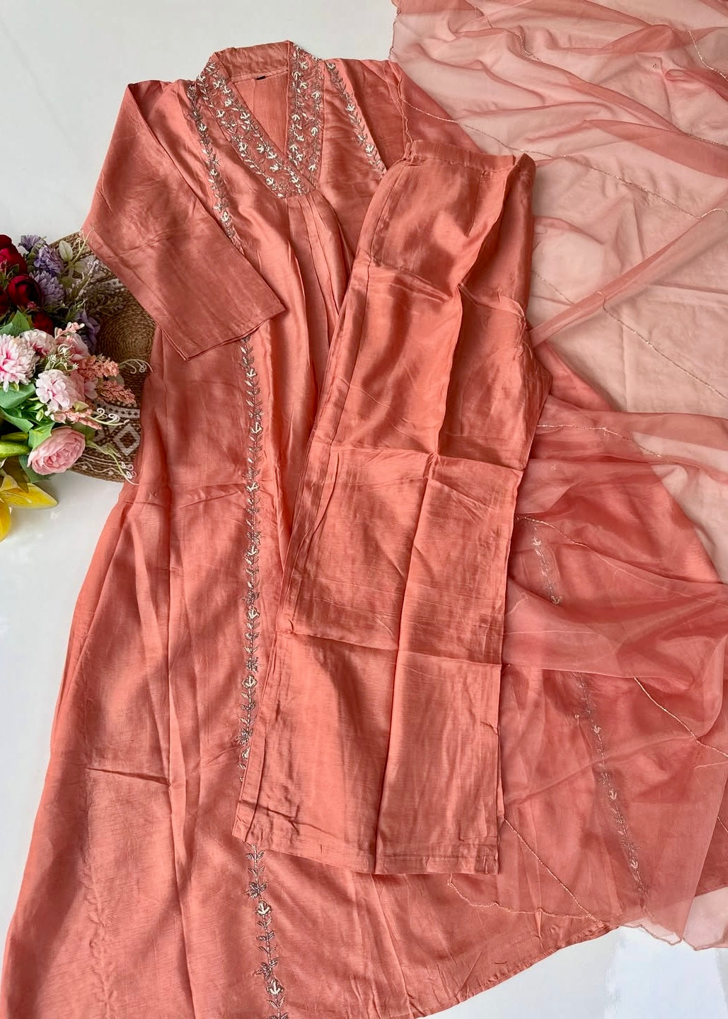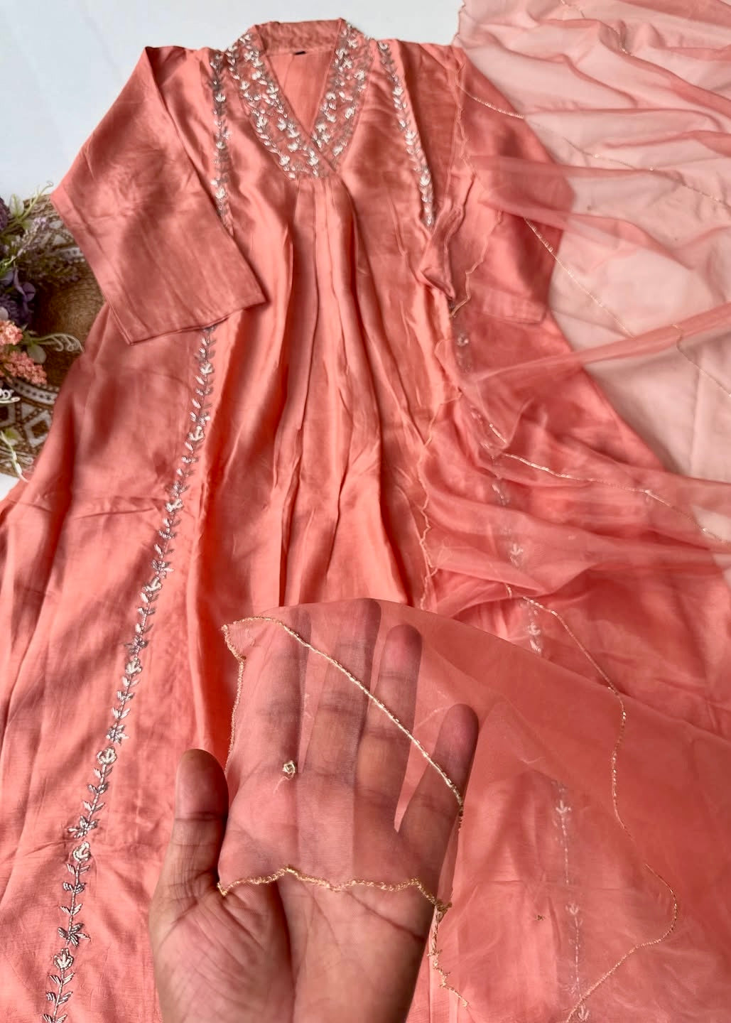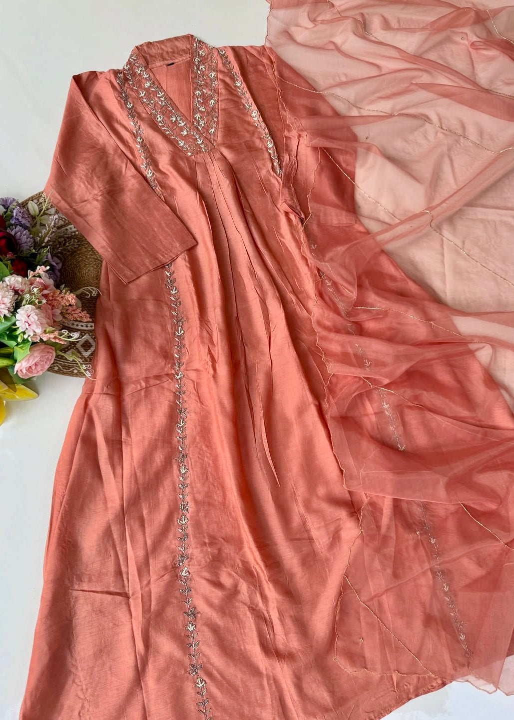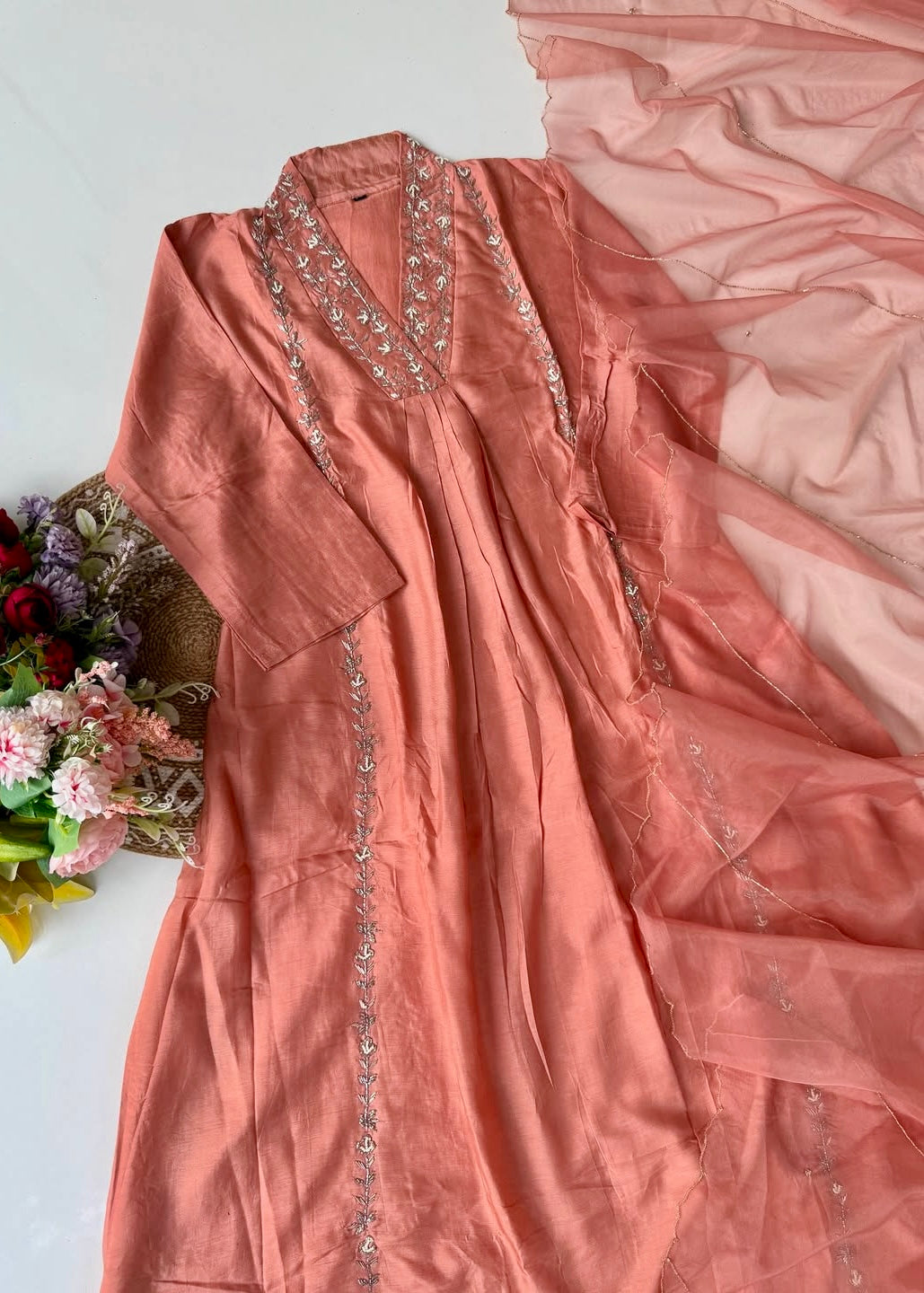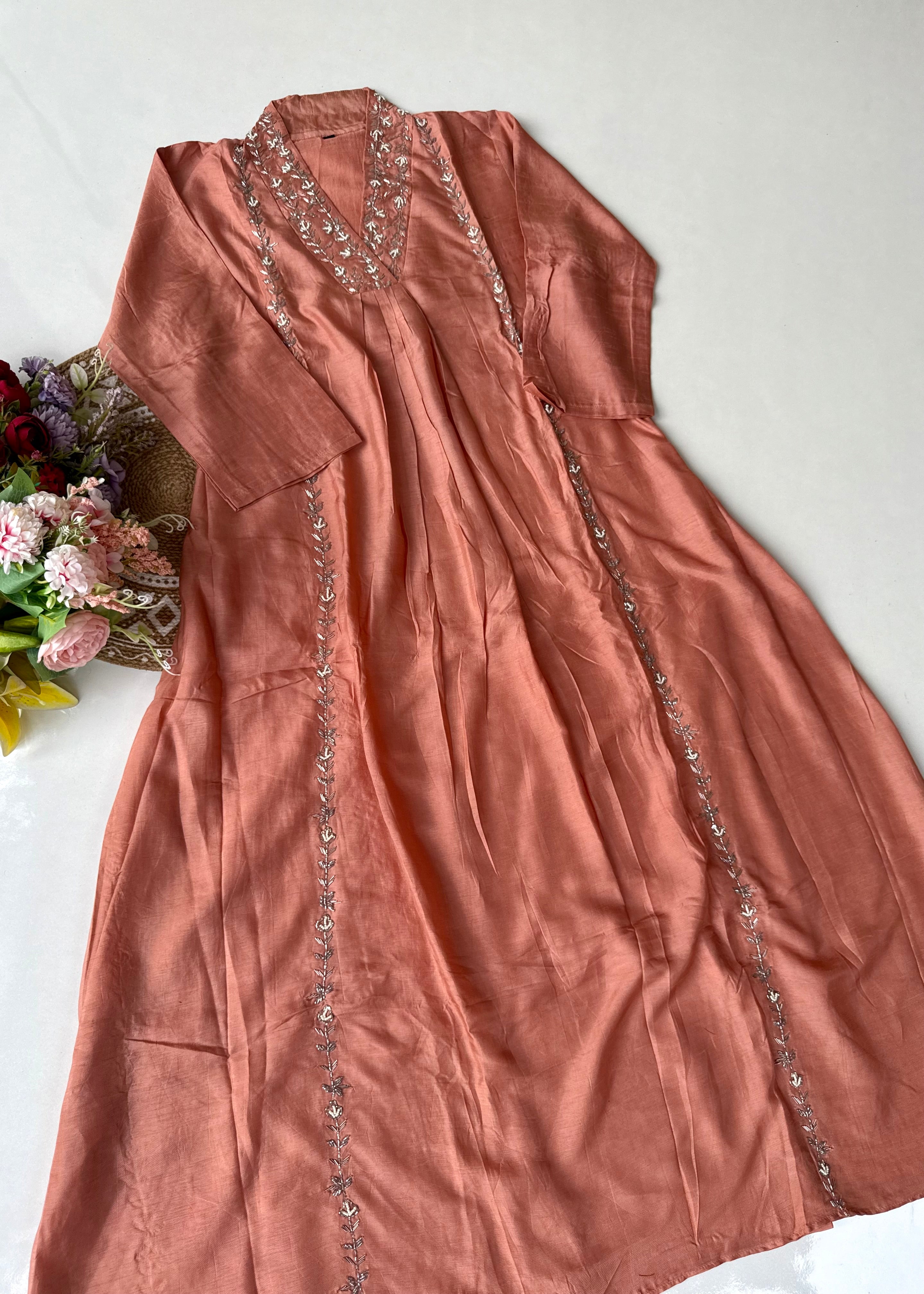 “Eira” Heavy handwork Dola silk A line kurti set 🛍️
