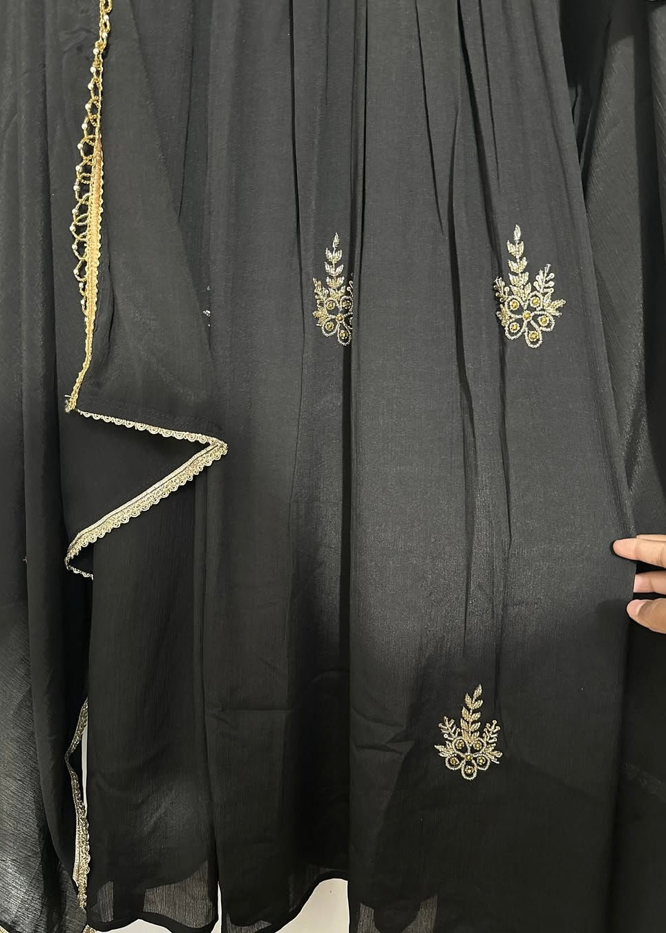 - Dupatta: Chinnon fabric with embroidered border