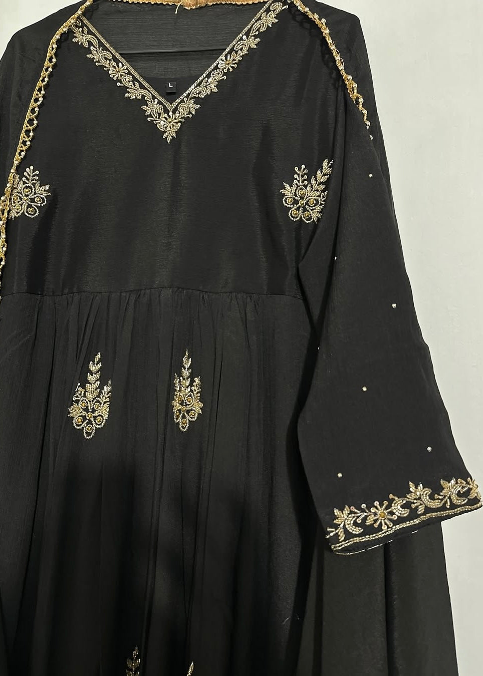- Work: Delicate gold hand embroidery on neckline, sleeves & panels