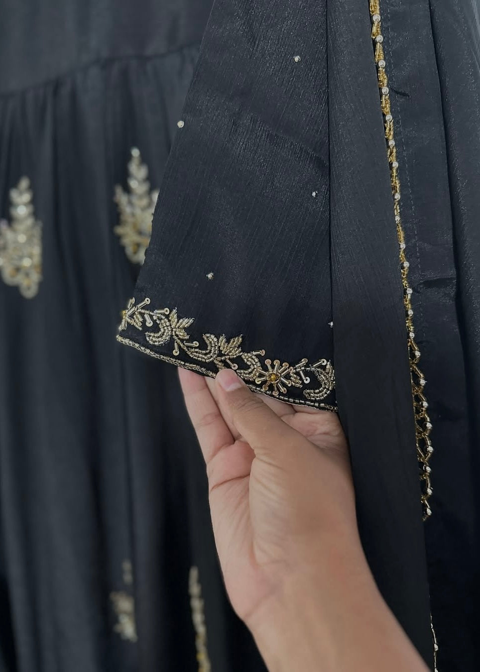 Color: Classic Black with golden hand embroidery