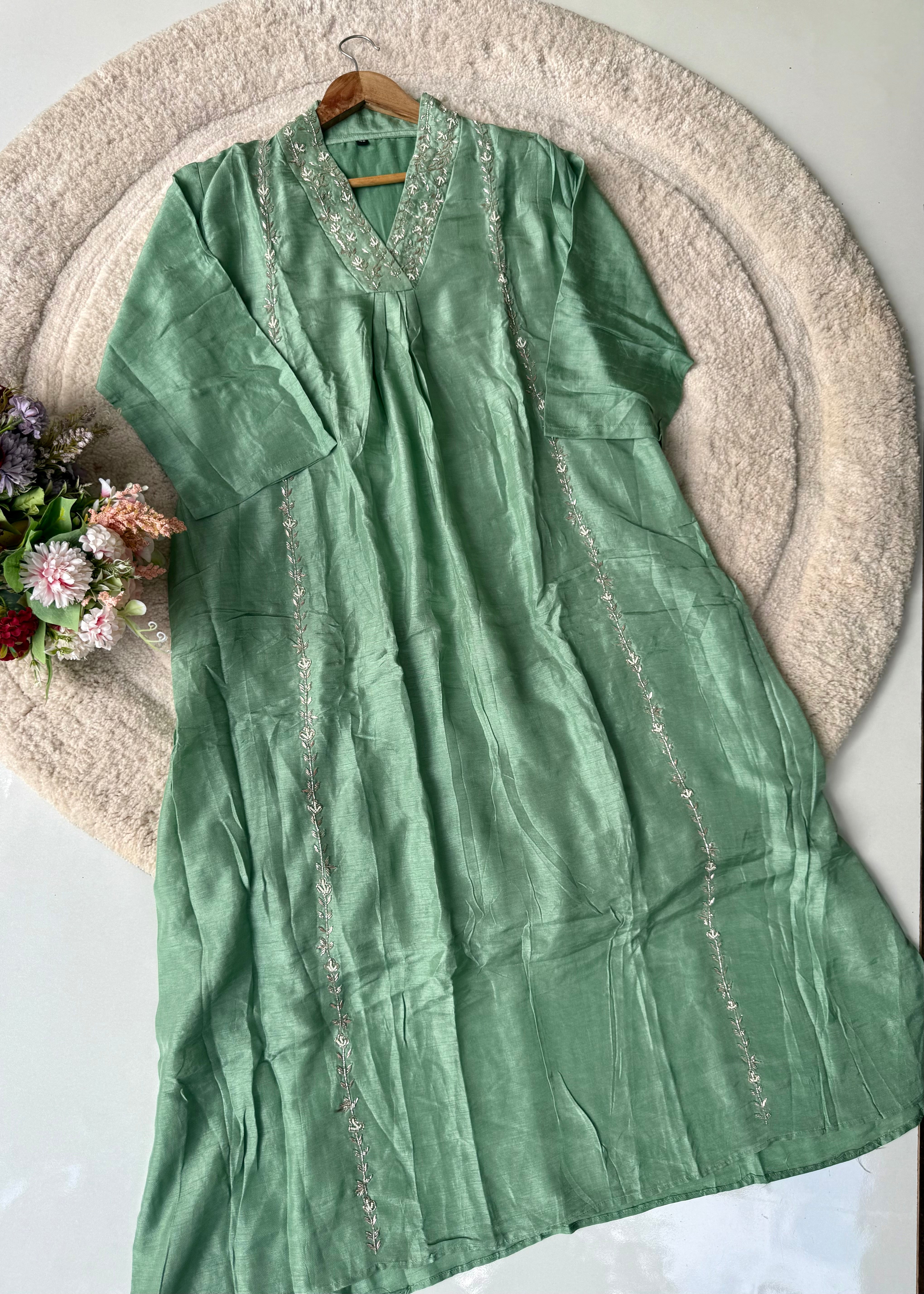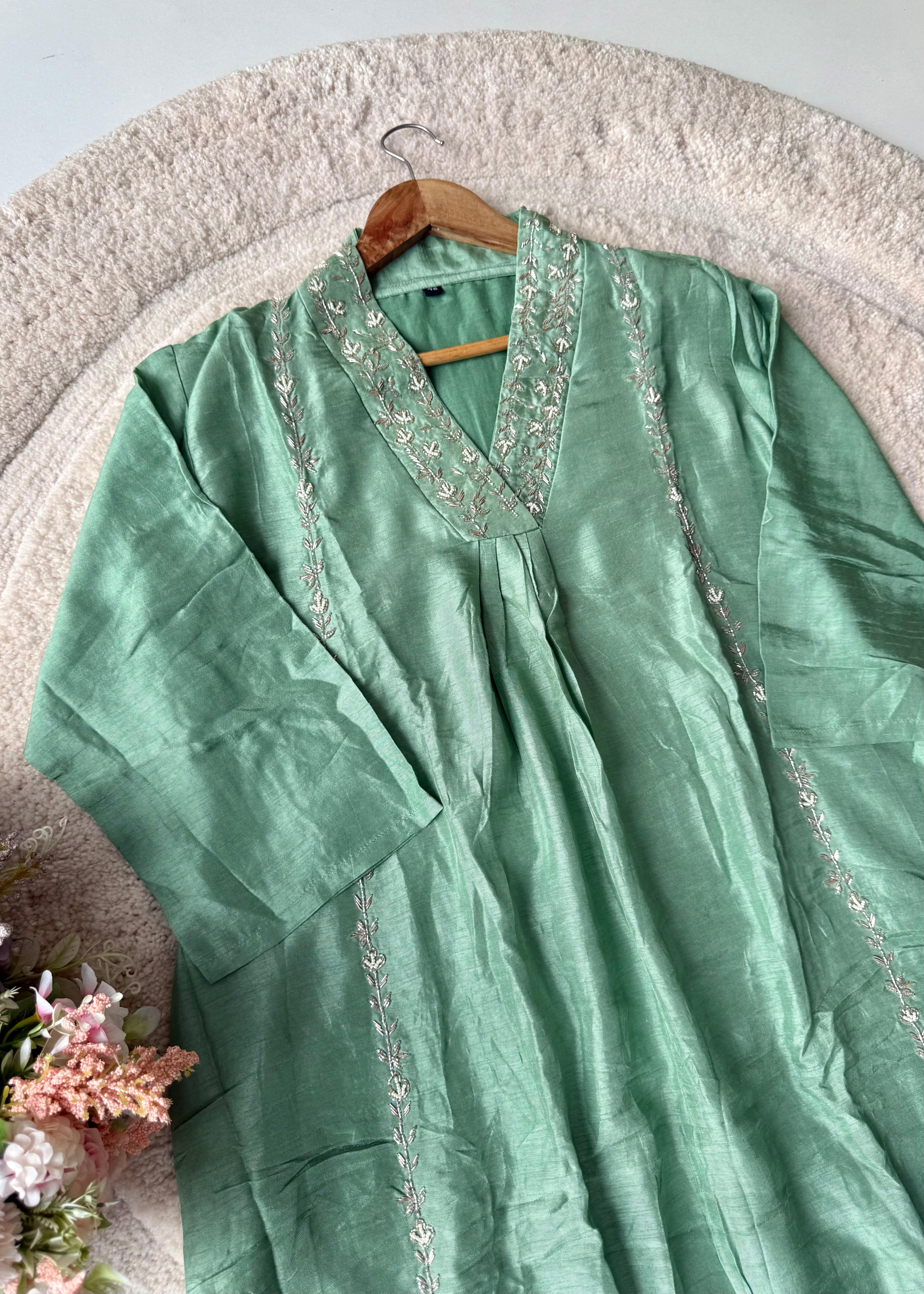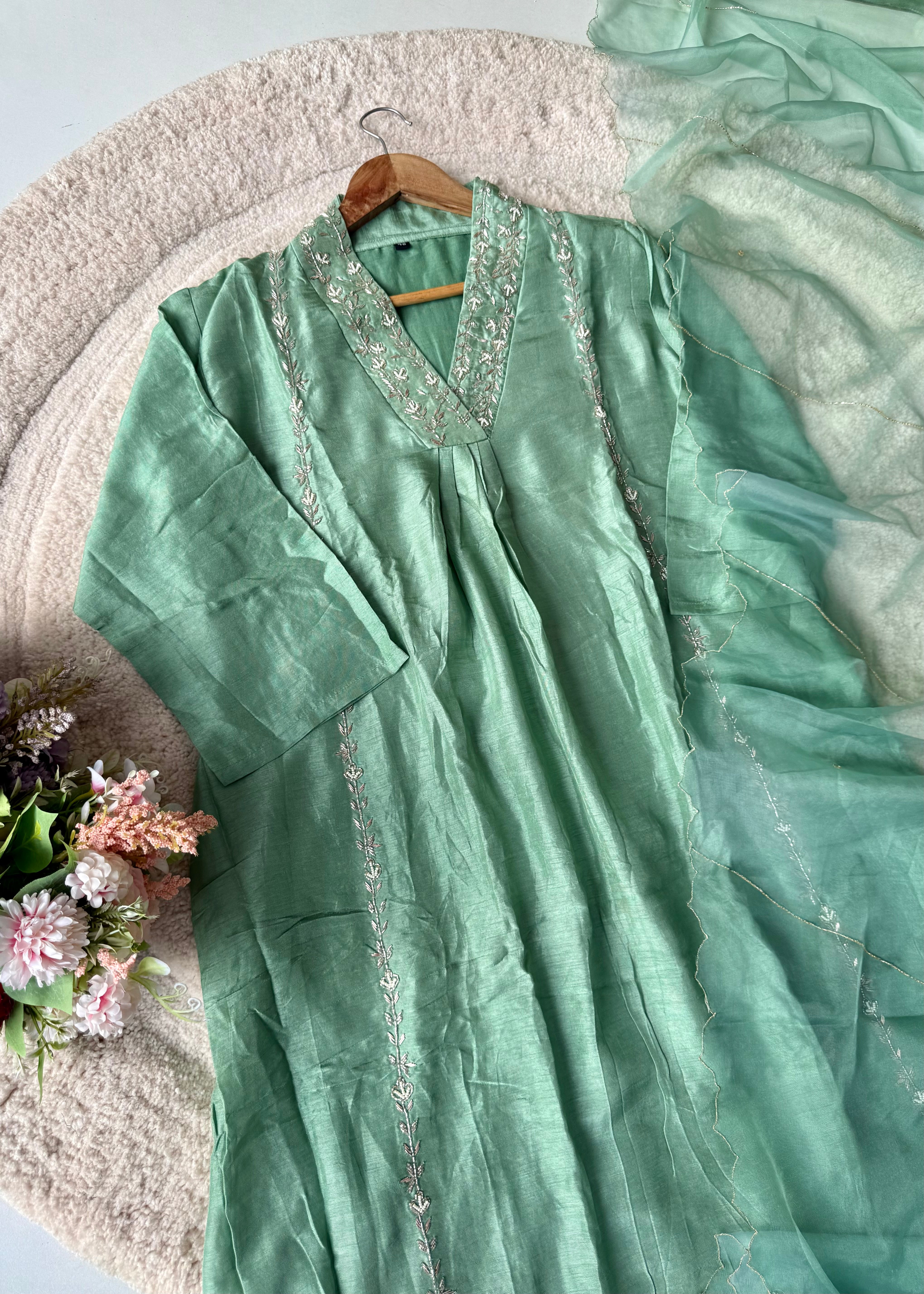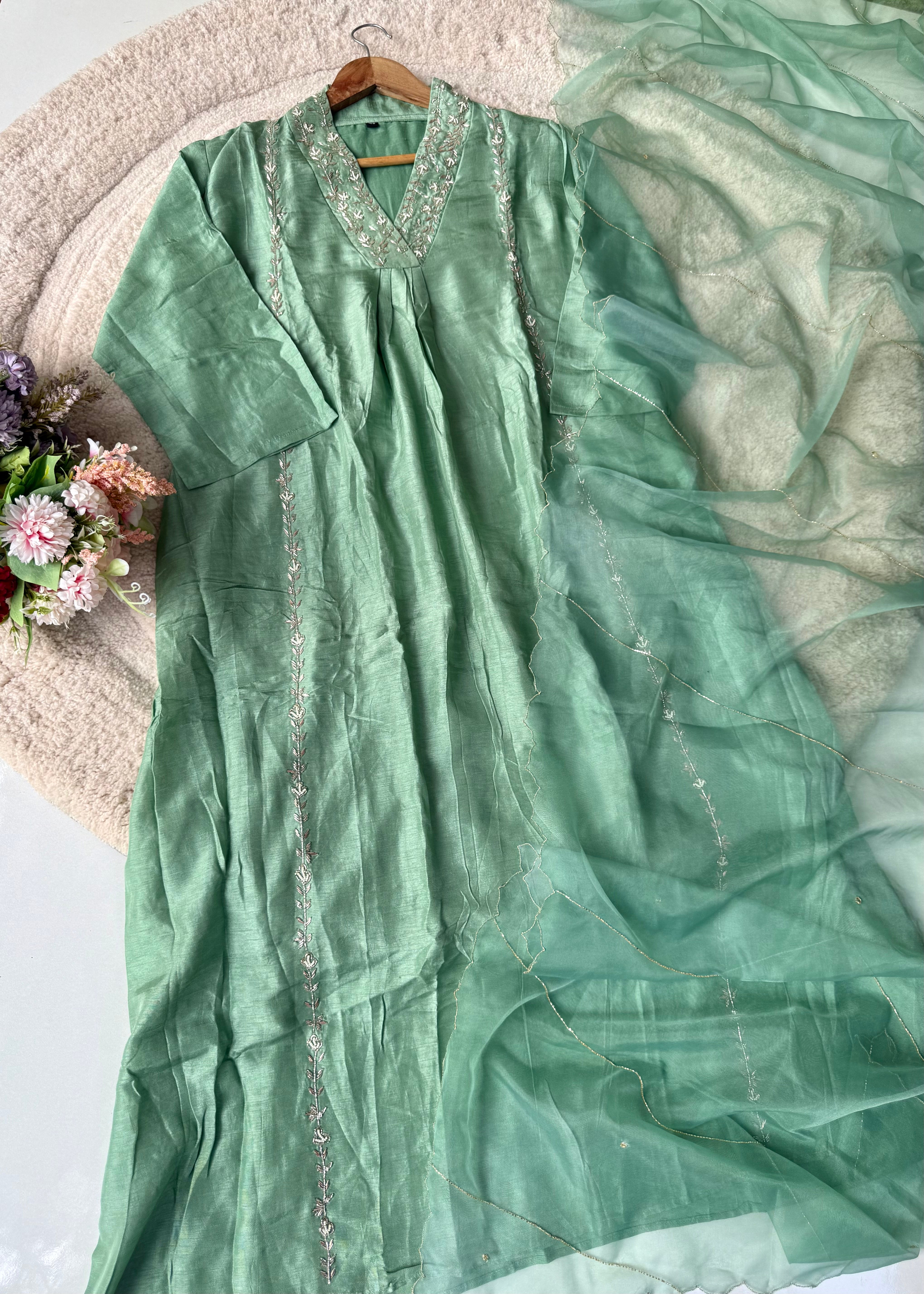 “Eira” Heavy handwork Dola silk A line kurti set 🛍️