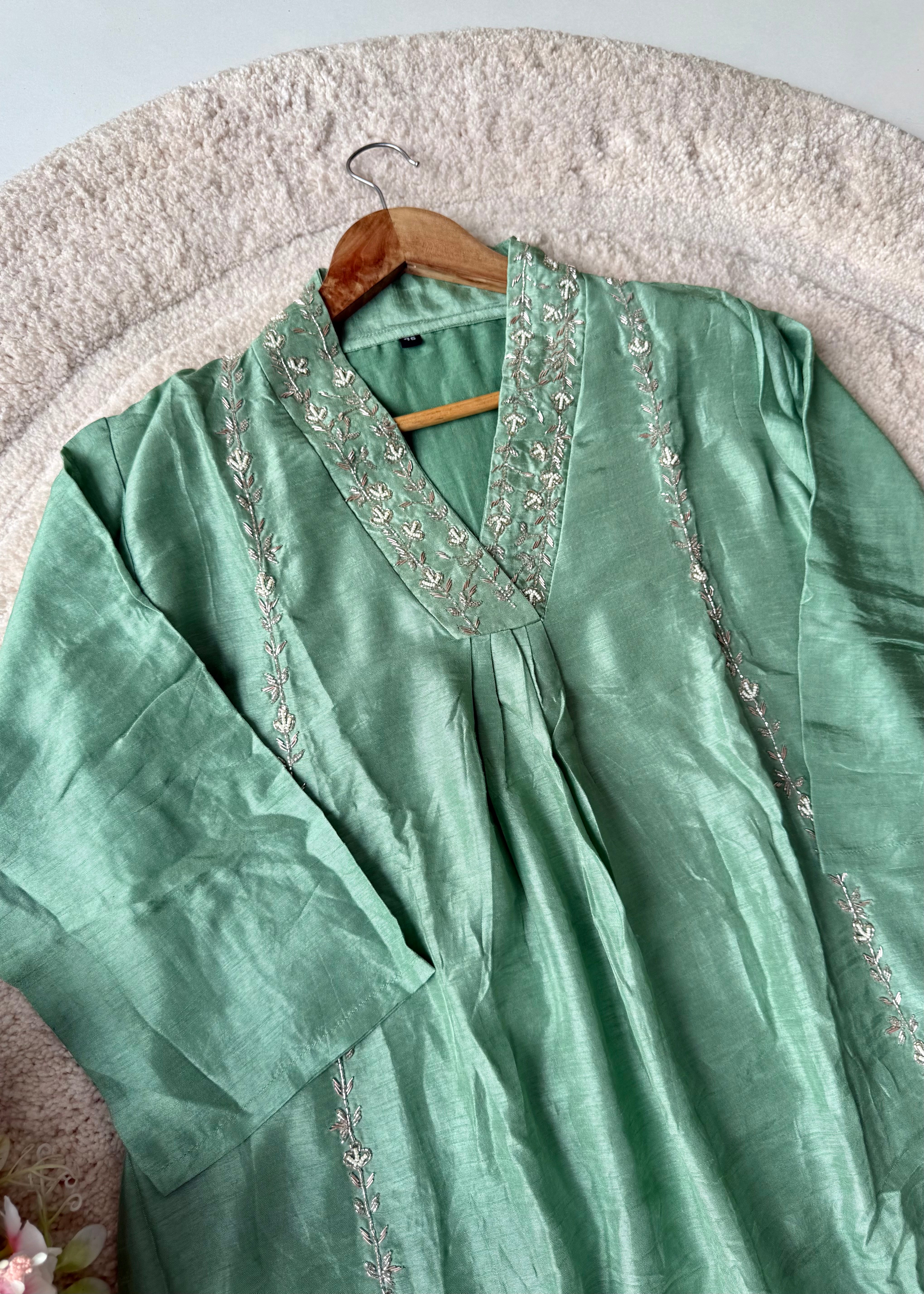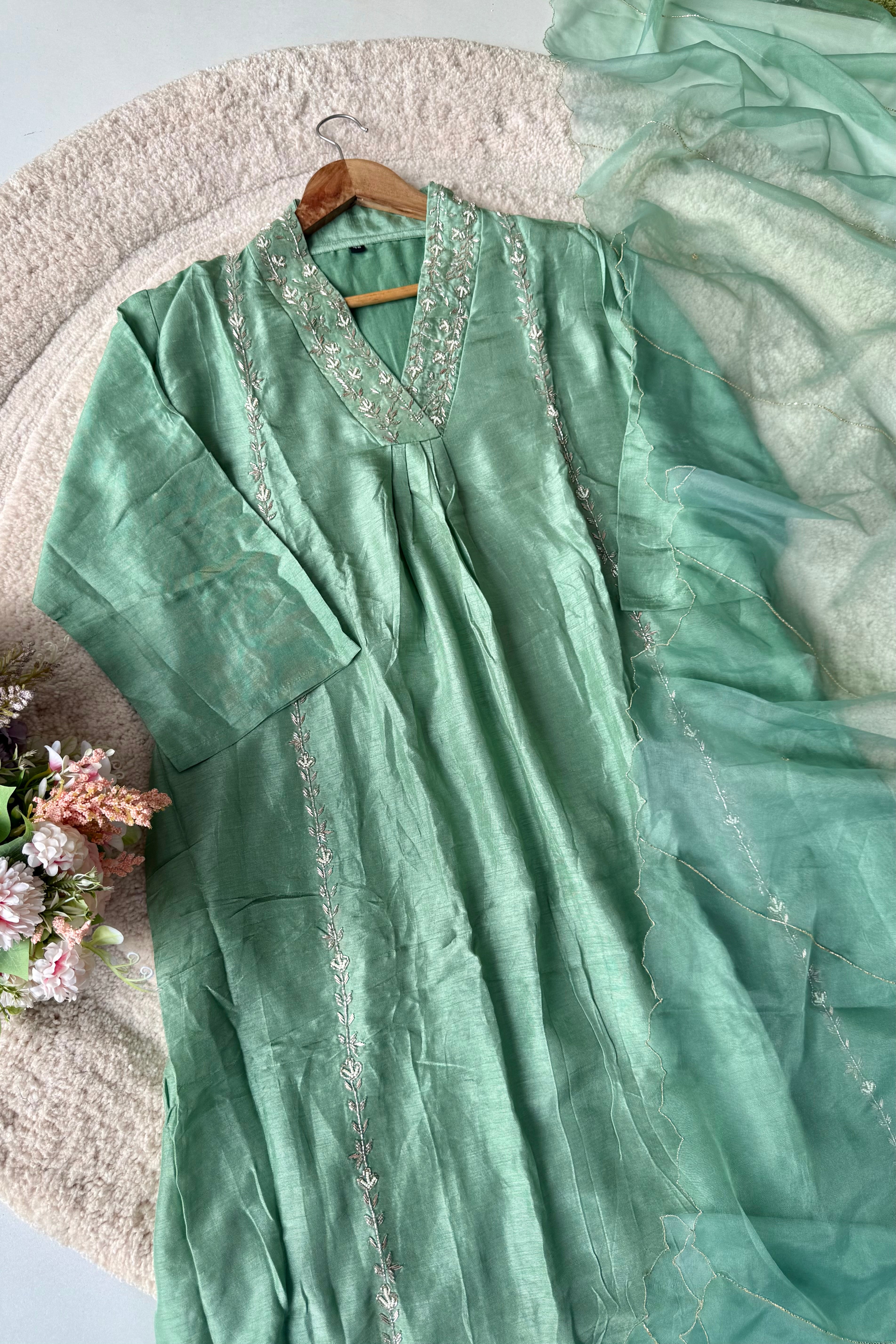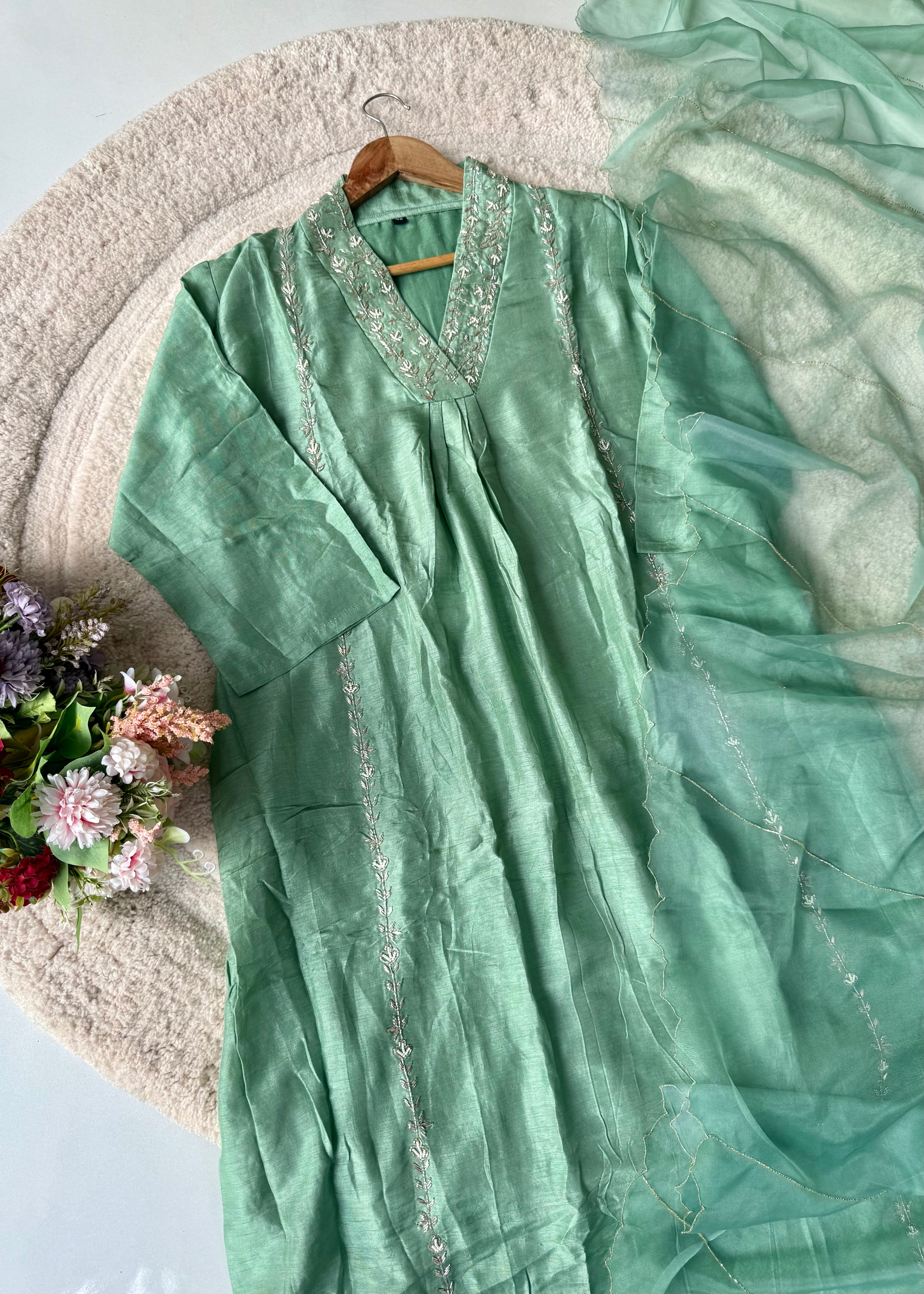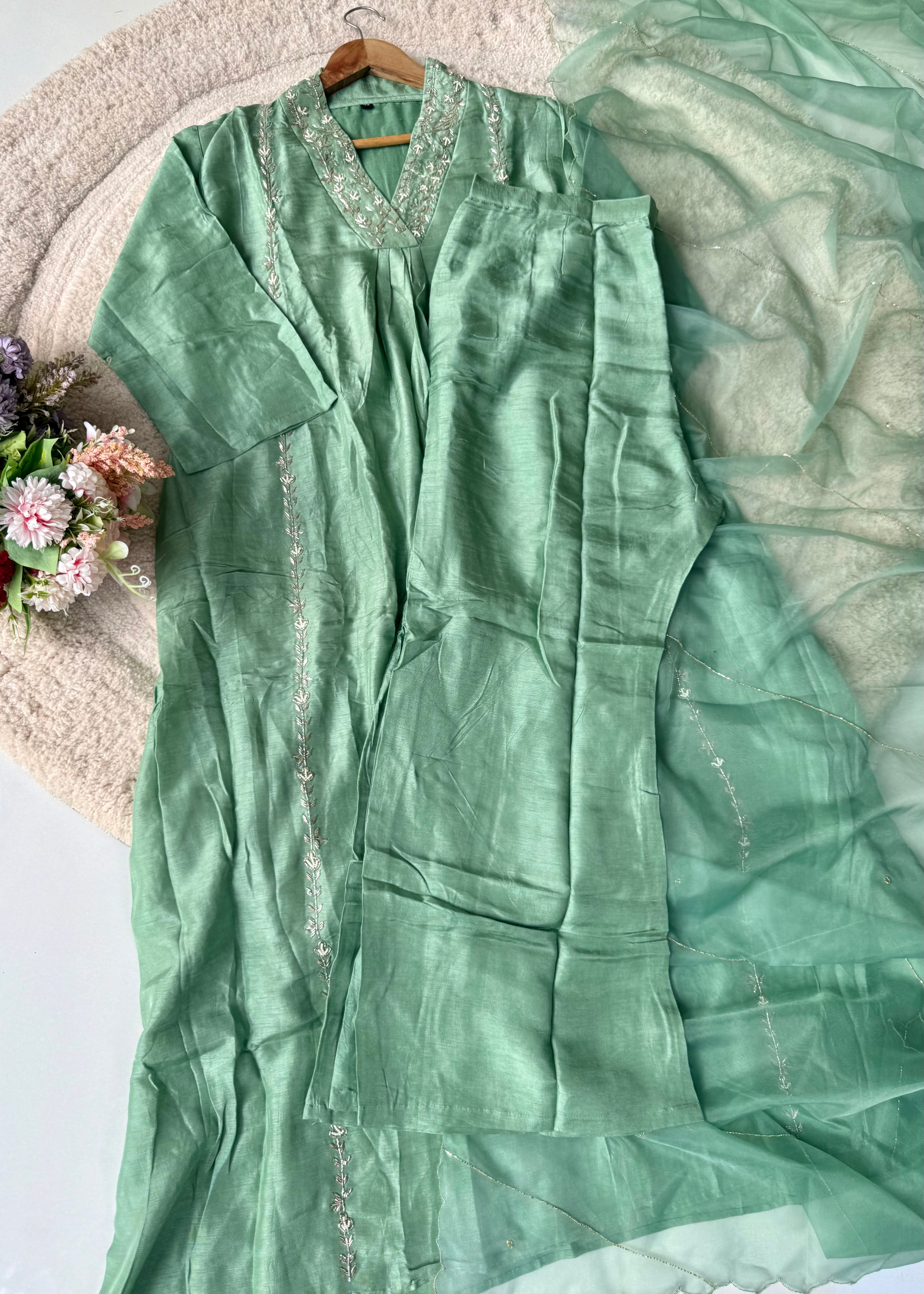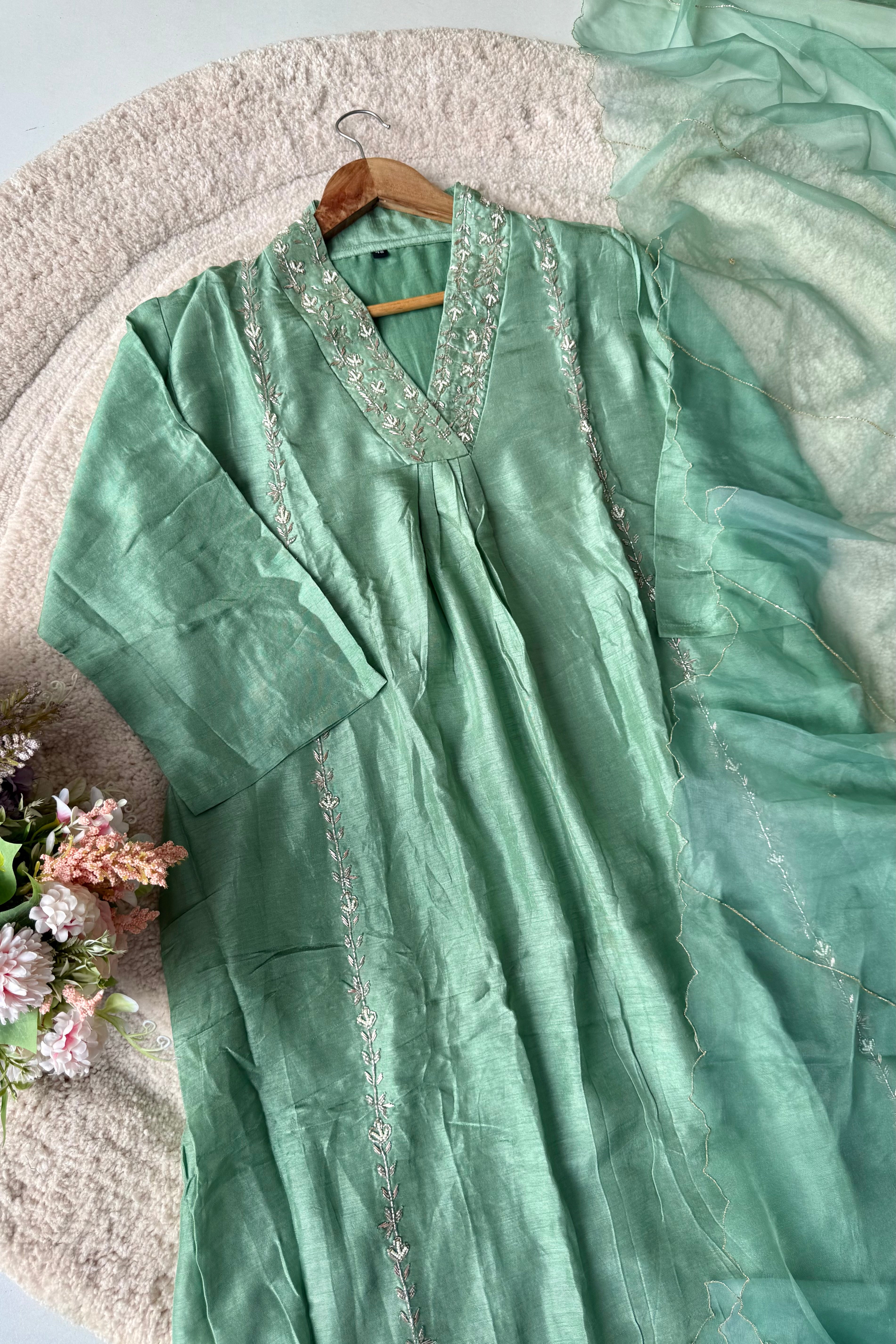 “Eira” Heavy handwork Dola silk A line kurti set 🛍️