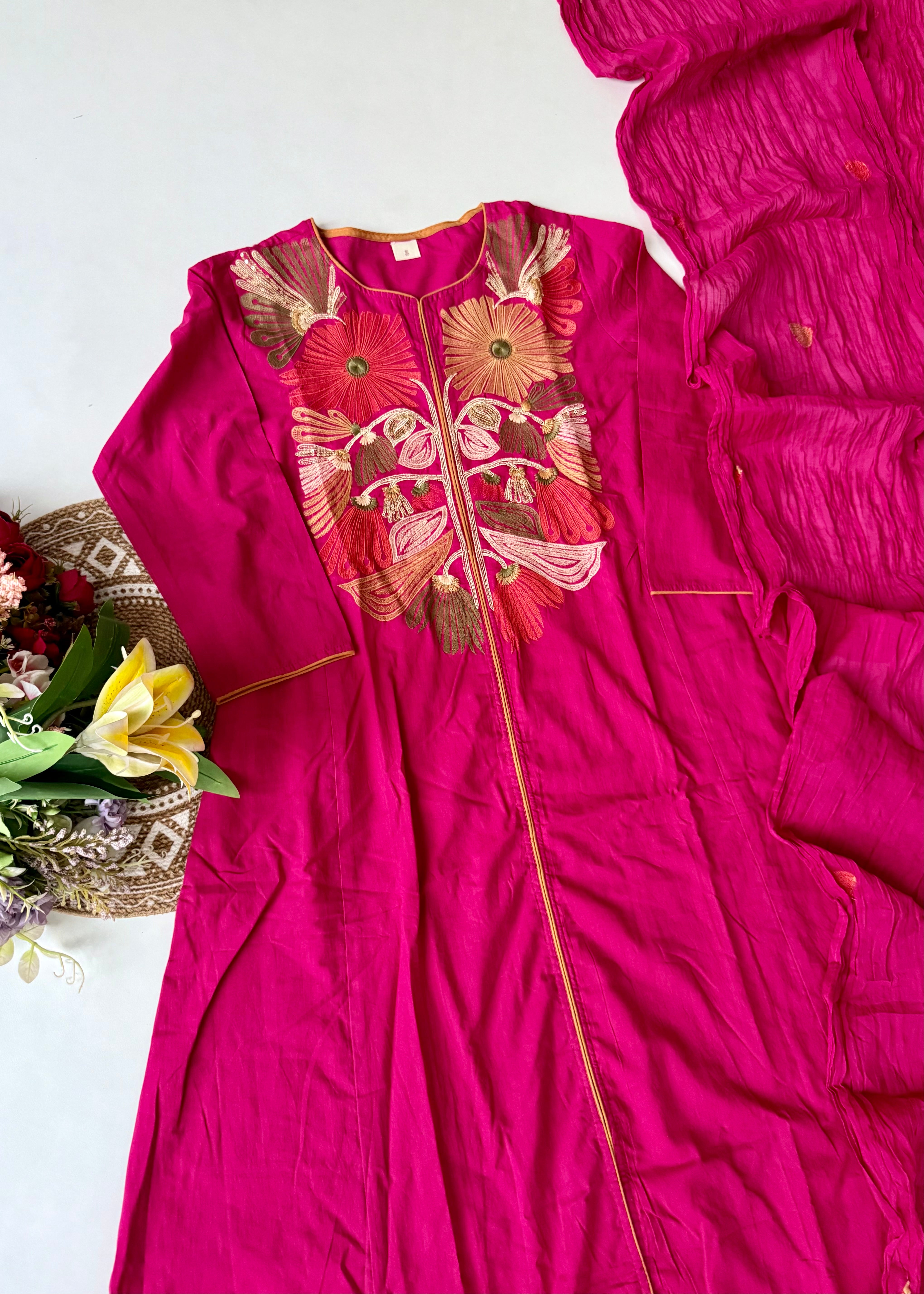 “Elegant” Embroidered Mul Cotton Kurta Set