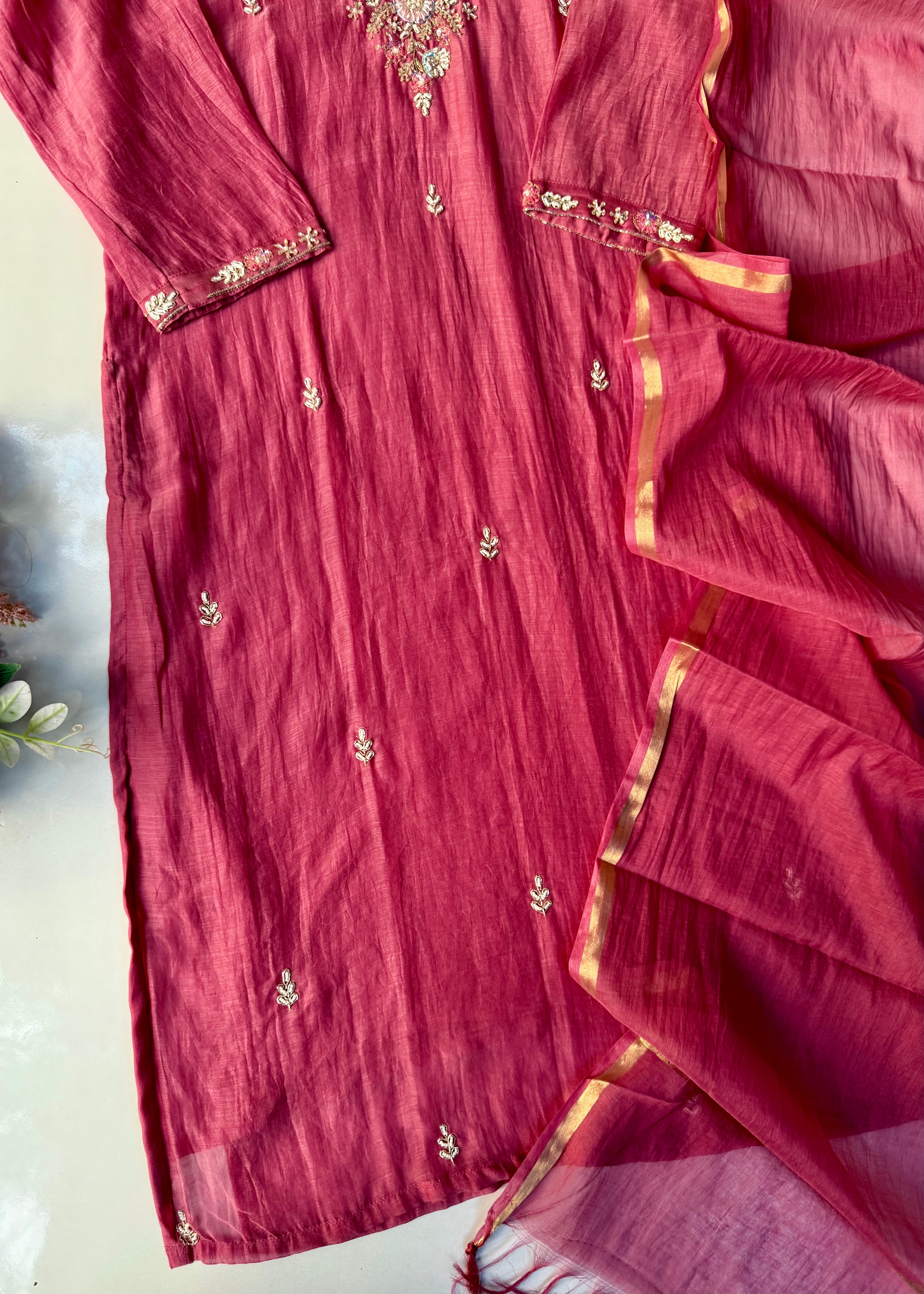 “Rania” Trending Ethnic Wear Deep Rose Pink Mul Chanderi Kurta Set