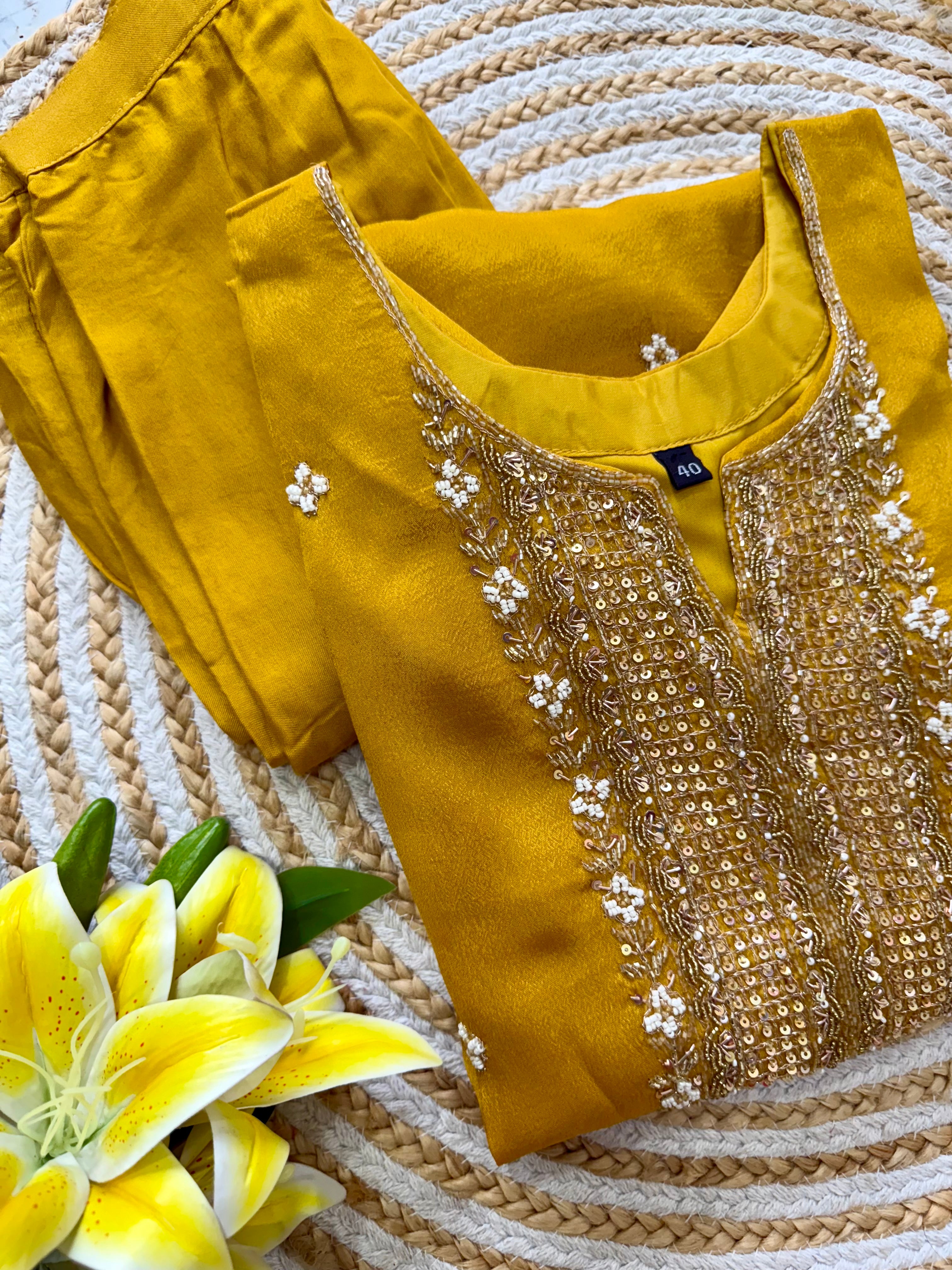 "Furqat" Chinnon silk handcrafted kurti set 🛍️