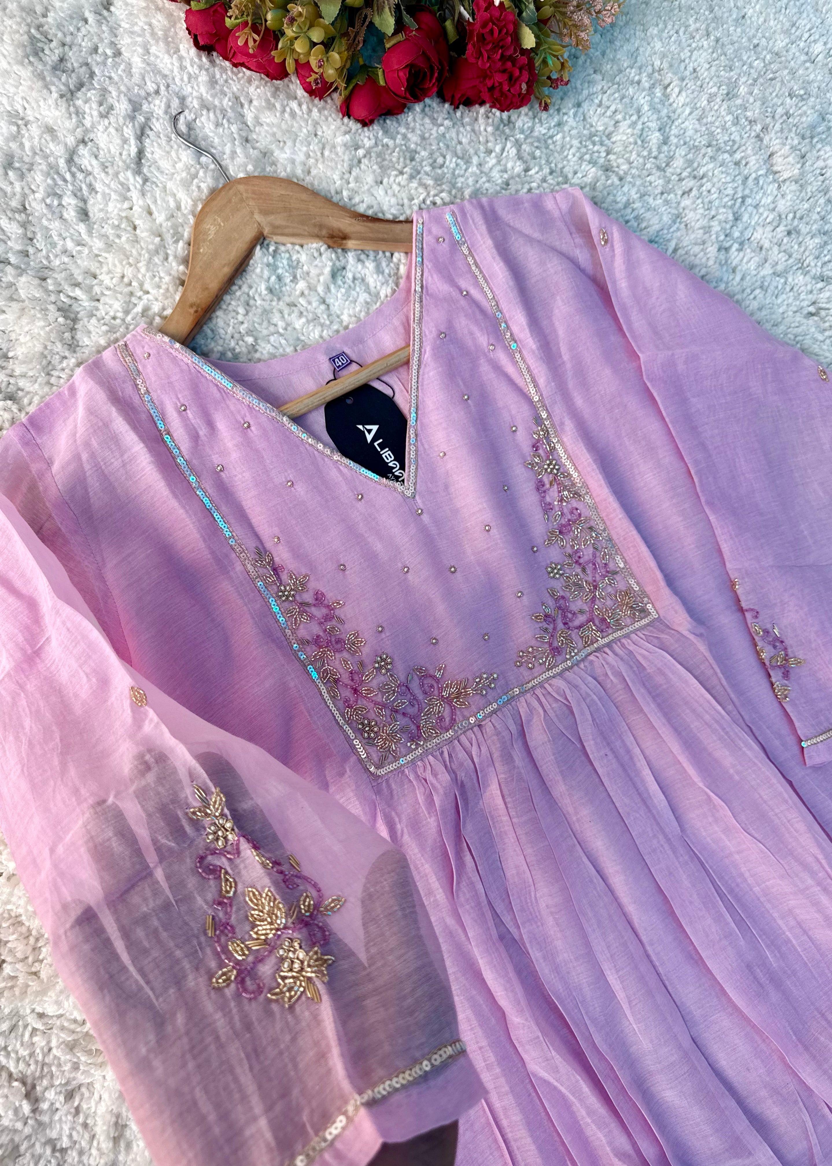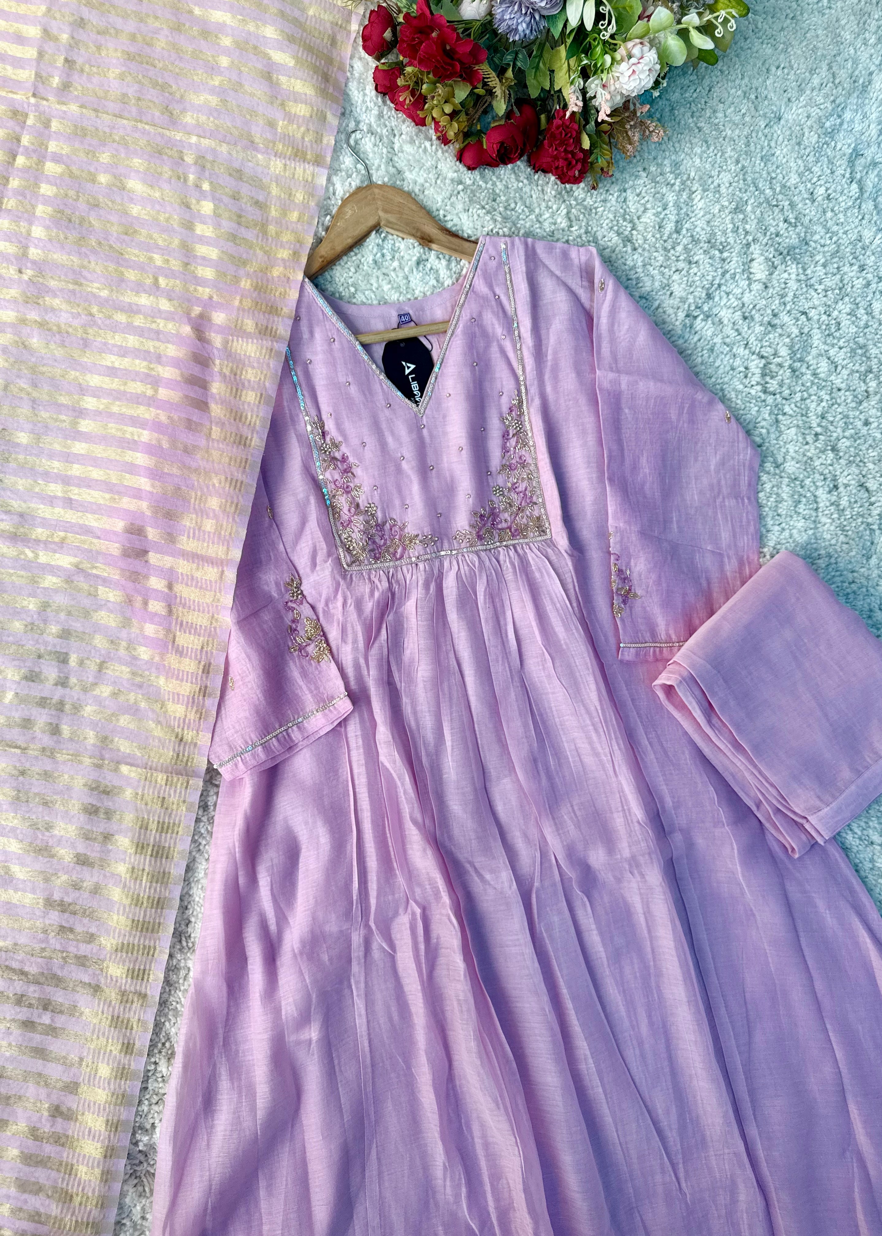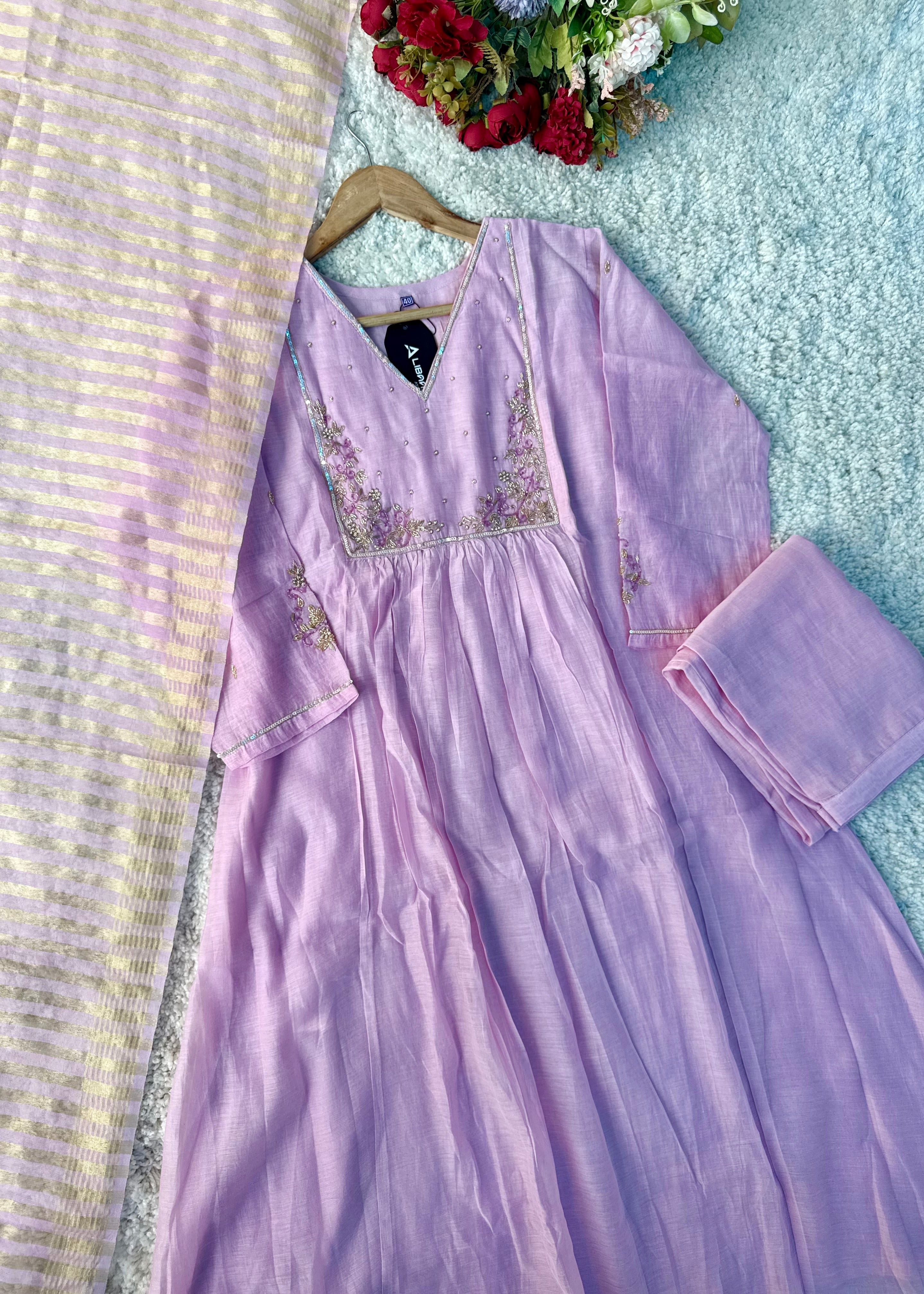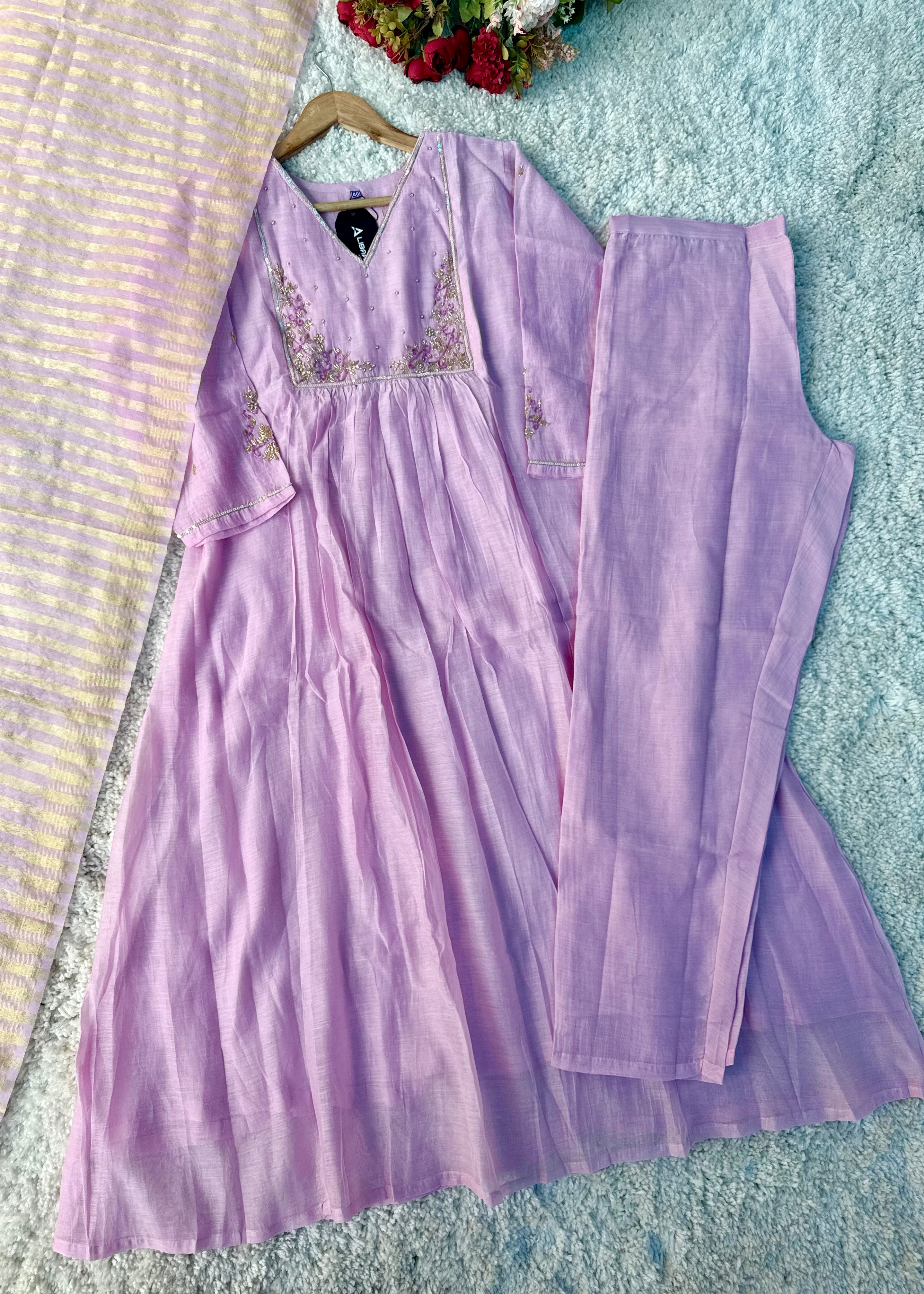 Step into effortless elegance with our Mul Chanderi A-Line Kurta Set, designed specially for festive celebrations, wedding functions & Eid gatherings. Lightweight, graceful and beautifully detailed — this outfit is the perfect blend of tradition & modern charm.