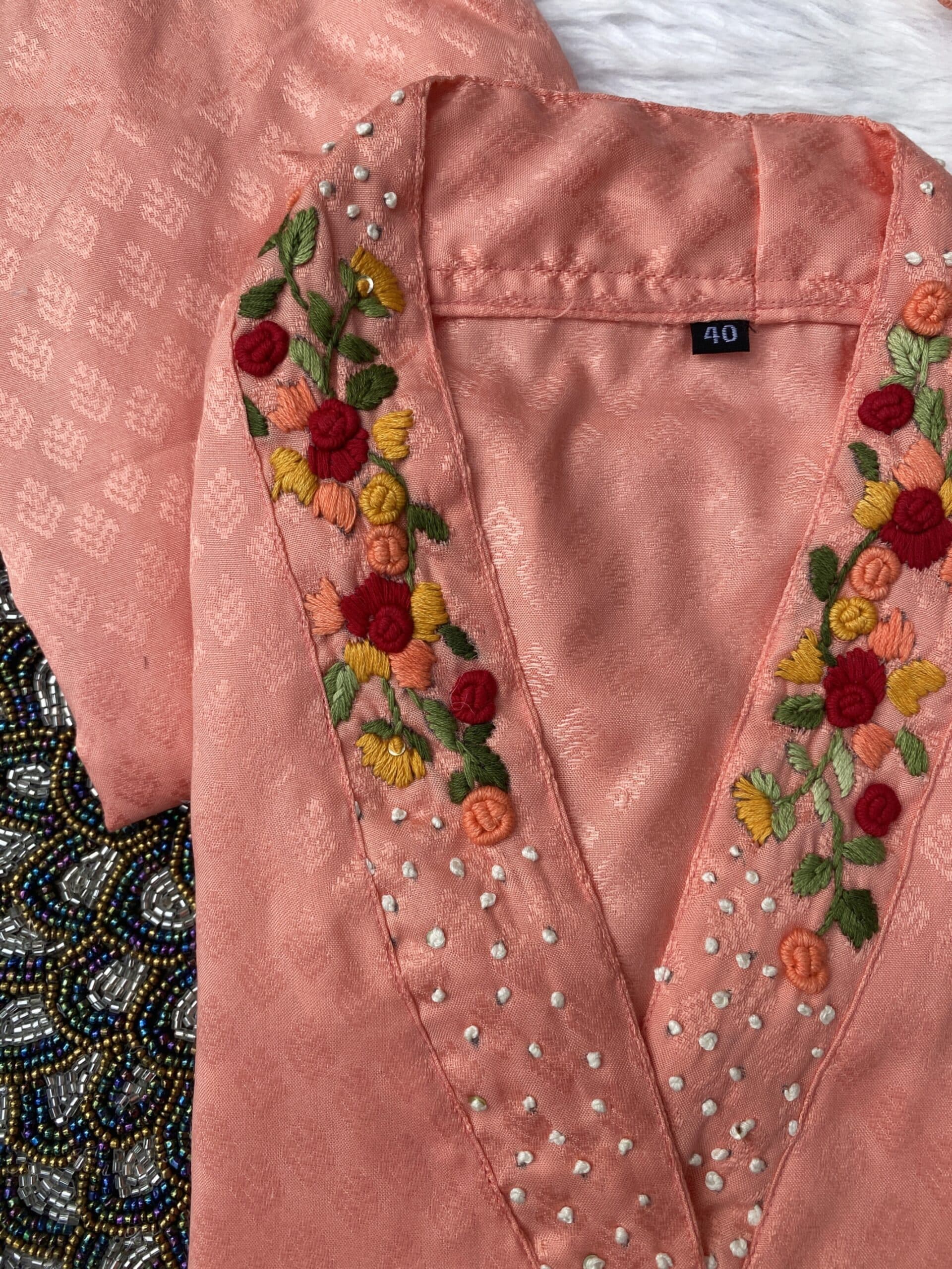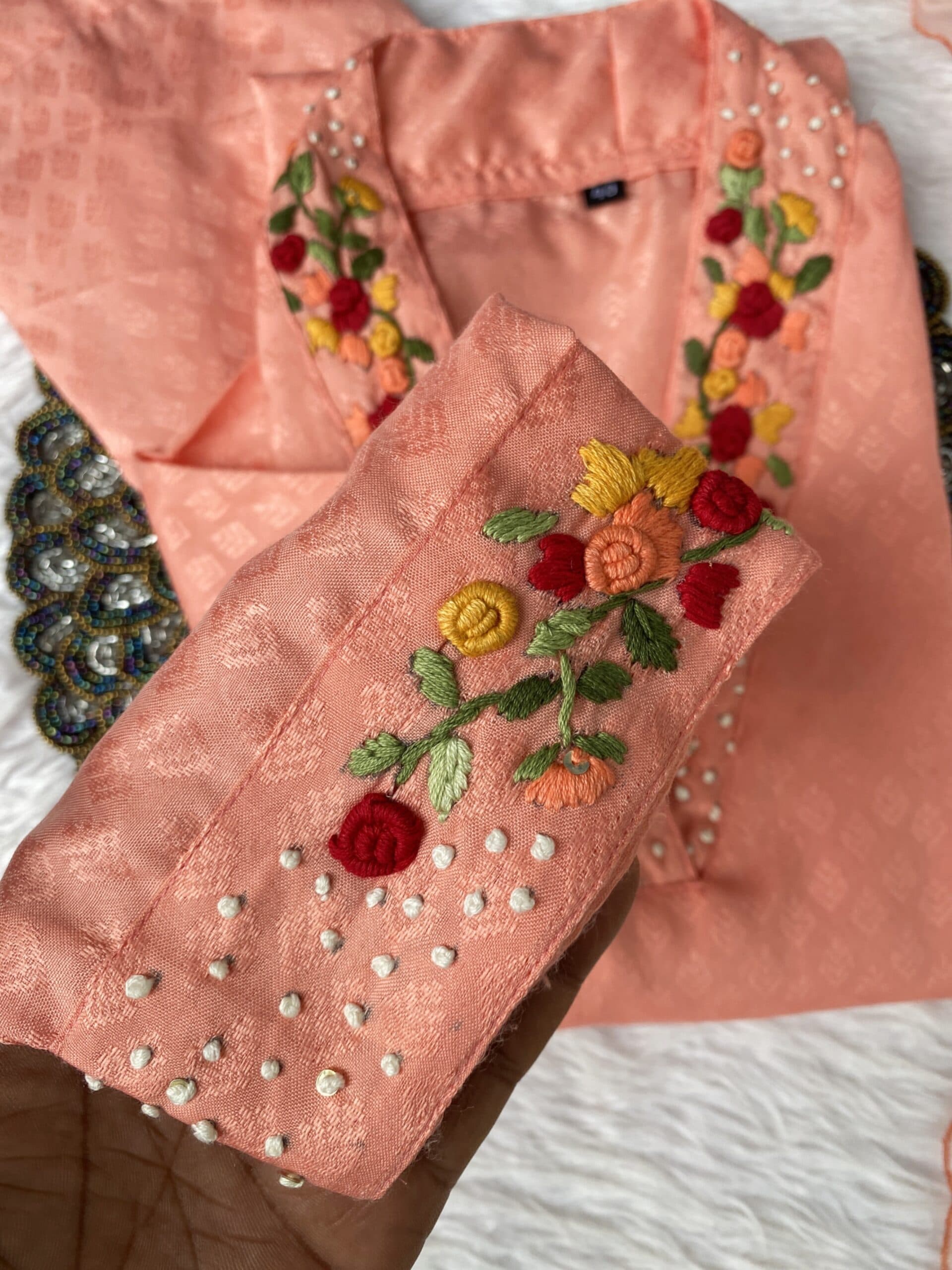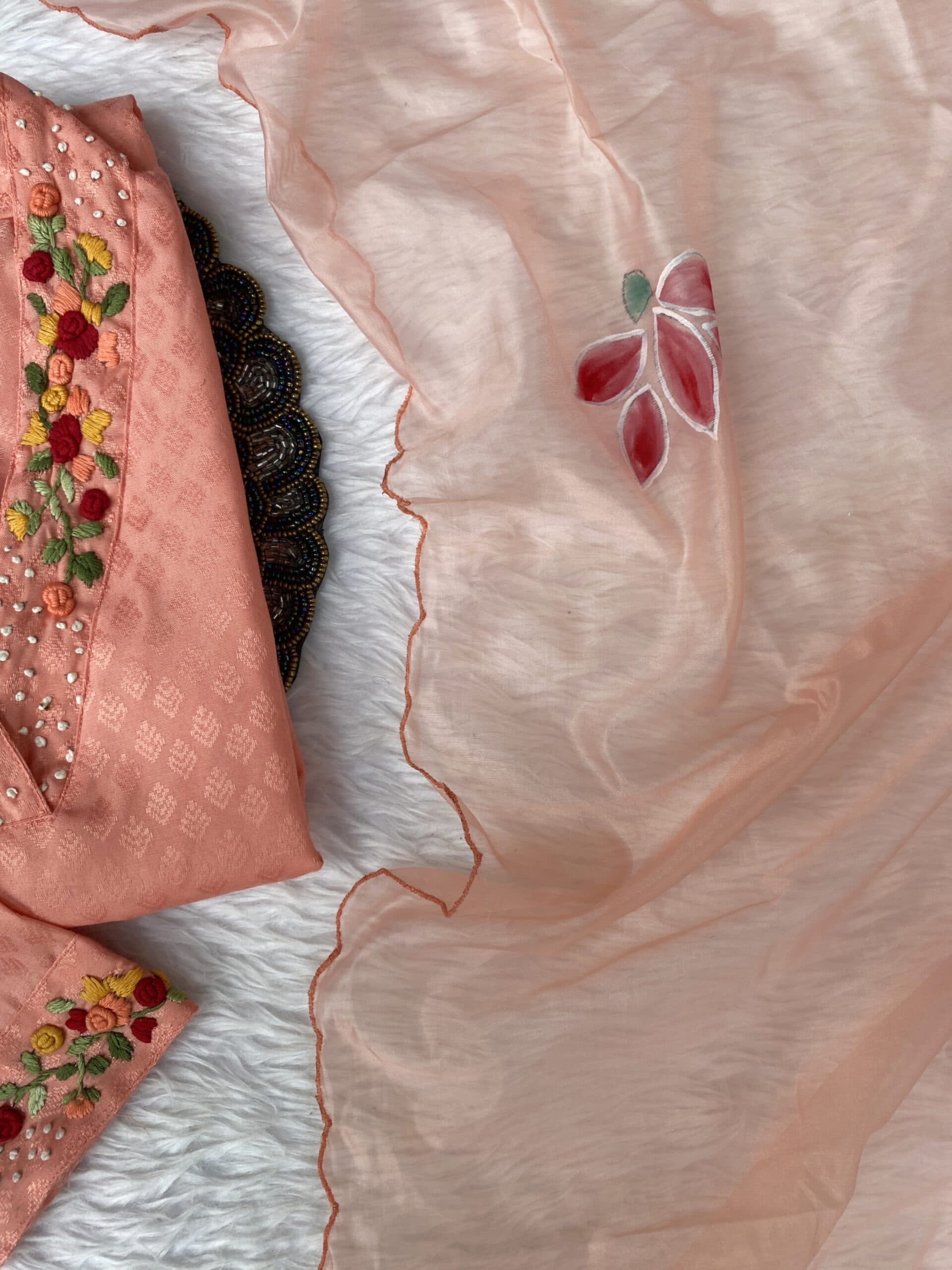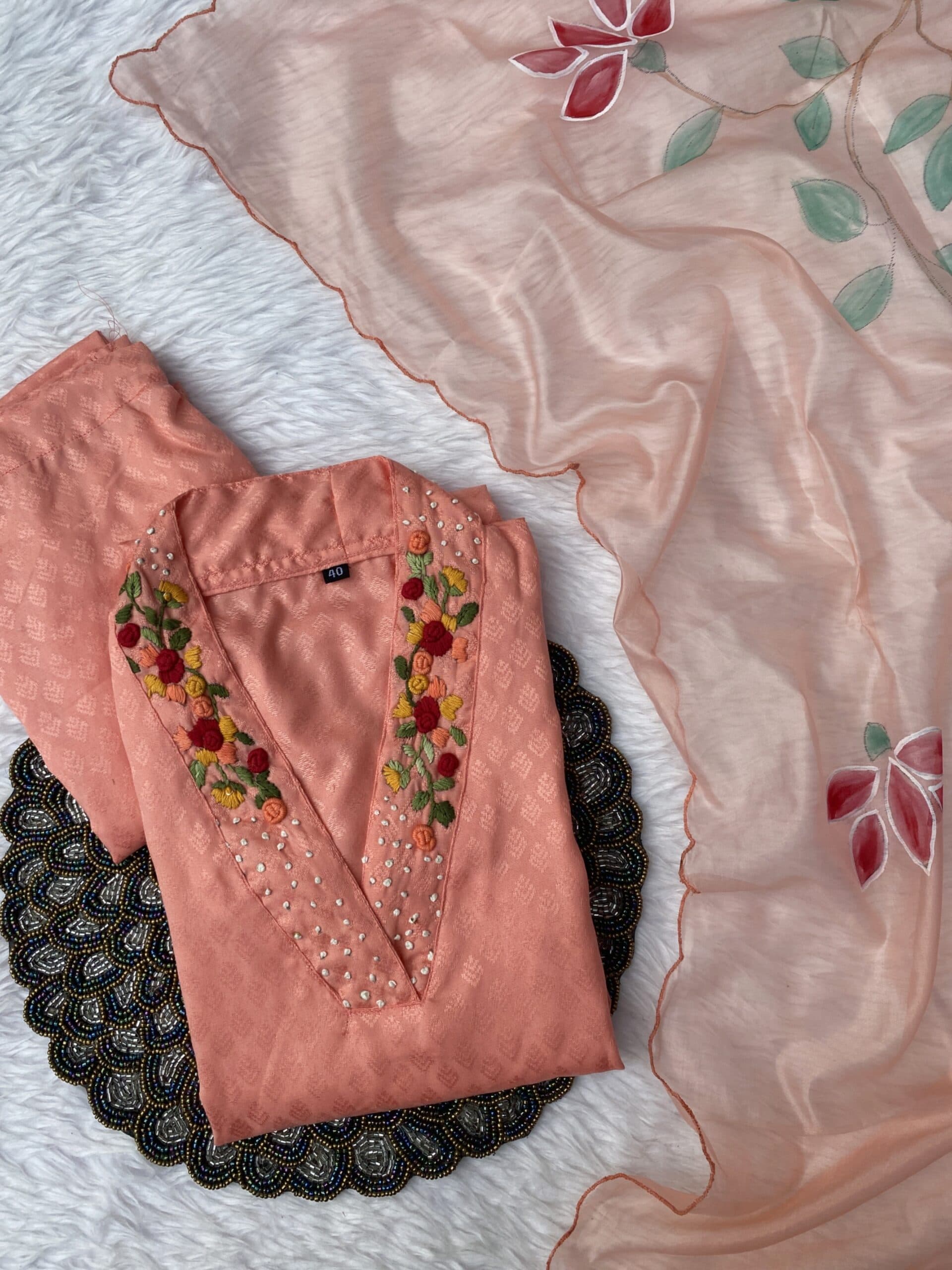 ‘’GULSHAN” Orange cotton handwork kurti dupatta bottom set