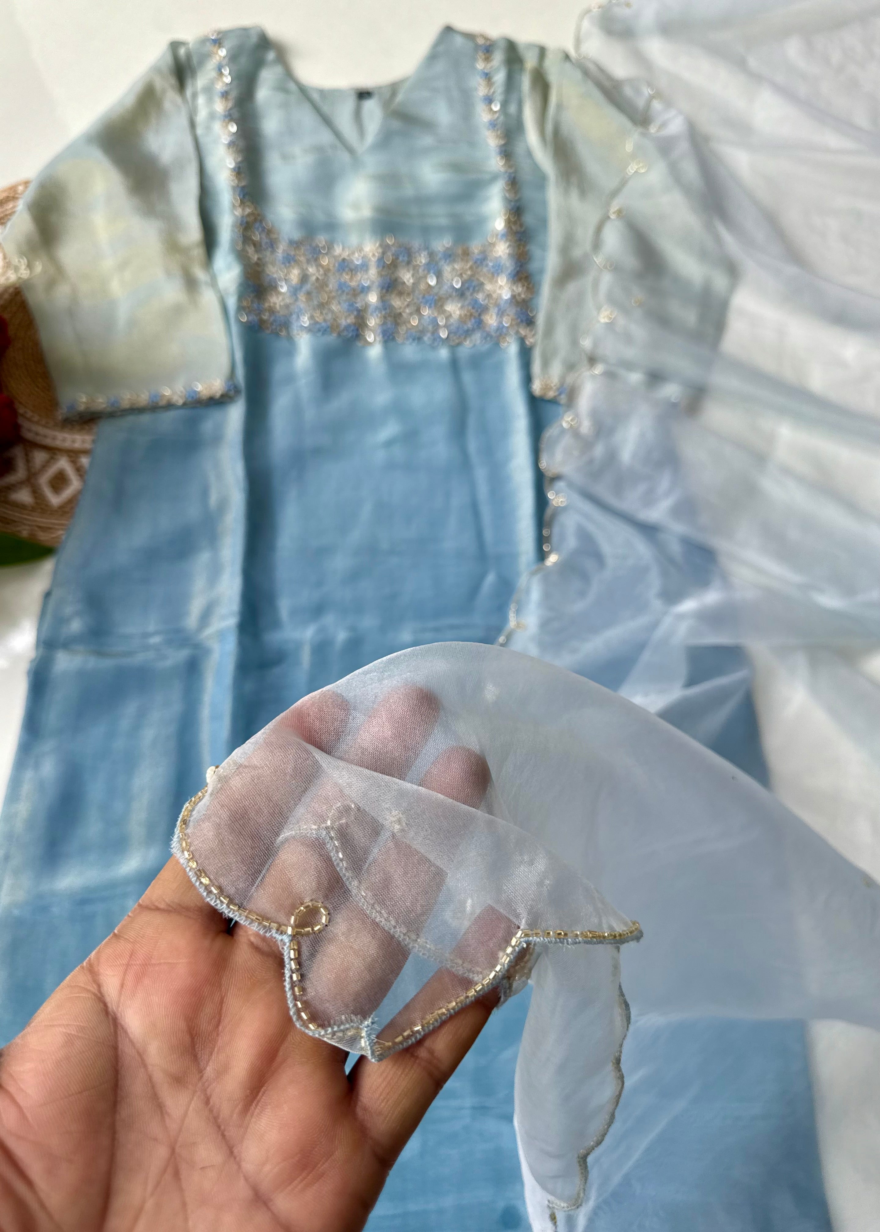 “Hansika” Ombre Tissue silk handcrafted kurti bottom dupatta set 🛍️