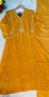 “HAYA” Premium Yellow Mul Chanderi A-Line Kurta with Bottom & Dupatta - XS
