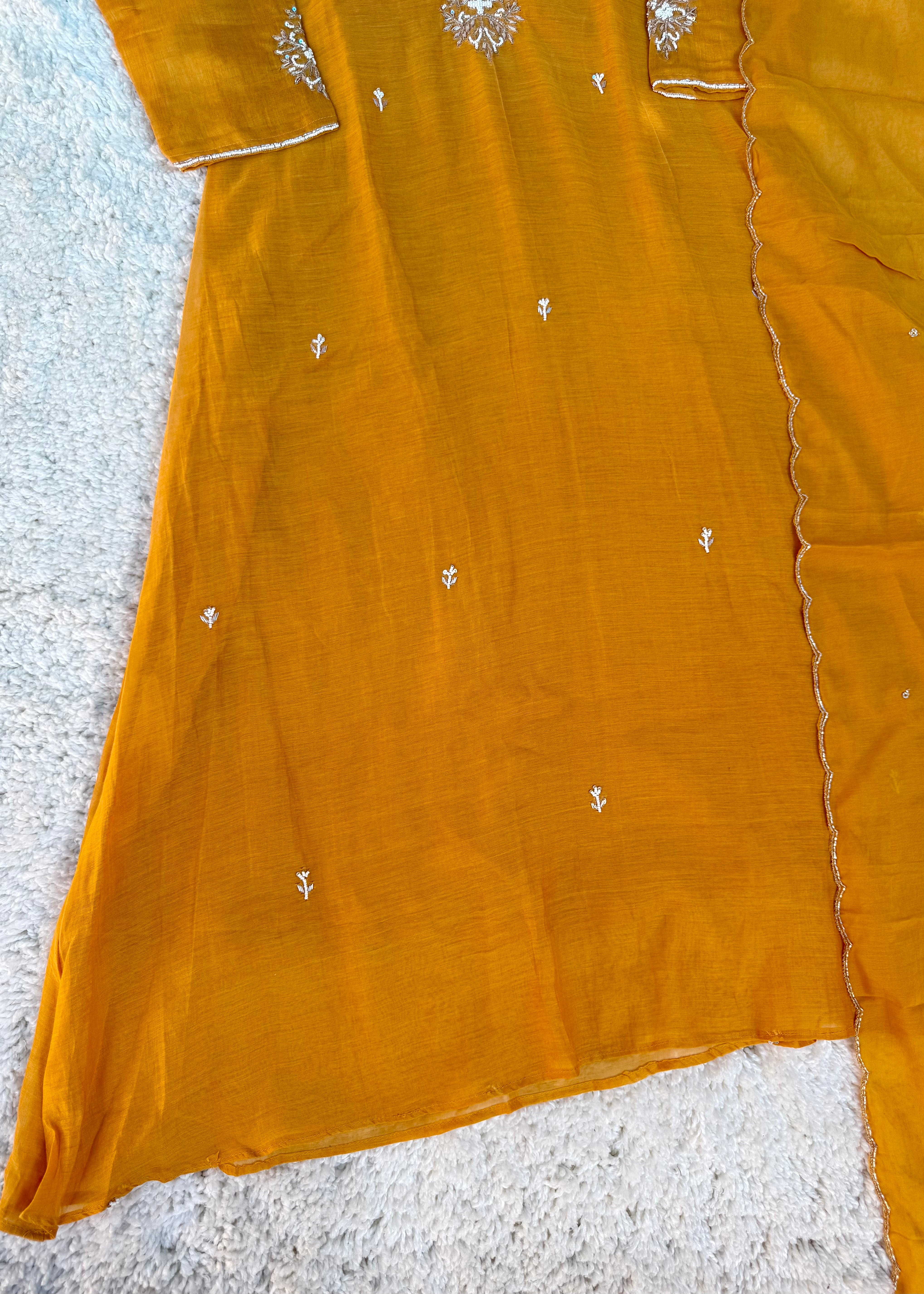 - Fabric (Dupatta): Mul Chanderi