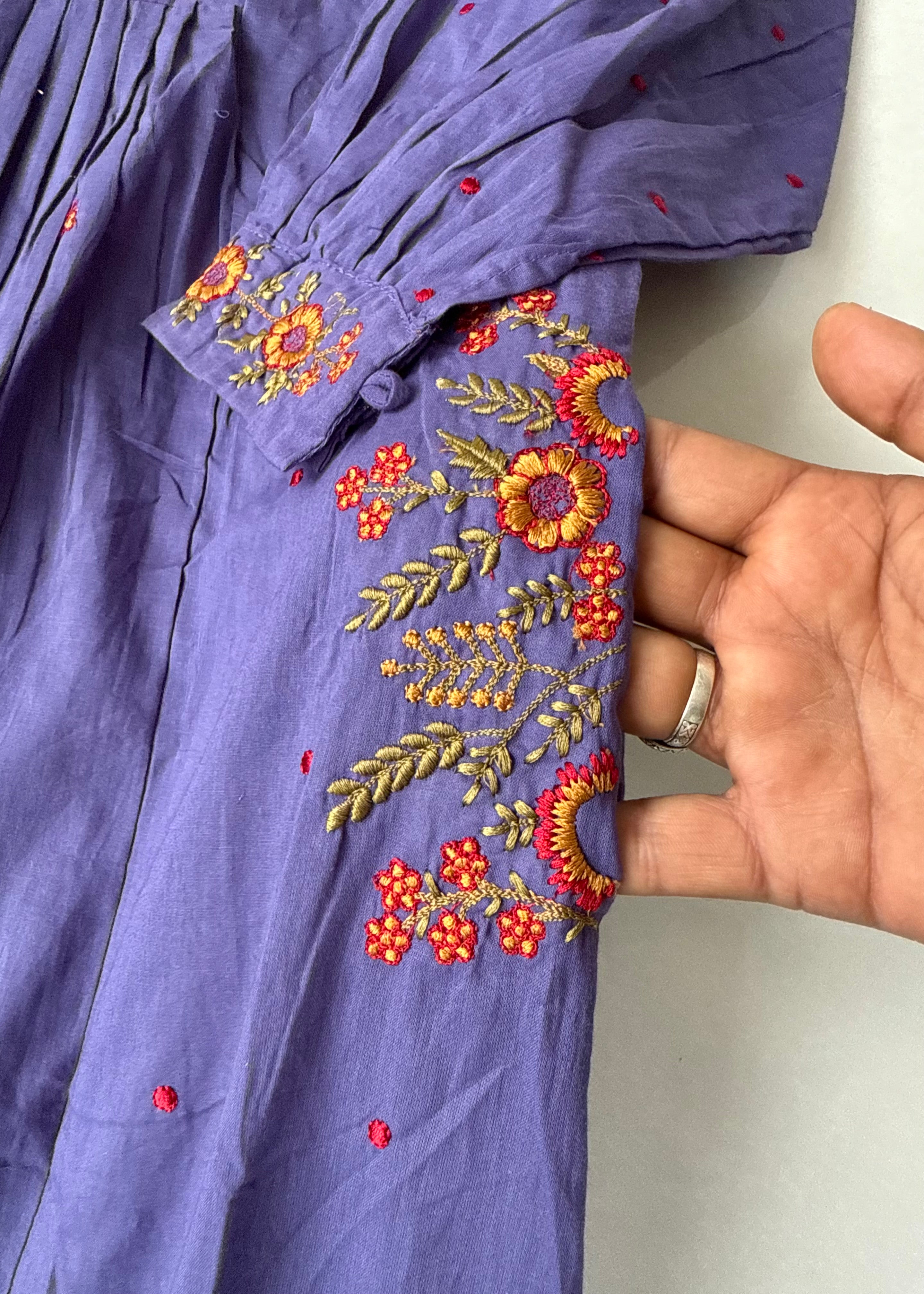 “Hera” Muted Purple Mulmul Anarkali suit set