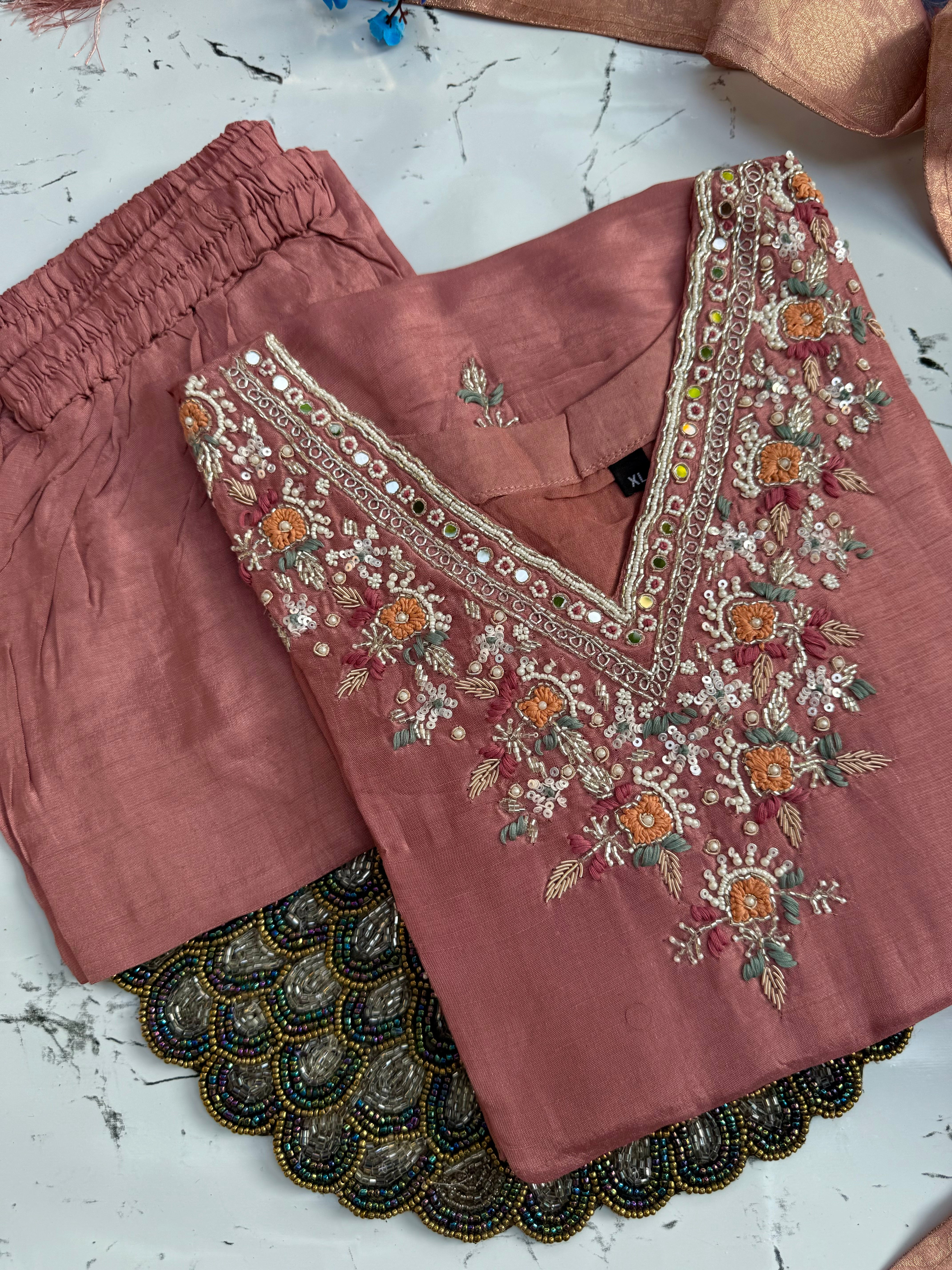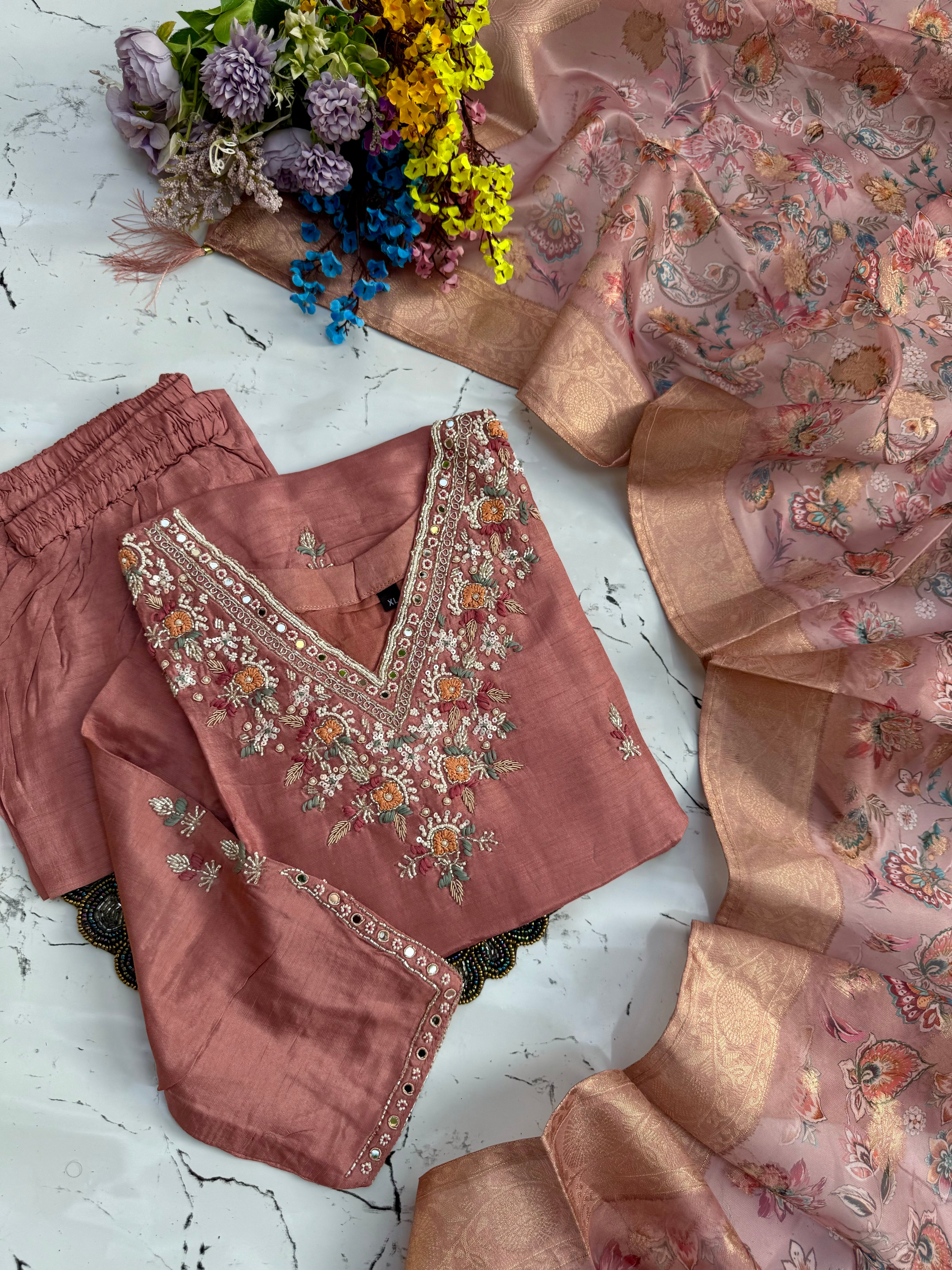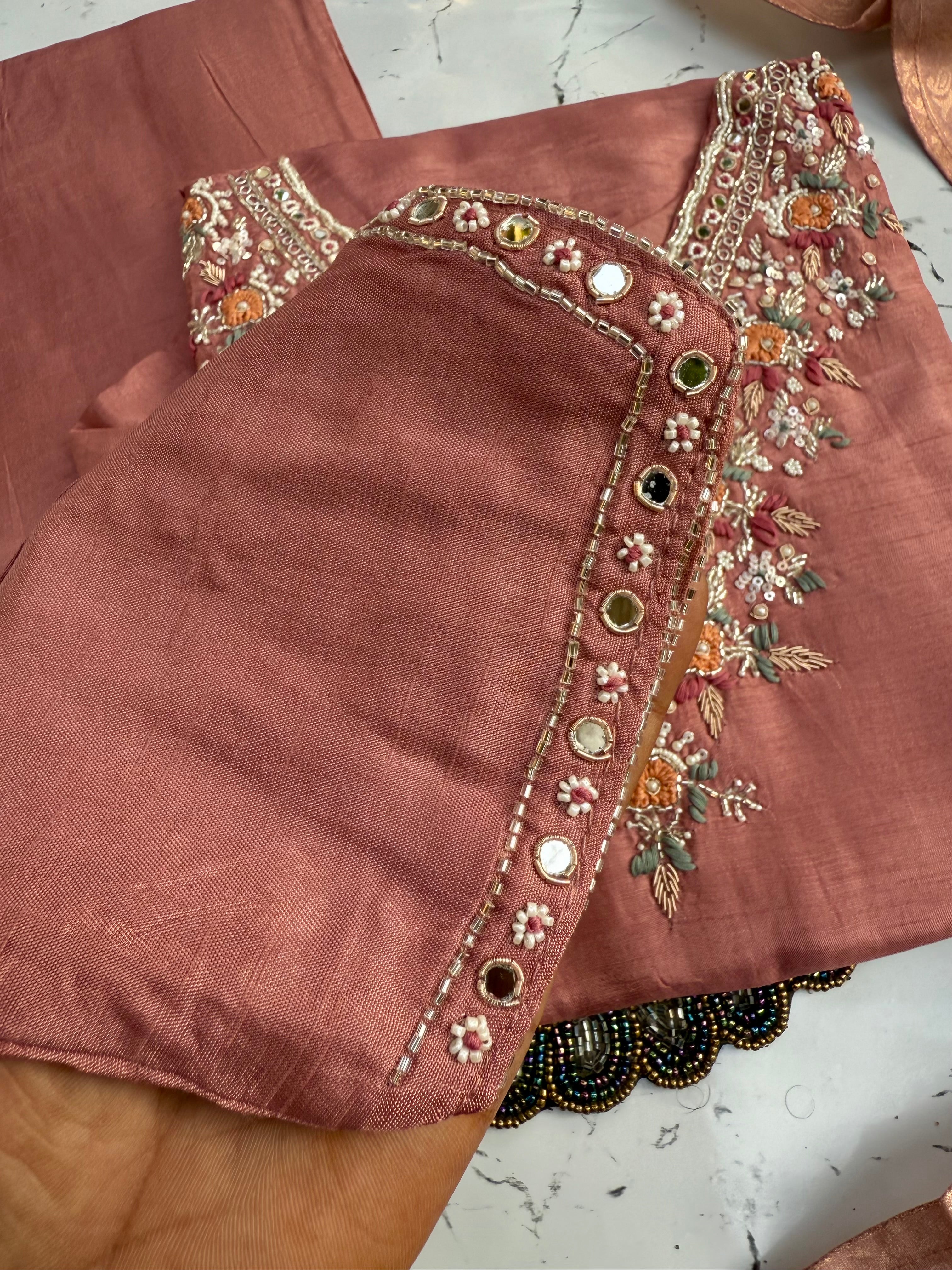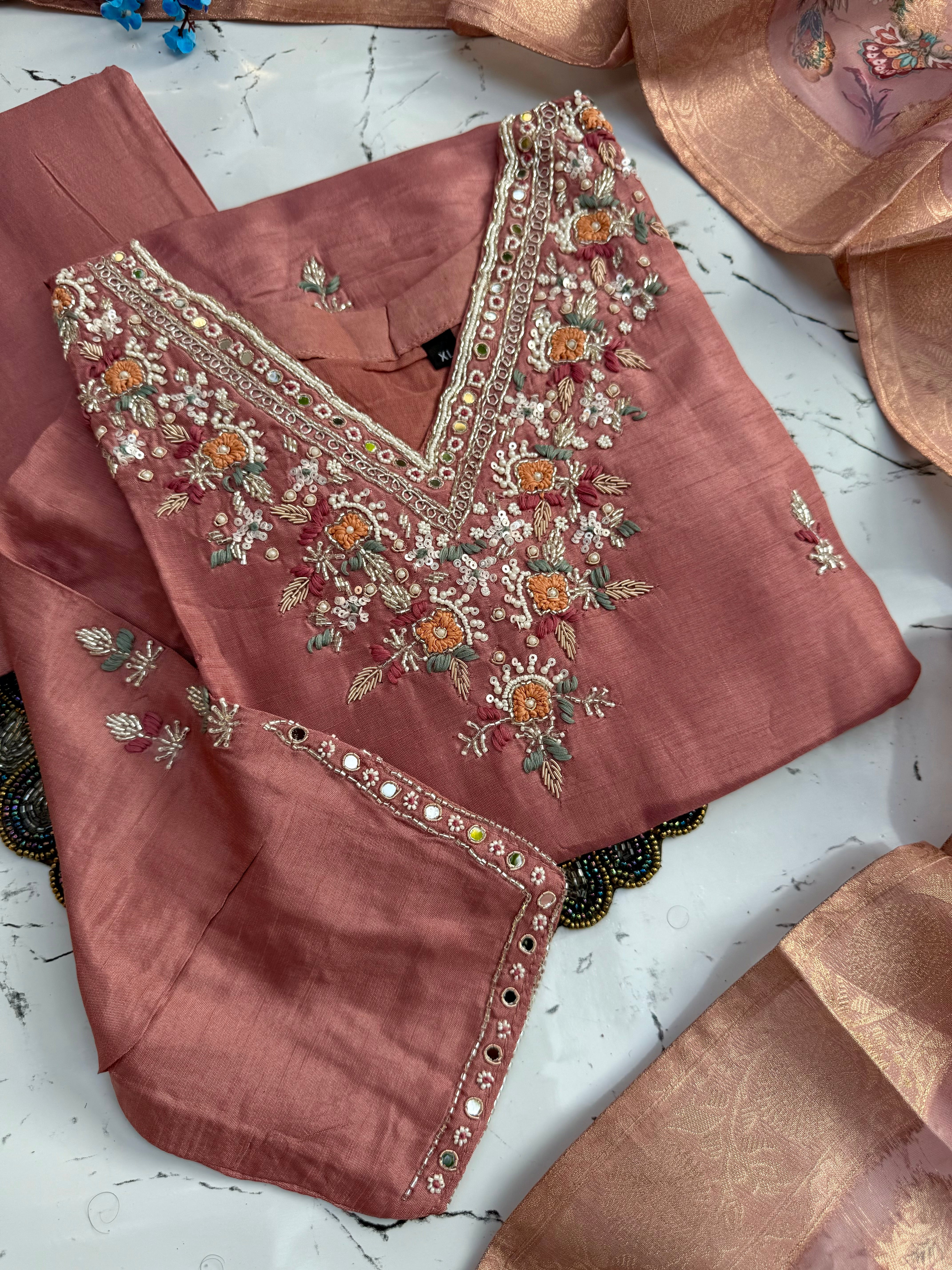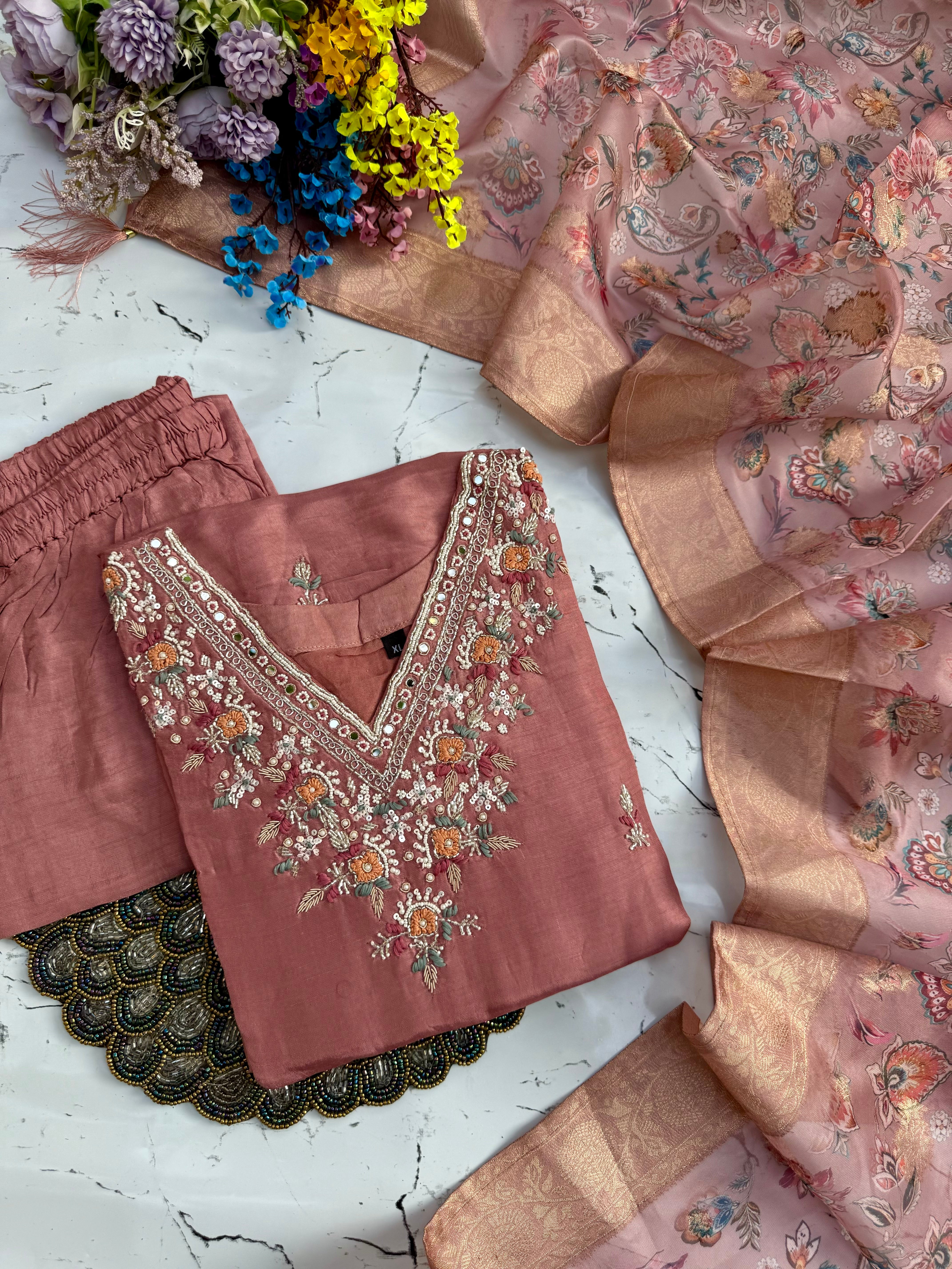 "HIJR" Party wear Handcrafted dola silk set