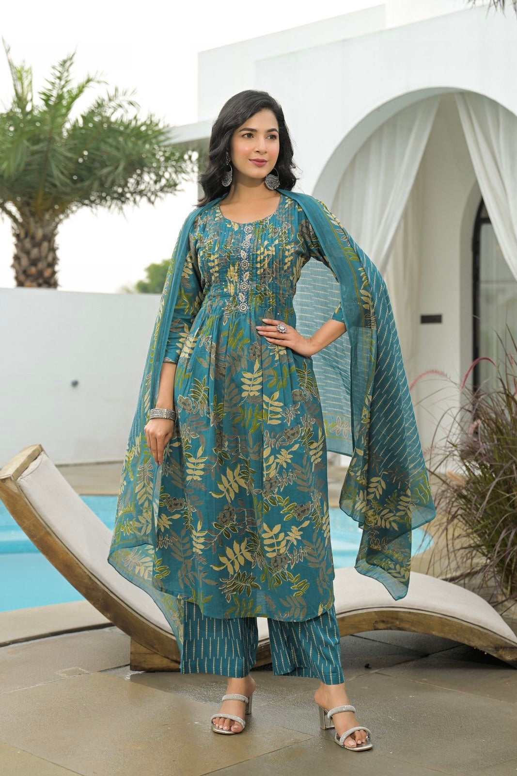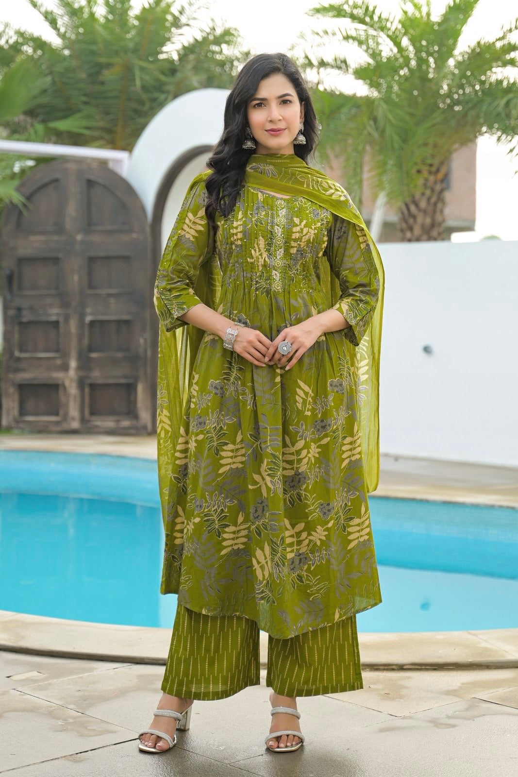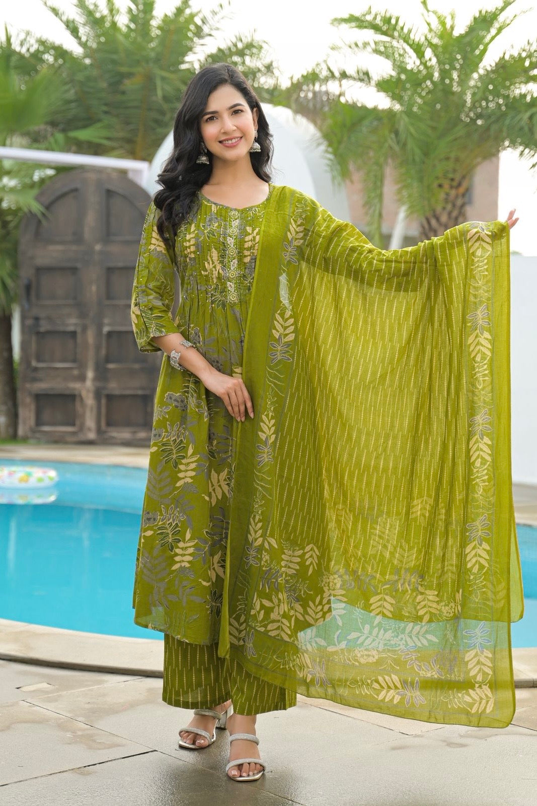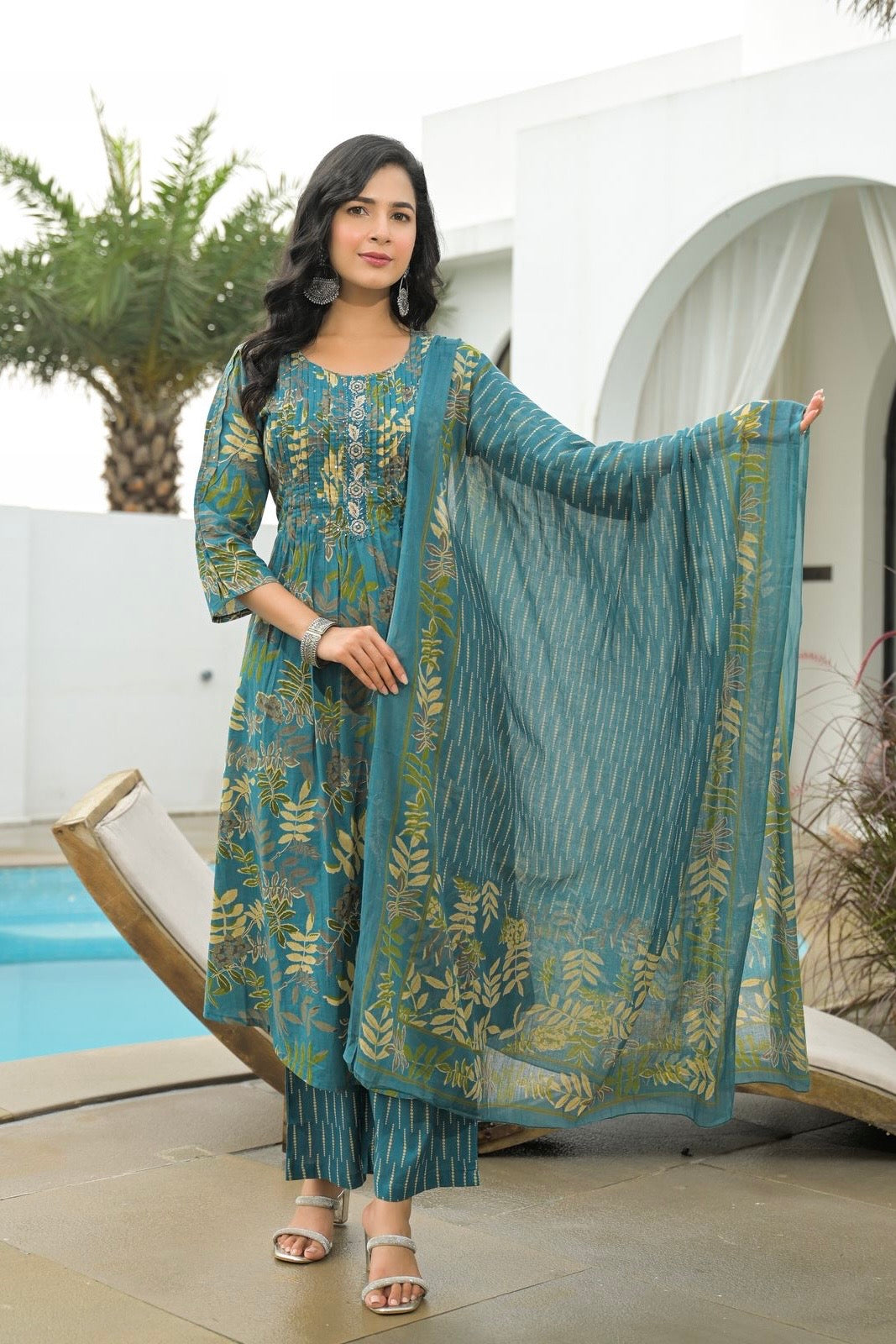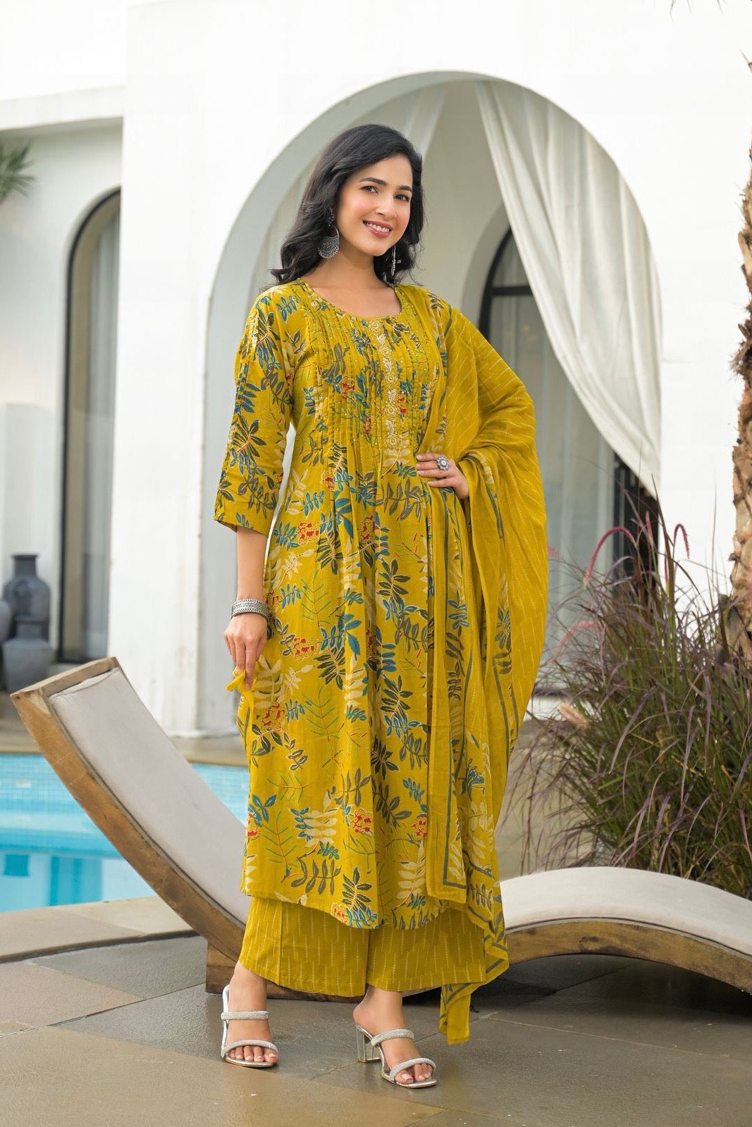 “Driti” Floral Printed Cotton Kurta pant with Dupatta set