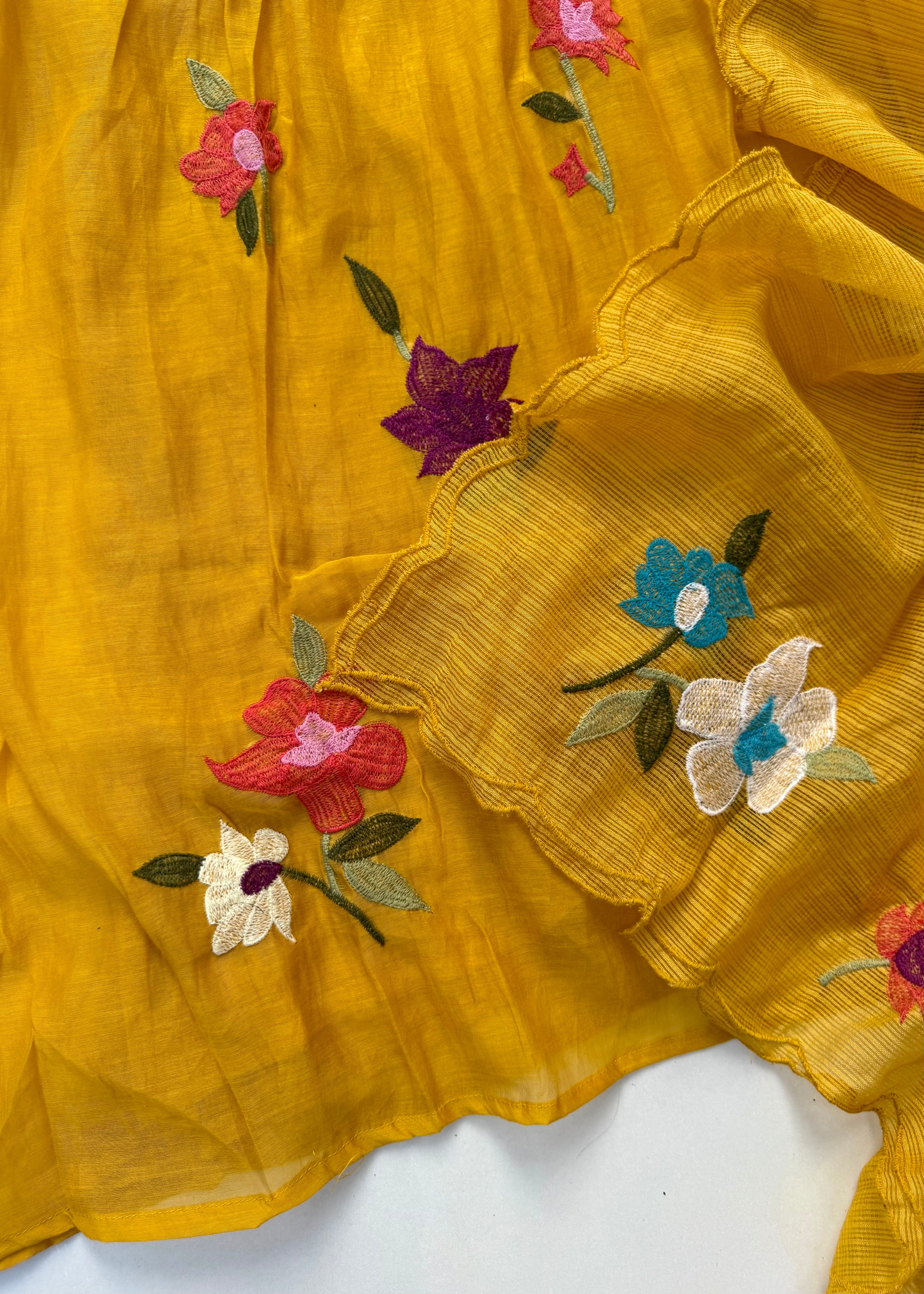 Premium mul Chanderi anarkali kurti with handwork on the yoke sleeves & Daman of the kurta with a handwork detailed mul Chanderi dupatta and a silk bottom