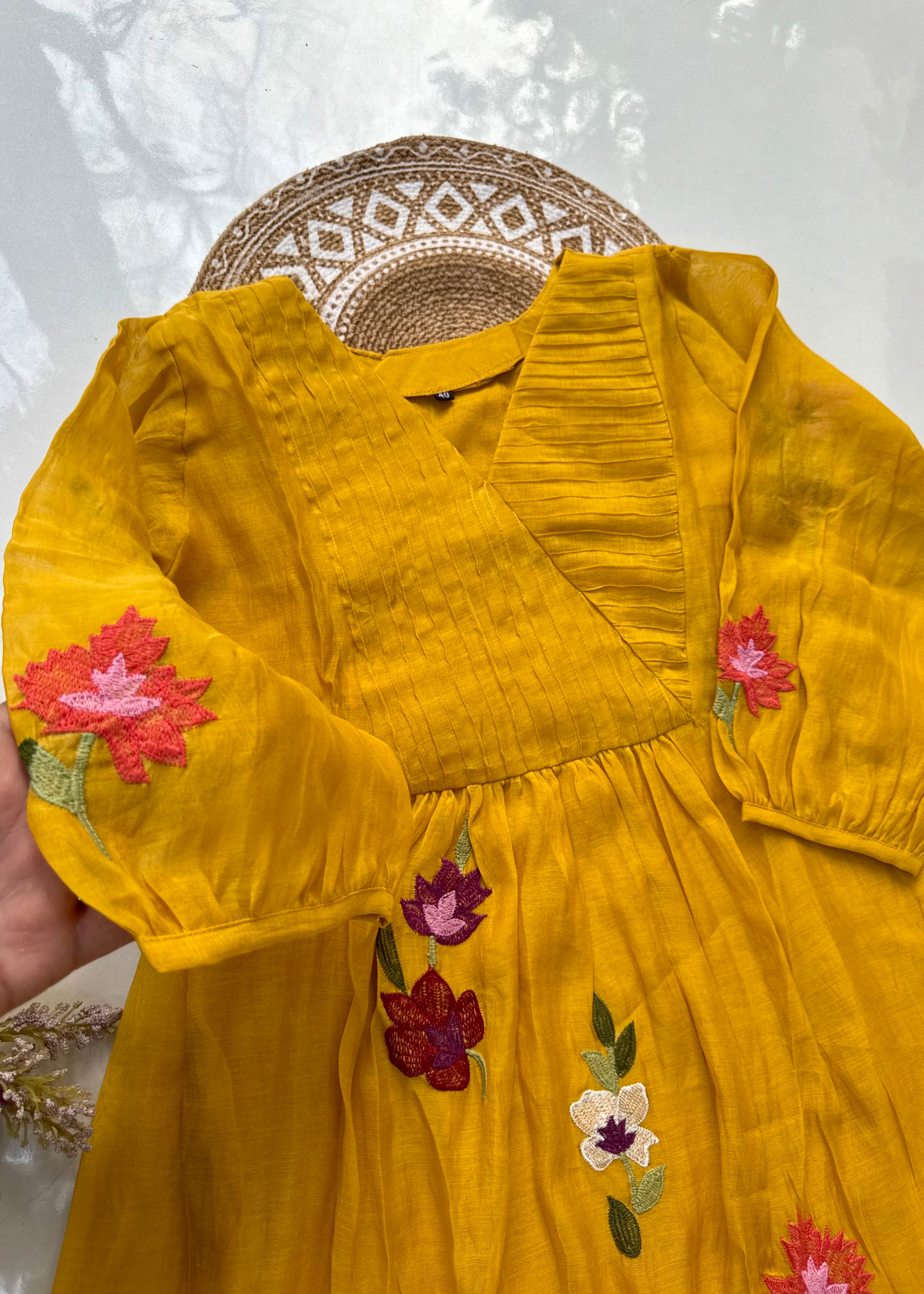 “IFRA” Premium Yellow Mul Chanderi party wear anarkali kurta set