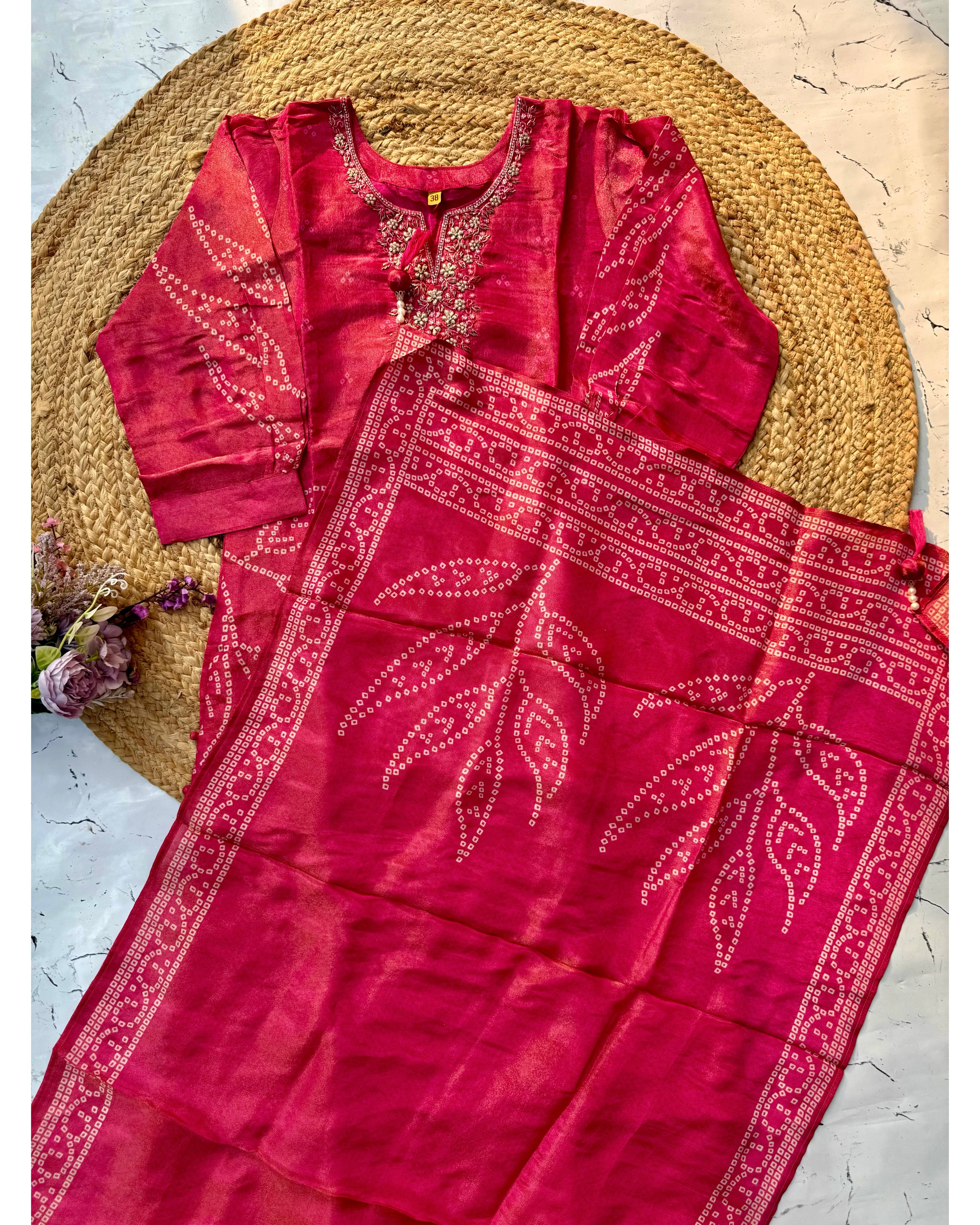 "IMROZ" Beautiful printed Tissue silk kurti bottom with dupatta set 🛍️